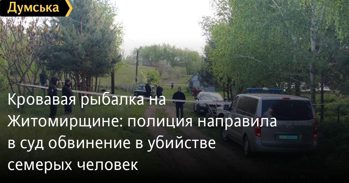 Кровавая рыбалка на Житомирщине: полиция направила в суд обвинение в убийстве семерых человекПолиция Житомирской области направила в суд обвинительный акт в отношении 58-летнего арендатора пруда, который в конце мая расстрелял семерых человек. Об этом сообщила пресс-служба Нацполиции Украины. В ходе досудебного расследования было проведено более ста экспертиз. По их результатам, все семеро погибших имеют тяжкие телесные повреждения, полученные в результате стрельбы из охотничьего ружья. Потерпевшими являются добровольцы, участники антитеррористической операции, житель Киева в возрасте от 29 до 50 лет. Трое из погибших служили в Нацгвардии. Расследование длилось пять месяцев и все это время подозреваемый провел под стражей. Проведенные экспертизы показали, что алкоголя в крови обвиняемого не было. Он был в состоянии осознавать свои действия и контролировать их в момент совершения преступления. Обвиняемому грозит наказание в виде лишения свободы на срок до 15 лет или пожизненное. Напомним, трагедия произошла 22 мая этого года, когда погибшие приехали на рыбалку. Они бывали в этом месте не один раз, но в тот вечер между гостями и арендатором пруда произошел конфликт, который закончился кровавой трагедией. Только одному из приехавших удалось выжить и сбежать. Именно он сообщил о случившемся полиции. Что стало причиной конфликта, который спровоцировал убийство семерых людей, до сих пор не ясно. СМЕРТЬ РОССИЙСКИМ ОККУПАНТАМ! Заметили ошибку? Выделяйте слова с ошибкой и нажимайте control-enter |