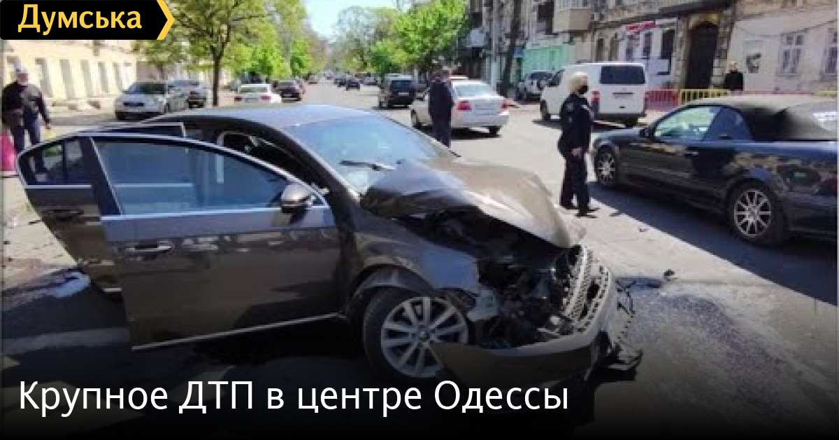 Крупное ДТП в центре Одессы. Столкнулись две иномарки. Одна из машин после удара влетела в дом, а у водителя травма ноги и руки.