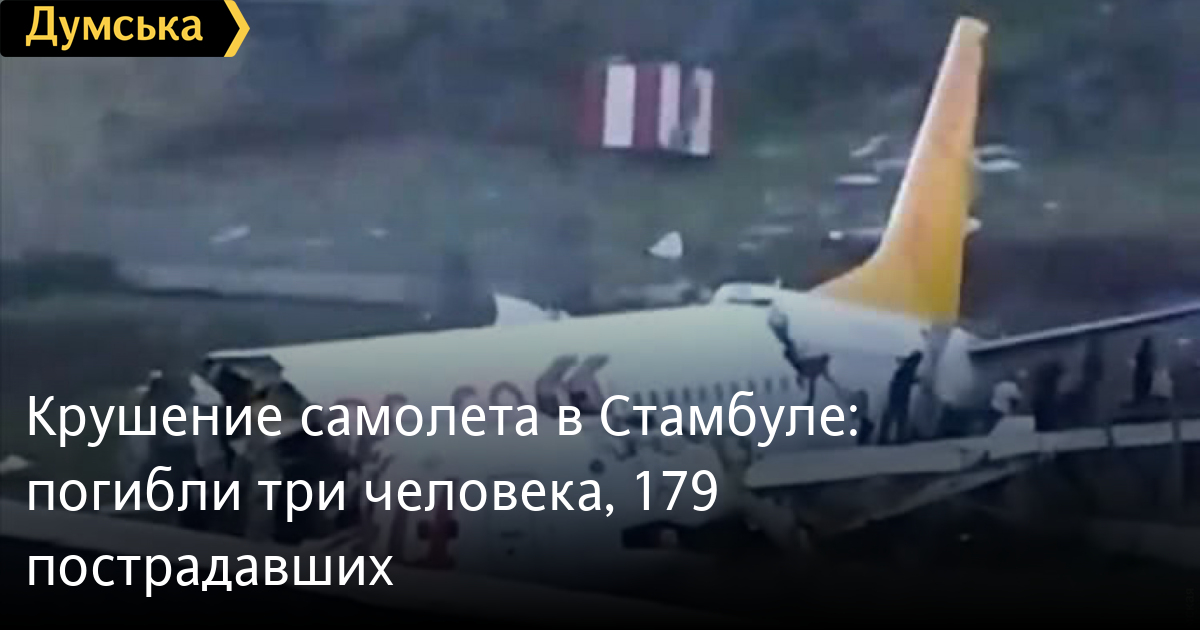 В результате жесткой посадки самолета авиакомпании Fly Pegasus (Boeing 737-800) в Стамбуле погибли три человека и 179 пострадали. Об этом заявил министр здравоохранения Турции Фареттин Коджа, сообщает Hurriyet. Изначально, отметим, сообщалось, что в катастрофе никто не погиб. Всего на борту было 183 человека. Напомним, в аэропорту Стамбула самолет при посадке выкатился за пределы взлетно-посадочной полосы, в результате чего самолет раскололся на несколько частей. По данным СМИ, самолет пытался приземлиться в условиях сильного ветра и дождя. Он распался на три части после того, как упал с высоты около 30 метров. СМЕРТЬ РОССИЙСКИМ ОККУПАНТАМ! Заметили ошибку? Выделяйте слова с ошибкой и нажимайте control-enter |