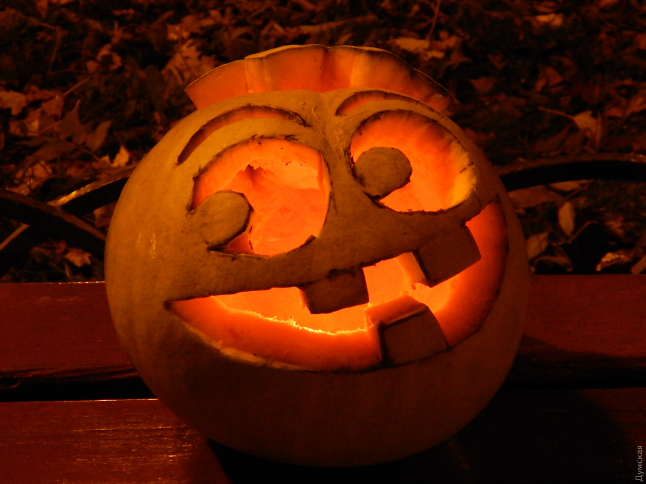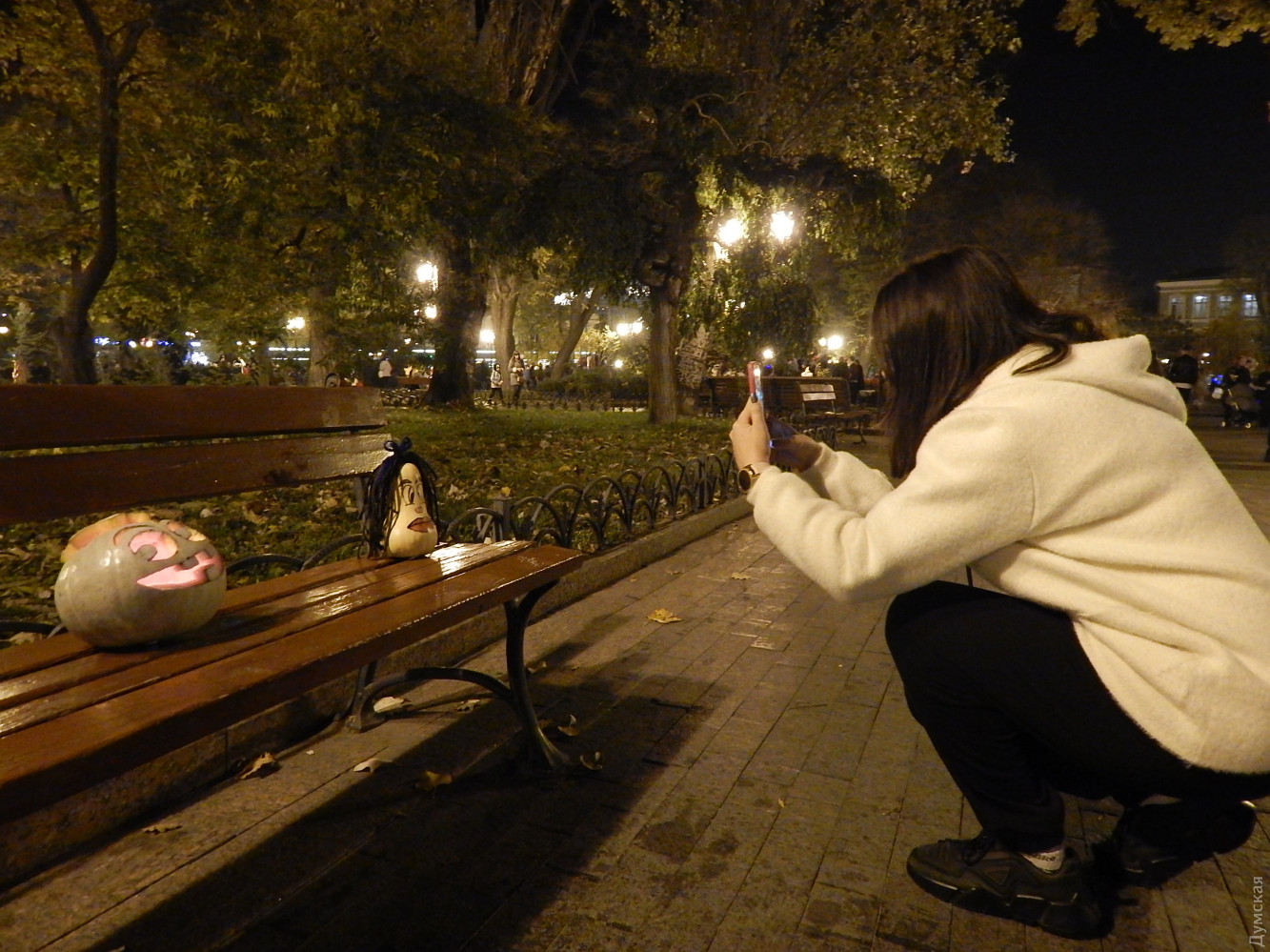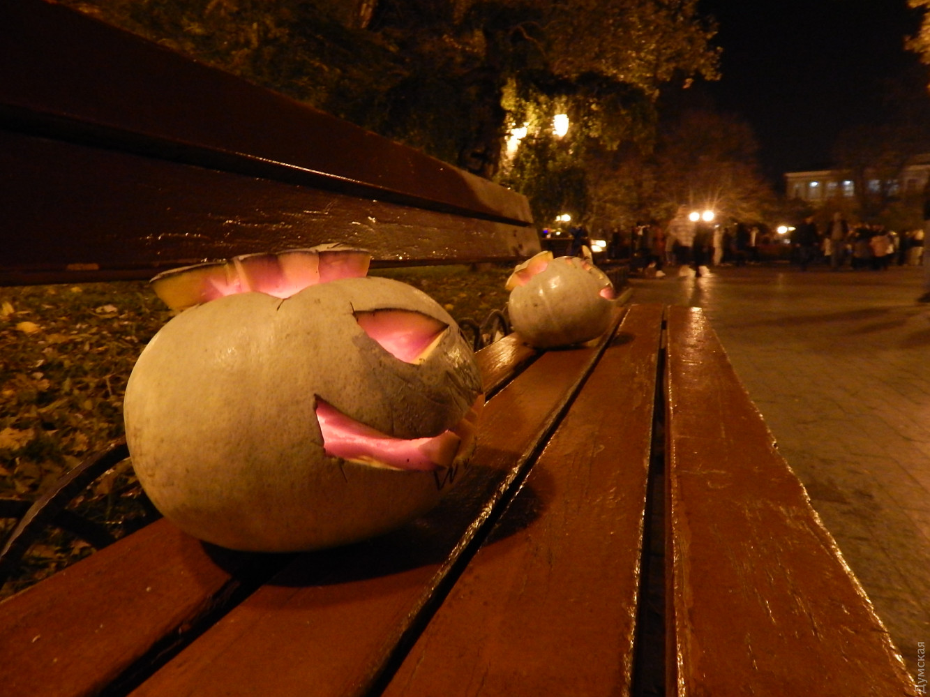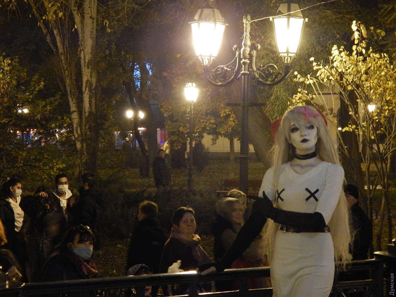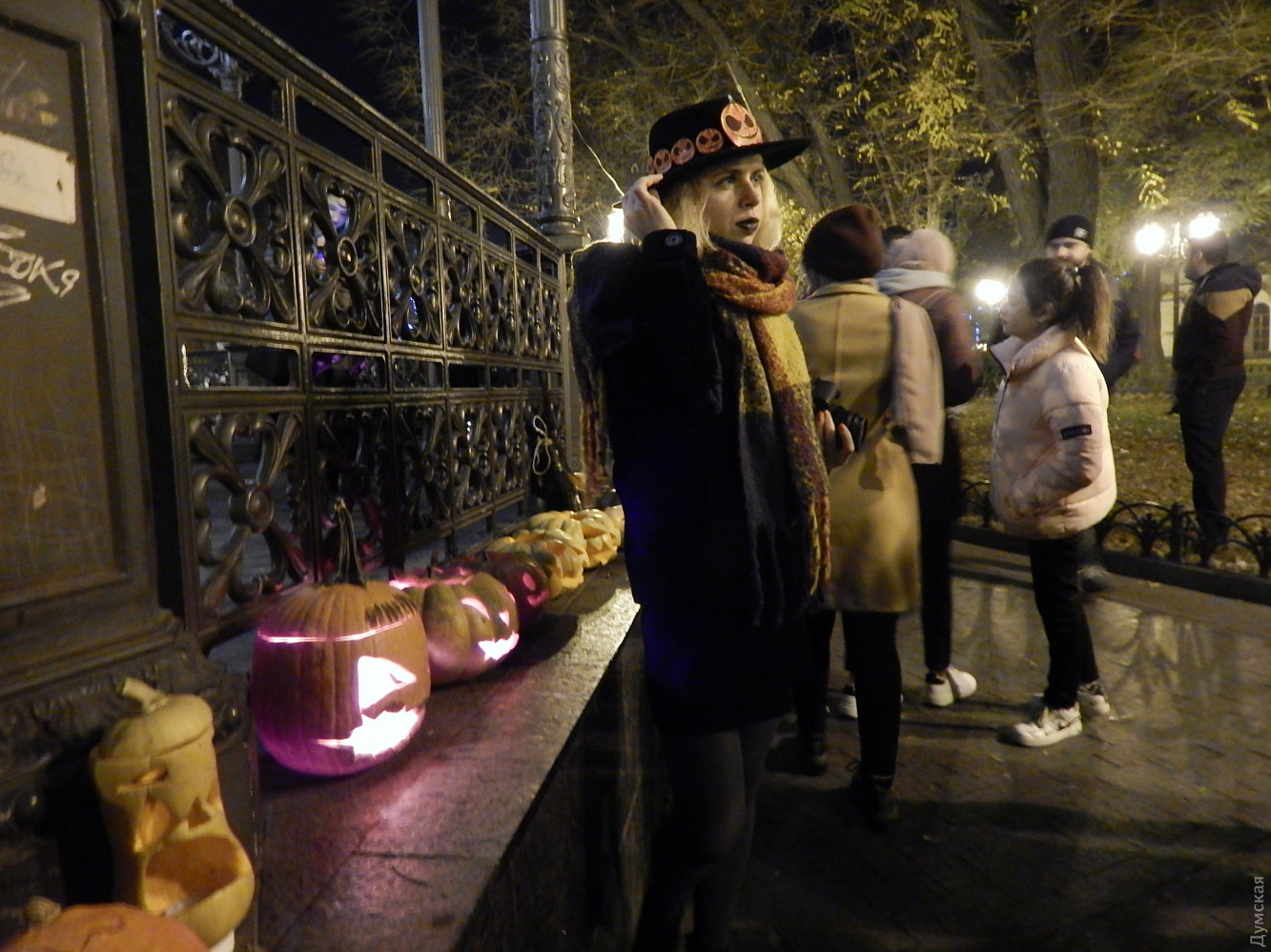 Ку-Клукс-Клан, девочка без головы и удивленные индусы: Ночь Тыкв, или Хэллоуин по-одесски (фоторепортаж, видео)Спецкор «Думской» Дмитрий Жогов отметил Хэллоуин в одесском Горсаду, где прошло главное действо праздника – Ночь Тыкв. Я люблю этот рыжий, сумеречный праздник, с запахом палой листвы и тления. О, эти загадочные огоньки в прорезях тыквенных глаз, сладкий ужас, то, чего нет у других празднеств! Я давно собирался сходить на Ночь Тыкв, да все никак не удавалось. А тут локдаун, «красная зона», все увеселительные мероприятия называют «Пиром во время чумы», а их организаторам грозят разные кары. Я и пошел. Но сперва я заглянул на страничку организаторов в Фейсбуке. Там меня сразу предупредили: «Вы можете принести тыкву в Горсад, а если у вас есть зеленый сертификат — можете остаться. Если нет - оставляйте тыкву и идите домой». Строго. Я связался с организатором. Дай, думаю, выясню, в который час подходить, чтобы все вакцинированные собрались. Но сперва немного о празднике. JACK-O'-LANTERN Символ Хэллоуина — зловеще оскаленная тыква со свечой внутри. Традиция вырезания фонаря из тыквы имеет путаную и многовековую историю. По одной из версий, купец Джек, а по другой — кузнец Джек, по третьей — просто выпивоха Джек… В общем, как-то раз он обманул самого дьявола, нарисовав крест на дереве, на которое нечистый взгромоздился за яблоками. Сатана позорно застрял на дереве. Лишь когда дьявол пообещал не претендовать на душу Джека, тот его отпустил. Но когда пьяница умер, то апостол Петр завернул его от ворот Рая. Сатана тоже не принял и лишь кинул Джеку уголек. Тот всунул его в тыкву и с тех пор в ожидании Страшного Суда вынужден бродить между Раем и Адом, освящая себе путь тыквой. В Одессе все началось в 2015 году, когда одесситка Эллен Платова вынесла в Горсад тыкву со свечой. -Я люблю Хэллоуин, — рассказывает она. — Я считаю, что это социально полезный праздник. Это единственный день в году, когда можно быть хоть ведьмой, хоть козлом! А тебе еще и конфетку за это подарят. А тыква наш национальный продукт! Ее классно с детьми вырезать. Ребенок сам не вырежет. Это физически тяжело и присутствуют острые предметы, посему задействованы и мама, и папа. Это семейный досуг, который нравится всем. В 2014 году я решила вырезать тыкву и украсить ею Горсад. У нас в центре редко мероприятия проводят, кроме Юморины. Я вырезала тыкву и написала в Фейсбуке: «Приходите, кто хочет». Нас было 16 человек всего. Был один арбуз и одна дыня. Остальные тыквы. Мы их поставили на одной скамейке, и пока мы там стояли, с нами фотографировались прохожие. Наверное, тысячу селфи сделали! На следующий год было больше ста человек, еще через год - тысяча. Вдруг это стало городским мероприятием, и это очень круто. СЛАДОСТЬ ИЛИ СЕРТИФИКАТ? Мне стало грустно. Одесситы семь лет соревновались в мастерстве резьбы по тыкве, весело пугали друг друга. Но тут бахнул ковид. Уже прошлый год был напряжным. Комментарии под заметками и репортажами о Ночи тыкв недвусмысленно говорили о том, что часть горожан не одобряет хэллоуинское веселье и называет его «ковидной вечеринкой». К сожалению, впервые за семь лет Эллен не сможет присутствовать на собственноручно устроенном празднике: - Это не мои правила. Я не могу получить от властей, ни от кого нормальный ответ, можно ли людям идти в парк, если они в масках, но без теста и