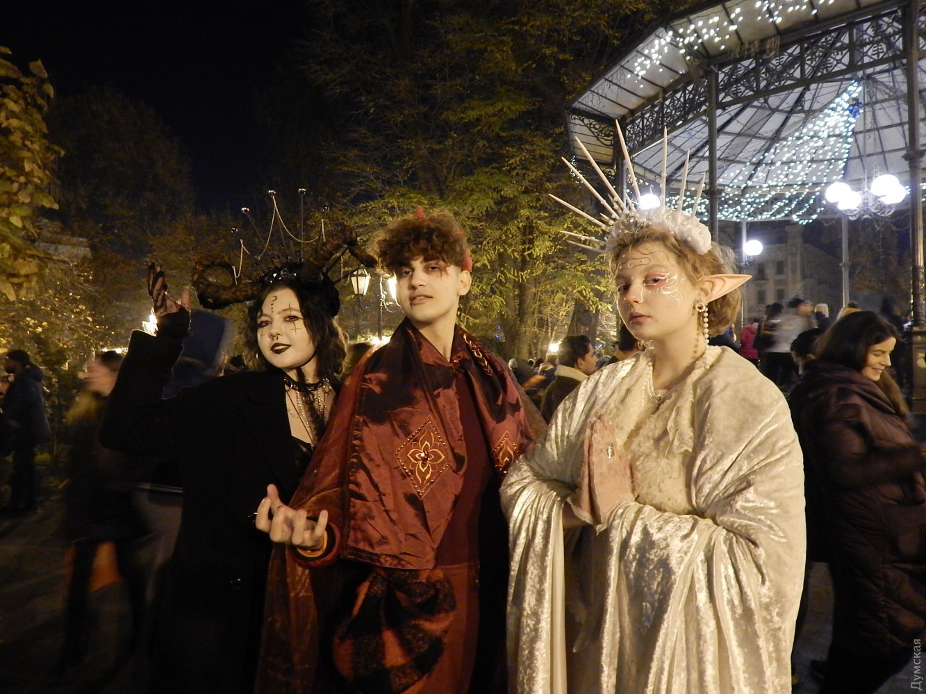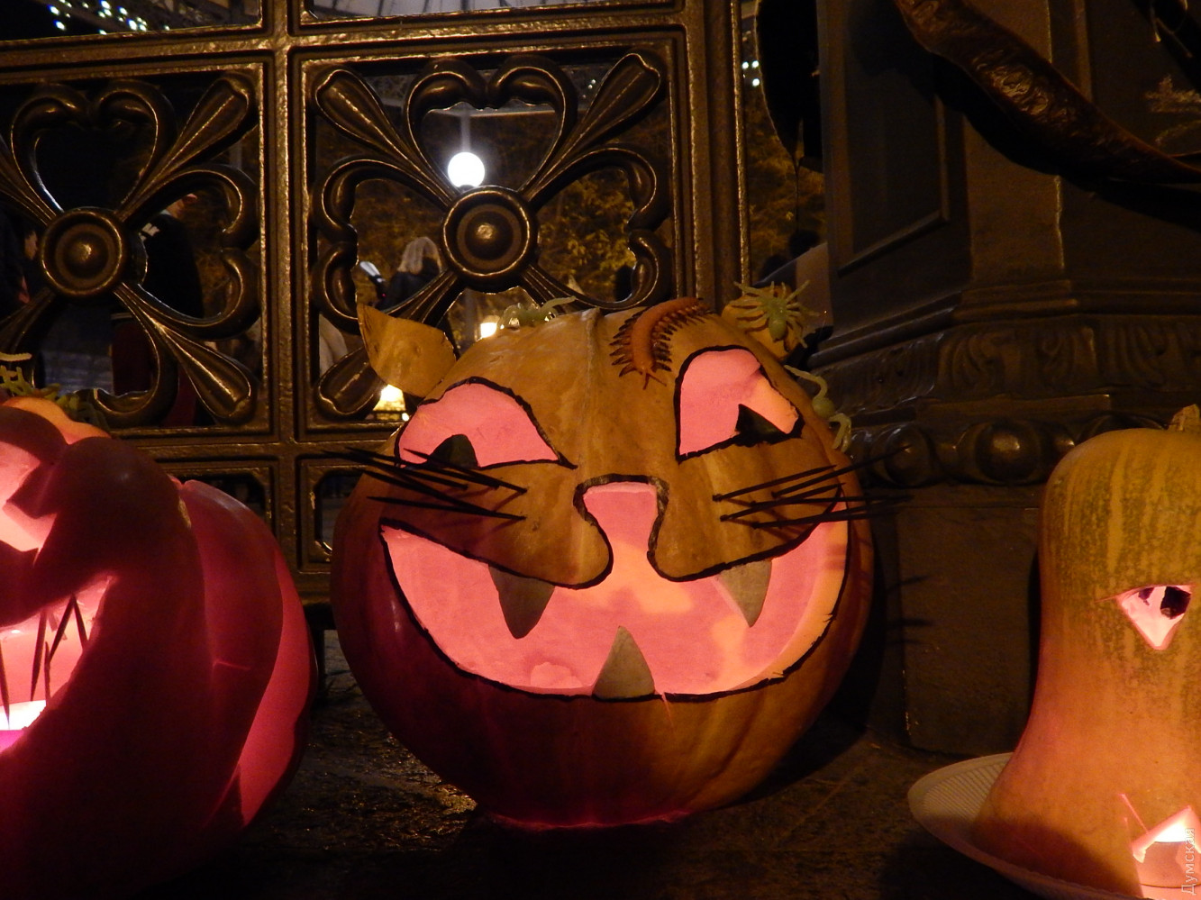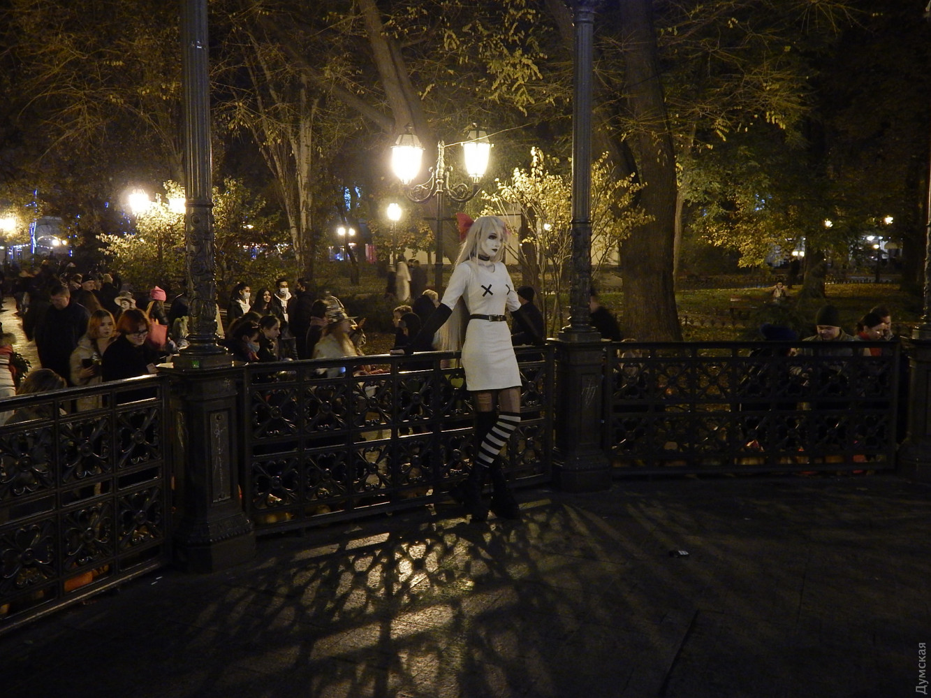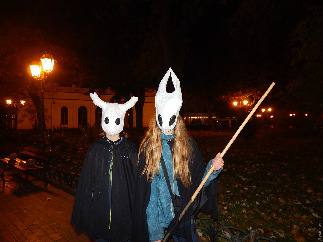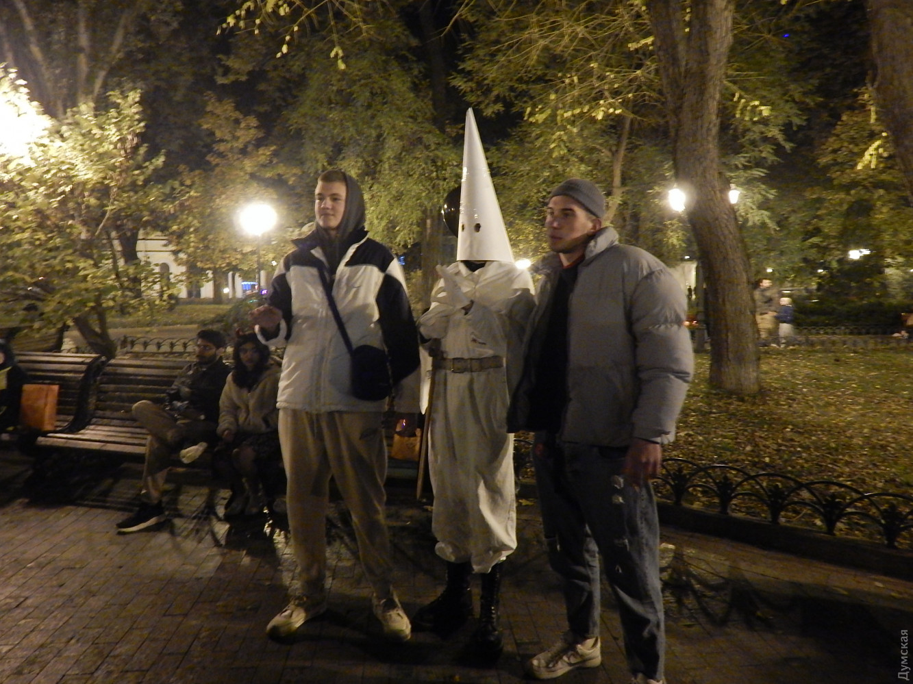 Ку-Клукс-Клан, девочка без головы и удивленные индусы: Ночь Тыкв, или Хэллоуин по-одесски (фоторепортаж, видео)Спецкор «Думской» Дмитрий Жогов отметил Хэллоуин в одесском Горсаду, где прошло главное действо праздника – Ночь Тыкв. Я люблю этот рыжий, сумеречный праздник, с запахом палой листвы и тления. О, эти загадочные огоньки в прорезях тыквенных глаз, сладкий ужас, то, чего нет у других празднеств! Я давно собирался сходить на Ночь Тыкв, да все никак не удавалось. А тут локдаун, «красная зона», все увеселительные мероприятия называют «Пиром во время чумы», а их организаторам грозят разные кары. Я и пошел. Но сперва я заглянул на страничку организаторов в Фейсбуке. Там меня сразу предупредили: «Вы можете принести тыкву в Горсад, а если у вас есть зеленый сертификат — можете остаться. Если нет - оставляйте тыкву и идите домой». Строго. Я связался с организатором. Дай, думаю, выясню, в который час подходить, чтобы все вакцинированные собрались. Но сперва немного о празднике. JACK-O'-LANTERN Символ Хэллоуина — зловеще оскаленная тыква со свечой внутри. Традиция вырезания фонаря из тыквы имеет путаную и многовековую историю. По одной из версий, купец Джек, а по другой — кузнец Джек, по третьей — просто выпивоха Джек… В общем, как-то раз он обманул самого дьявола, нарисовав крест на дереве, на которое нечистый взгромоздился за яблоками. Сатана позорно застрял на дереве. Лишь когда дьявол пообещал не претендовать на душу Джека, тот его отпустил. Но когда пьяница умер, то апостол Петр завернул его от ворот Рая. Сатана тоже не принял и лишь кинул Джеку уголек. Тот всунул его в тыкву и с тех пор в ожидании Страшного Суда вынужден бродить между Раем и Адом, освящая себе путь тыквой. В Одессе все началось в 2015 году, когда одесситка Эллен Платова вынесла в Горсад тыкву со свечой. -Я люблю Хэллоуин, — рассказывает она. — Я считаю, что это социально полезный праздник. Это единственный день в году, когда можно быть хоть ведьмой, хоть козлом! А тебе еще и конфетку за это подарят. А тыква наш национальный продукт! Ее классно с детьми вырезать. Ребенок сам не вырежет. Это физически тяжело и присутствуют острые предметы, посему задействованы и мама, и папа. Это семейный досуг, который нравится всем. В 2014 году я решила вырезать тыкву и украсить ею Горсад. У нас в центре редко мероприятия проводят, кроме Юморины. Я вырезала тыкву и написала в Фейсбуке: «Приходите, кто хочет». Нас было 16 человек всего. Был один арбуз и одна дыня. Остальные тыквы. Мы их поставили на одной скамейке, и пока мы там стояли, с нами фотографировались прохожие. Наверное, тысячу селфи сделали! На следующий год было больше ста человек, еще через год - тысяча. Вдруг это стало городским мероприятием, и это очень круто. СЛАДОСТЬ ИЛИ СЕРТИФИКАТ? Мне стало грустно. Одесситы семь лет соревновались в мастерстве резьбы по тыкве, весело пугали друг друга. Но тут бахнул ковид. Уже прошлый год был напряжным. Комментарии под заметками и репортажами о Ночи тыкв недвусмысленно говорили о том, что часть горожан не одобряет хэллоуинское веселье и называет его «ковидной вечеринкой». К сожалению, впервые за семь лет Эллен не сможет присутствовать на собственноручно устроенном празднике: - Это не мои правила. Я не могу получить от властей, ни от кого нормальный ответ, можно ли людям идти в парк, если они в масках, но без теста и