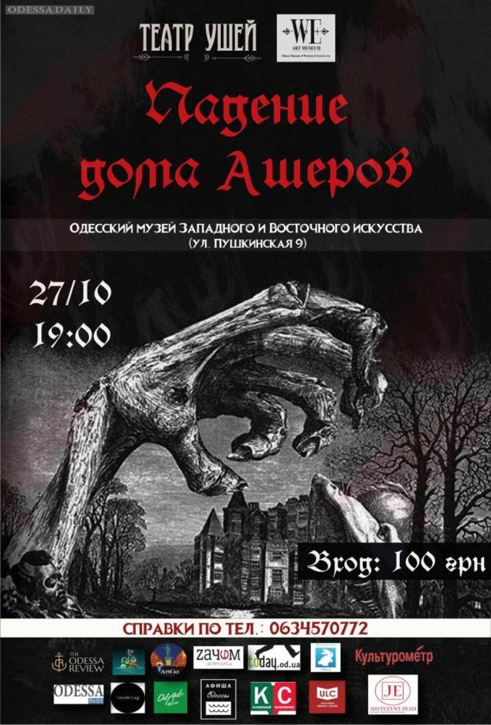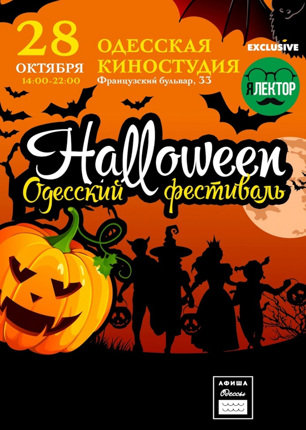 Куда пойти в Одессе: тотальный Хеллоуин, ночь в Кирхе и премьера восьмого «Яблока»По многочисленным просьбам читателей «Думская» открывает новую рубрику «Куда пойти в Одессе». В ней мы будем рассказывать о самых интересных и необычных событиях, которые просто нельзя пропустить. Грядущий уикенд будет богат на разного рода развлечения, ведь на носу самый страшный день года — Хеллоуин. Славу всенародного праздника в нашей стране День Всех Святых пока еще себе не снискал, но молодежи он пришелся по вкусу. Поскольку в этом году праздник выпадает на будний день, отмечать его начнут заранее. ФЕСТИВАЛЬ ХЕЛЛОУИНА Памятное селфи можно будет сделать в специальных фотозонах, оформленных в лучших традициях Хеллоуина. Организаторы говорят, что для создания по-настоящему ужасающей атмосферы праздника им потребовалось две фуры тематических декораций. Фестиваль стартует 28 октября в 14:00 и продлится до 20:00. Входной билет – 100-200 грн. Детям до 7 лет вход бесплатный. СДЕЛАЙ ТЫКВУ Вход свободный. СТРАШИЛКИ В КАТАКОМБАХ Это будет автобусно-пешеходная экскурсия с посещением Михайловской катакомбы. Продолжительность — три часа. Волосы дыбом, стынущая в жилах кровь и мурашки гарантируются. А потому особо впечатлительным, людям с заболеваниями сердечно-сосудистой системы и детям младше 12 лет посещение экскурсии строго запрещено. Стоимость — 250 гривен. Обязательна предварительная запись по телефону 0674837693.