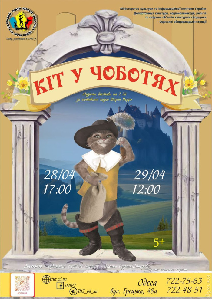 Куди піти в Одесі: «Чоловік для Памели», «Повітря волі» у цирку та фестиваль їжіПопереду вихідні, а значить час планувати своє дозвілля. Підказки про те, куди піти в Одесі, можна знайти в однойменній рубриці від «Думської». БЛИСКУЧИЙ ТАЄМНИЧИЙ СВІТ Виставка художника Геннадія Кіма «Блискучий таємничий світ» відкриється в Музеї Блещунова 27 квітня. В основі експозиції автора — 35 творів живопису в техніці пуантилізму. Йдеться про стилістичний напрям, у якому використовується ефект оптичного змішування кольору безпосередньо на сітківці ока глядача. Це дає можливість створювати неймовірно складні колірні ефекти нюансового живопису. Виставка буде відкрита до 14 травня. Музей працює щосуботи та щонеділі з 12:00 до 17:00. Старт о 13:00. Вартість квитків — free donation. КІТ У ЧОБОТЯХ Прем'єру вистави «Кіт у чоботях» за мотивами казки Шарля Перро покажуть в одеському ТЮГу 28 і 29 квітня. Так, розповідають творці вистави, після оновлення акторського складу і декорацій музична казка про вірного своєму господареві Кота заграла новими фарбами. Діти та дорослі зможуть поспостерігати за пригодами головного героя, Жака-Простака, Принцеси-Недопринцеси, Людожера та інших героїв. Старт о 12:00. Вартість квитків — 200 грн. «ЧОЛОВІК ДЛЯ ПАМЕЛИ» Прем'єру ексцентричної американської комедії «Чоловік для Памели» готують в Одеському академічному драматичному театрі 28 квітня. У центрі сюжету — Памела Кронкі, вона ж - найбезтурботніша бабуся у всій Америці. «Якщо вас пригощають чаєм з мурахами, якщо красень-футболіст шукає подругу життя, а капітан-втікач починає конкретно гнати хвилю, якщо покійний кіт раптом починає нявкати, а портрет прадіда закурює, якщо кімнатами блукає привид злодія свиней і парочка мисливців за багатою спадщиною — значить, ви в домі Памели», — привідкривають завісу організатори. Старт о 18:00. Вартість квитків — 200 грн. ФЕСТИВАЛЬ СУЧАСНИХ МИСТЕЦТВ Благодійний фестиваль сучасних мистецтв пройде в Музеї західного та східного мистецтва протягом тижня, починаючи з 29 квітня. Одна з його цілей — популяризація митців-початківців та їхніх творів. Так, у рамках заходу будуть представлені роботи молодих стріт-арт художників, фотохудожників та авторів інших напрямків. У перший день фестивалю заплановано два музичні перформанси. Крім того, у програмі — художня виставка, відео та світлові інсталяції. 50% від виручених коштів буде спрямовано на благодійність. Старт о 12:30. Вартість участі — 200 грн. ДИСКУСІЯ У МУЗЕЇ Панельна дискусія Юлії Ваганової та Олександри Ковальчук відбудеться в Одеському художньому музеї 29 квітня. Юлія Ваганова — в.о. директора Музею мистецтв імені Богдана та Варвари Ханенків, Олександра Ковальчук — заступниця директора з розвитку Одеського художнього музею. Вони спробують осмислити позицію української культури та музейної спільноти сьогодні, поговорять про те, що може і що має робити музей під час війни, чи може музейна робота конвертуватися у джавеліни, і коли музей припиняє існувати. Старт о 17:00. Вартість квитків — 100 грн. «ДЖАЗ — МУЗИКА ПЕРЕМОГИ!» Фестиваль «Джаз — музика Перемоги» триватиме в Одесі до 30 квітня включно. Зокрема, 29 квітня о 14:00 на концертному майданчику «Ракушка» у парку Шевченка відбудеться виступ у форматі опен-ейр духового оркестру НГУ. Цього ж дня у Пресвітеріанській євангелічній церкві на Пастера, 62 пройде 