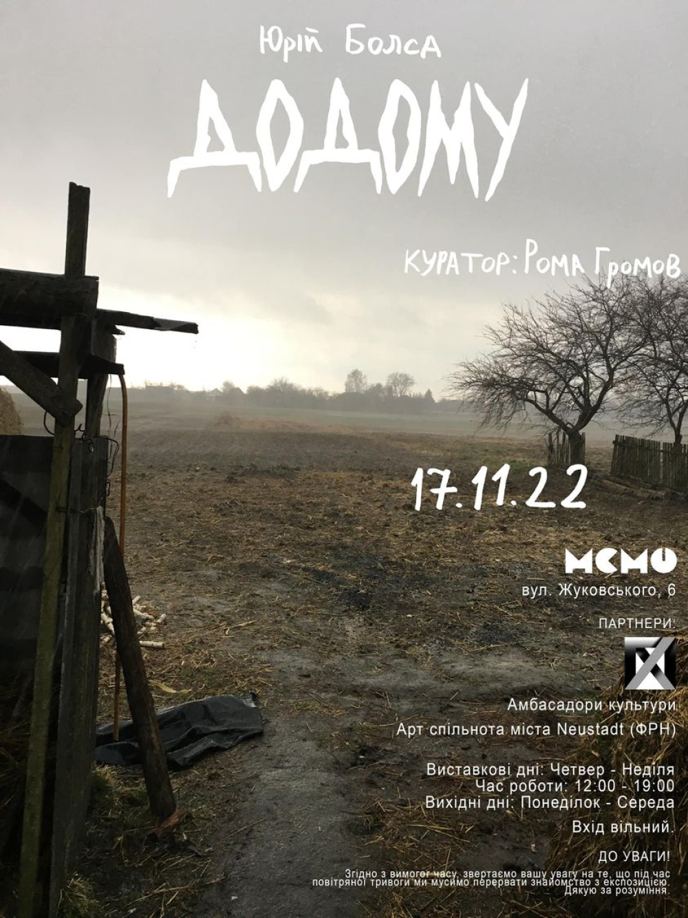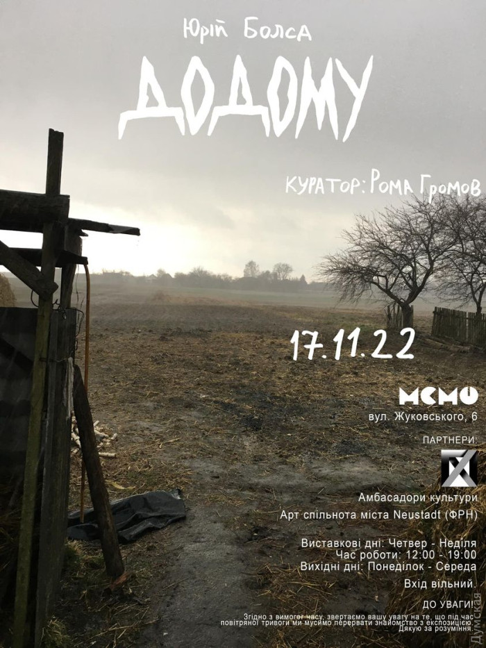 Музей сучасного мистецтва 17 листопада відкрив виставку молодого художника з Львівської області Юрія Болсі «Додому». Експозиція відкриється у галереї «ХудПромо».