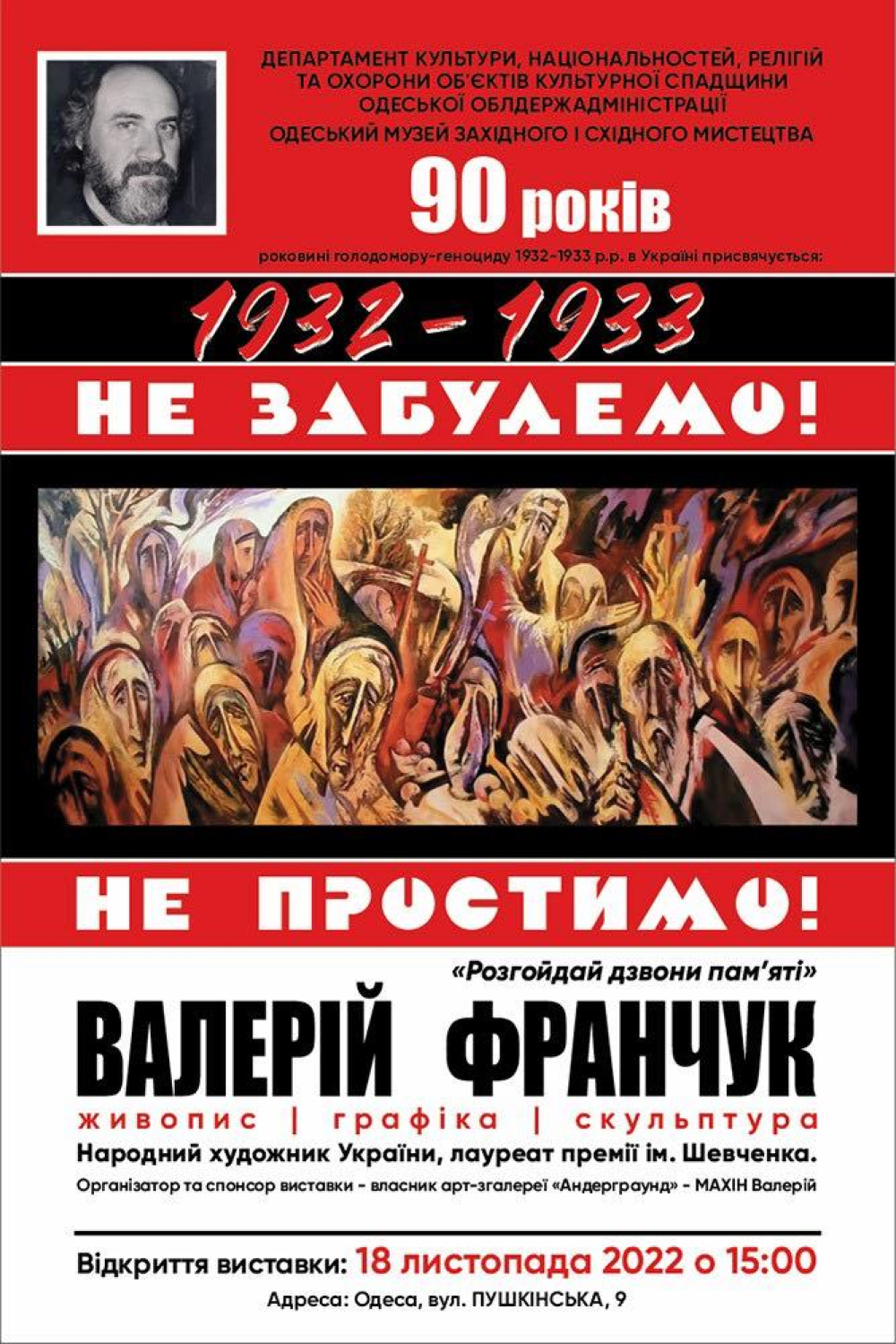 У Музеї західного та східного мистецтва 18 листопада відкрилася виставка Народного художника України Валерія Франчука «Дзвони пам'яті», приурочена до 90-х роковин голодомору.