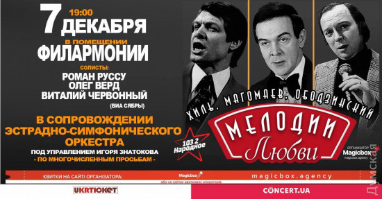 В связи с трагическими событиями в нашем городе четверговая рубрика «Думской» — «Куда пойти в Одессе» — выходит с опозданием. МАШИНА ВРЕМЕНИ Ценители русского рока могут сделать себе предновогодний подарок и пойти на концерт группы «Машина времени» во главе с Андреем Макаревичем. Увидеть и услышать живую легенду можно будет 7 декабря в театре Музкомедии. Поклонники группы ждали этого события как минимум три года – примерно столько времени «Машина времени» не давала концертов в Украине. И вот этот час настал! Музыканты исполнят песни из последнего альбома «ВЫ» и побалуют публику классикой, изданной за полвека существования группы. Стоимость билетов — 800-2900 грн. СЕЛИН РУДОЛЬФ Тем временем в Urban Music Hall наведается жемчужина европейского джазового мира Селин Рудольф. Вокалистка и композитор из Берлина споет для одесситов 7 декабря. В музыке Селин соединились легкость, природный бразильский ритм и классические джазовые традиции. Вокалистка обожает импровизацию и сложные мелодические приемы. Ее альбом «OBSESSION» выиграл престижную премию German Jazz Award ECHO JAZZ 2018 за лучший джазовый вокал. Стоимость билетов — 500-1000 грн. МЭТТ ЭЛЛИОТТ В соборе святого Павла готовятся принимать гостей – 7 декабря здесь выступит король британского нуарного неофолка Мэтт Элиот. В 16 лет Мэтт бросил школу, чтобы полностью посвятить себя музыке. Уже в этом возрасте он работал диджеем и увлекался драм-энд-бейсом. Сегодня на его счету уже 11 альбомов. К слову, в Украине музыкант выступит впервые. На концерте в Одессе он представит свои старые композиции, а также песни из будущего альбома «Farewell To All We Know». Стоимость билетов — 150-450 грн. МЕЛОДИИ ЛЮБВИ 7 декабря в Филармонии будет царить ностальгическая атмосфера. Здесь состоится концерт «Мелодии любви», программу которого составят песни Ободзинского, Магомаева и Хиля. Лирические мелодии прозвучат в исполнении эстрадно-симфонического оркестра под управлением Игоря Знатокова и солистов Романа Руссу, Виталия Червонного и Олега Верда. Гости вечера услышат такие бессмертные хиты «Эти глаза напротив», «Королева Красоты», «Мелодия», «Как провожают пароходы», «Белые Крылья» и другие популярные песни 60-80-х годов. Стоимость билетов — 170-520 грн. ПОРАБОЩЕНИЕ ЛЮБОВЬЮ 7 декабря в Украинском театре покажут спектакль о манипуляции под говорящим названием «Порабощение любовью». В основе постановки — роман-бестселлер «Жить Жизнь» Анны Богинской. В своем произведении автор отразила идею свободы от манипуляций и представила новый взгляд на женские романы. Богинская уверена, что к манипуляциям в свою сторону нужно относиться как к ограблению, ведь их единственная цель – бесплатно получить ресурс жертвы. В театральном варианте зрителей ожидает не только захватывающий сюжет, но и полезные знания. Стоимость билетов — 80-450 грн. ВОЗВРАЩЕНИЕ В ЭДЕМ Знаменитый одесский скульптор Михаил Рева открывает авторскую выставку «Возвращение в Эдем» в Hotel De Paris Odessa – Mgallery. В экспозиции будут представлены работы, в которых автор обыгрывает и человеческие образы, и природные мотивы и элементы античности. «Работа скульптора — древнейшая профессия. Первую скульптуру создал Господь. С тех пор образы меняются, но какие-то артефакты остаются, их просто видоизменяют», — рассказывает Михаил Рева. НОВОГОДНИЙ МАМАФЕСТ В грядущий уикенд, 7 и 8 декабря, можно б