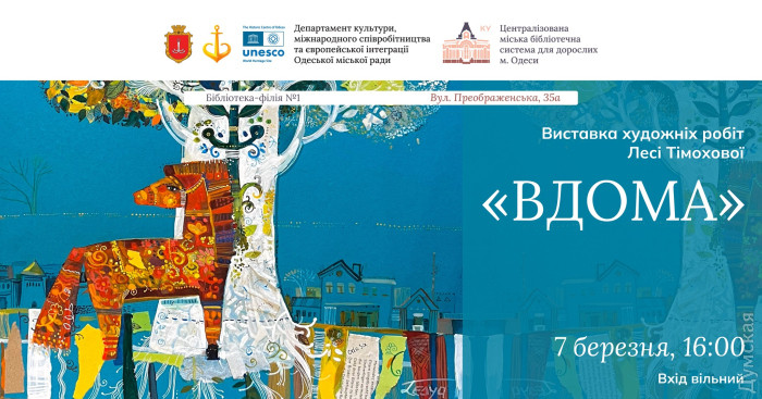 Відкриття виставки Лесі Тімохової «Вдома» відбудеться 7 березня в бібліотеці імені Едуарда Багрицького (Преображенська, 35а).
