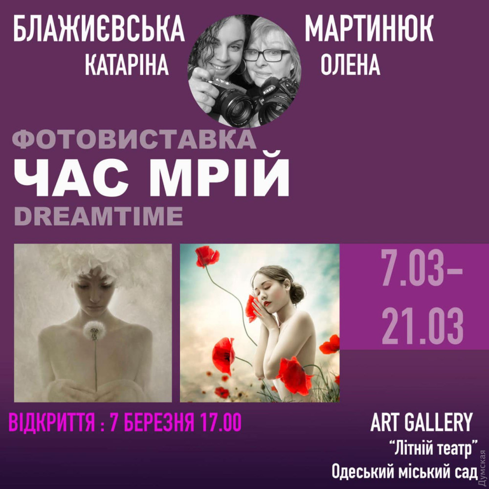 Фотовиставку Катаріни Блажиєвської та Олени Мартинюк Dreamtime відкриють 7 березня в галереї ArtOdessa Літнього театру Міського саду.