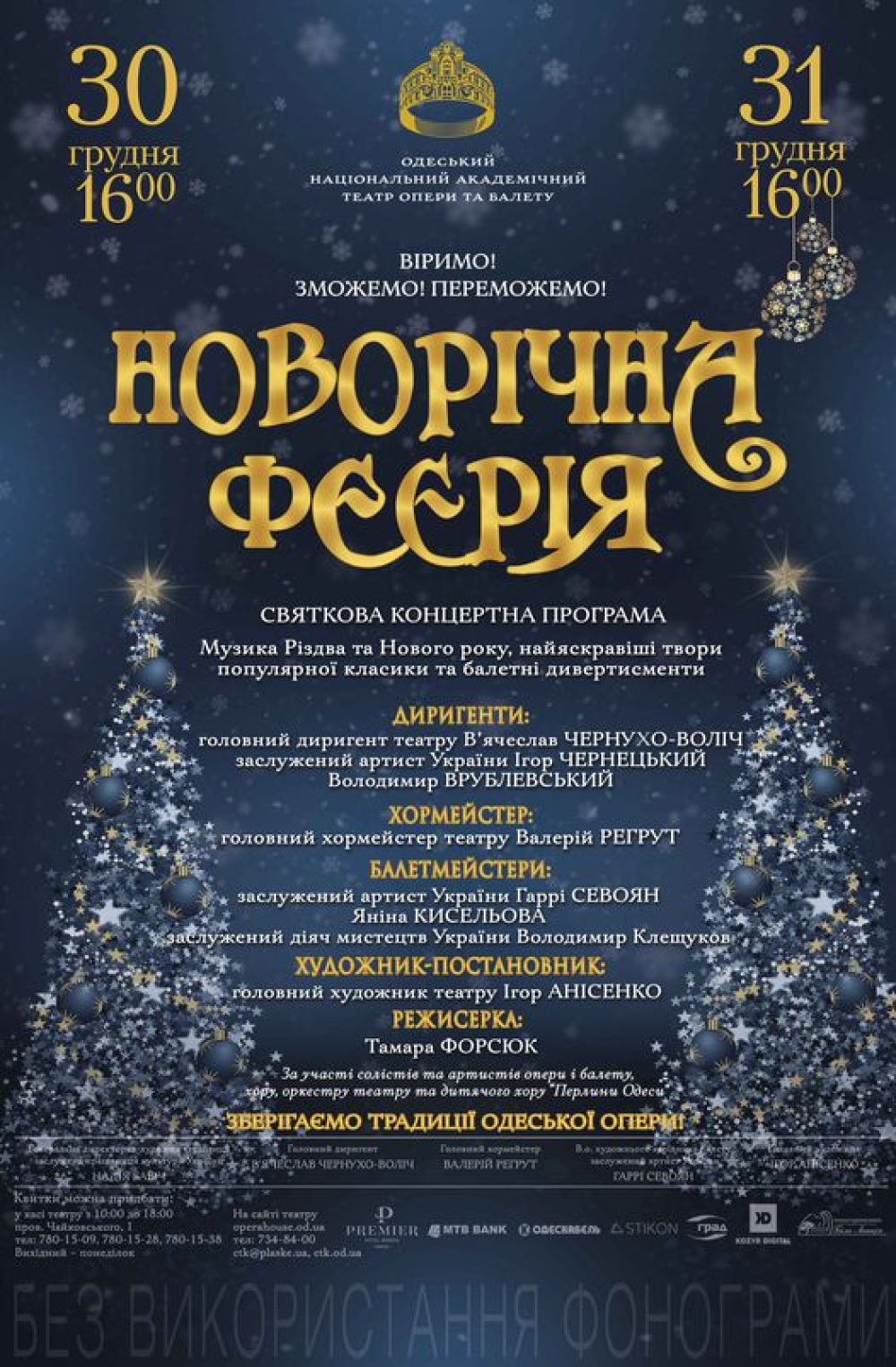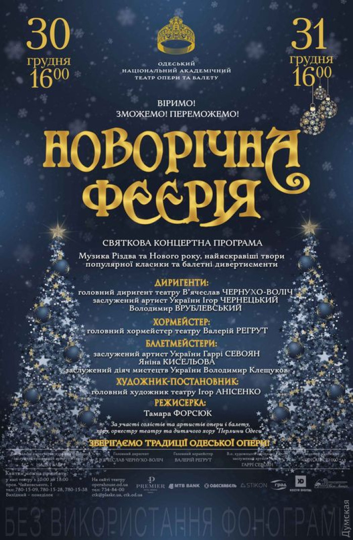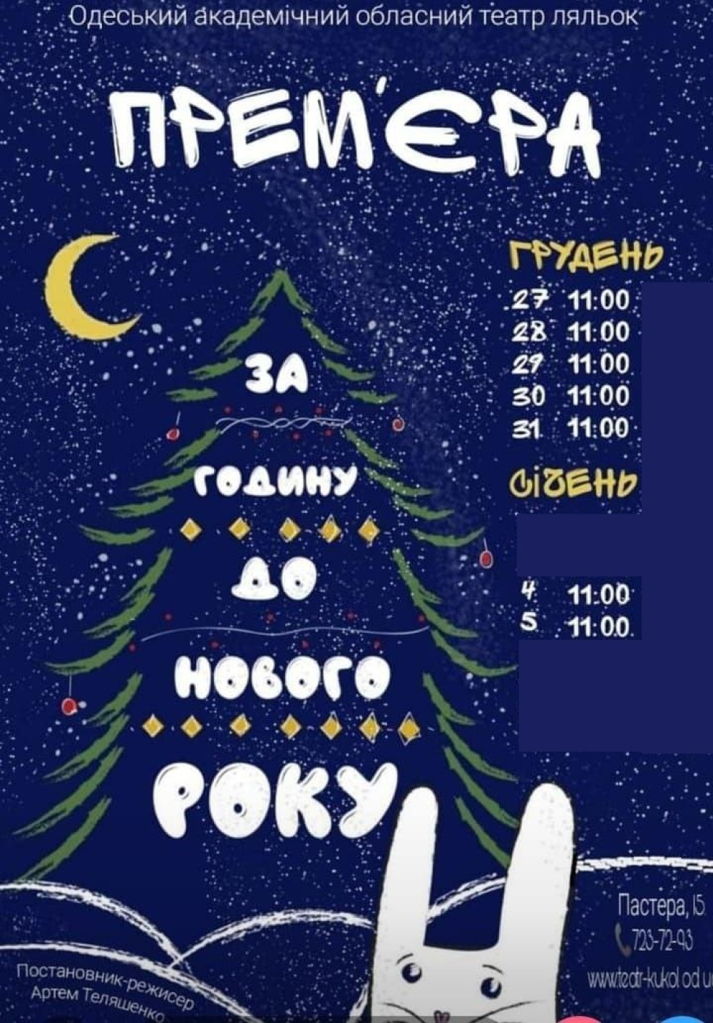 Куди піти в Одесі: «Новорічна феєрія» в Оперному, святкова прем'єра в Ляльковому і Пеппі в УкраїнськомуЗалишаються лічені дні до Нового року і до моменту, коли ціла країна загадає одне бажання на всіх. А щоб воно напевно збулося, радимо не впадати в смуток, вірити в наших захисників, і звісно, читати «Думську» та рубрику «Куди піти в Одесі». «ЛІТНІЙ. СНІГ» У галереї Arodessa відкрилася виставка одеських художників «Літній. Сніг». В експозиції представлені мальовничі та графічні роботи авторів, скульптури та керамічні вироби головною темою яких є передчуття зими і снігу. «Цього року відчуття свята не зовсім звичайне але все ж таки, ми всі чекаємо Нового року, дива, нашої Перемоги!» — розповідають куратори. Галерея відкрита щодня, крім понеділка, з 13:00 до 17:00. «ЗА ГОДИНУ ДО НОВОГО РОКУ» Прем'єрні покази новорічного шоу для всієї родини «За годину до Нового року» відбудуться в Ляльковому театрі 29-31 грудня. У центрі дитячої казки опинився символ прийдешнього року — веселий Кролик, який потрапив у казкову країну. Йому потрібно допомогти Дідам Морозам подарувати незабутнє свято людям і лісовим звірятами. Для сімей внутрішньо переміщених осіб, дітей з особливостями розвитку та осіб з обмеженими фізичними можливостями вхід вільний. Старт об 11:00. Вартість квитків — 150 грн. «ЗИМОВА КАЗКА» Нестачу святкового настрою можна буде заповнити в ТЮГу — 30 і 31 грудня тут покажуть новорічну виставу «Зимова казка». Мова у виставі піде про Санта-Клауса і про те, хто ж приносить подарунок йому самому. Для того щоб Санта отримав свій подарунок до Різдва, Малюк-Ельф, бабуся Санти, Ельк і Мільке почали шукати старовинний рецепт чарівного яблучно-ванільного пирога. У пошуках загубленого рецепта вони зустрінуться з різними казковими героями, які заблукали в чарівному лісі. Старт о 17:00. Вартість квитків — 150-180 грн. «НОВОРІЧНА ФЕЄРІЯ» Оперний театр 30 і 31 грудня запрошує на казкову, просочену духом прийдешнього свята, виставу «Новорічна феєрія». До програми зустрічі увійдуть найяскравіші вокальні та балетні номери — фаворити глядацьких симпатій і прем'єрні покази. Для цього на сцену вийдуть солісти опери, хор та оркестр театру, солісти та артисти балету. «Війна не скасовує свят, бо мистецтво також є опором! Улюблена, відома класика зазвучить у святковий вечір по-новому. У кожному творі ми відчуємо ноти нашої Перемоги!» — запевняють організатори. Старт о 16:00. Вартість квитків — 100-550 грн. «ЧИПОЛЛІНО» Артисти Одеської музкомедії 30 грудня представлять глядачам актуальну в усі часи казку в жанрі мюзиклу «Чиполліно» за мотивами твору Джанні Родарі. Це історія про маленького, але відважного хлопчика-цибулину, який умів по-справжньому дружити. Саме він зуміє стати лідером і повести за собою інших, щоб відновити справедливість у їхньому місті. На сцені глядачі побачать відомих героїв, багато з яких постануть у нових, осучаснених образах. Серед них - професор Груша, прокурор Помідор, майстер Виноградинка та багато інших. Організатори підкреслюють, що ця вистава є дуже корисною для спільного перегляду та подальшого обговорення в сімейному колі. Поговоріть із дітьми про важливе! Старт об 11:00. Вартість квитків — 80-200 грн. ГЕНЕРАЛЬНА РЕПЕТИЦІЯ НОВОГО РОКУ Концерт під інтригуючою назвою «Генеральна репетиція Нового року» запланований у джаз-клубі Perron №7 30 грудня. За словами орг