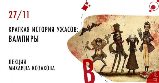 В Музкомедии ждут любителей эксцентричных комедий. 27 ноября здесь пройдет спектакль «Уполномочена заявить», созданный именно в таком жанре. В постановке задействована целая звездная плеяда одесских комиков и молодых звезд одесских театров — Александр Постоленко, Вадим Набоков, Татьяна Иванова и Алексей Агопьян, Елизавета Дюльгер и Александр Кабаков, Надежда Сальникова, Михаил Игнатов и Евгений Юхновец. Артисты разыграют на сцене настоящий шпионский детектив с элементами сказки, мелодрамы и политической сатиры. Стоимость билетов — 100-300 грн. В Гостиной Hub продолжается череда любопытных лекций. В частности, 27 ноября, здесь подробно разберут тему бессмертия и главных обладателей такой сверхспособности – вампиров. Философ Михаил Козаков расскажет, каким представляется образ вампира в народных сказках Восточной Европы, зачем вампиру клыки, существуют ли реальные вампиры и как их образ эволюционировал в массовой культуре. Стоимость билетов — 100 гривен. Необходима регистрация. Подготовила Надежда Маркевич СМЕРТЬ РОСІЙСЬКИМ ОКУПАНТАМ! Помітили помилку? Виділяйте слова з помилкою та натискайте control-enter Новини по цій темі: |