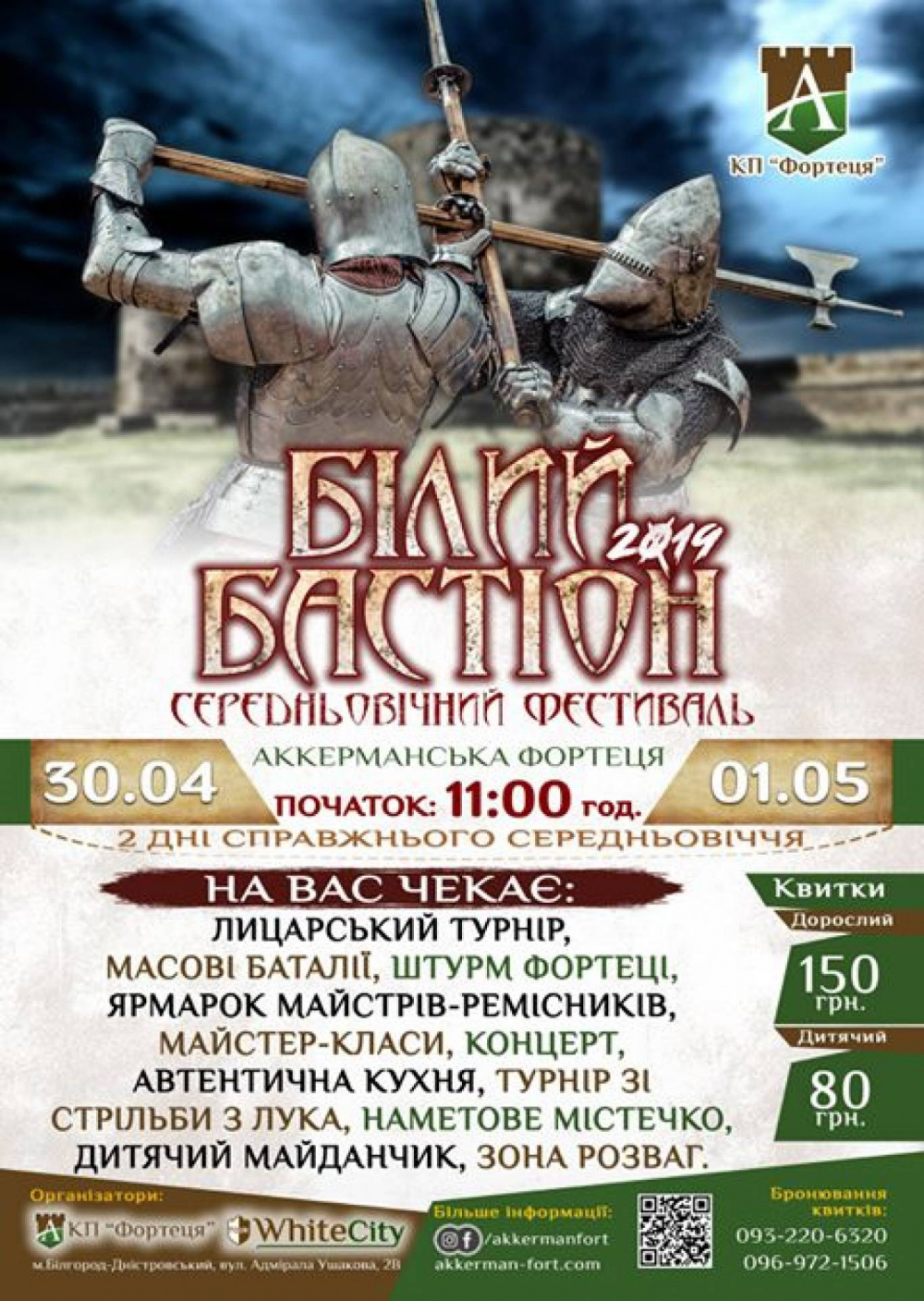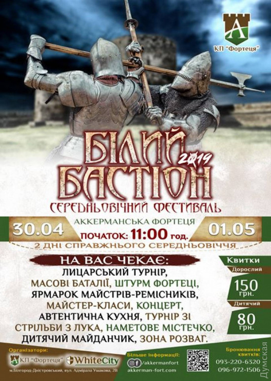 30 апреля и 1 мая в Аккерманской крепости пройдет рыцарский фестиваль «Белый бастион». Для желающих посмотреть на средневековые бои в аутентичной обстановке организованы специальные автобусные туры.