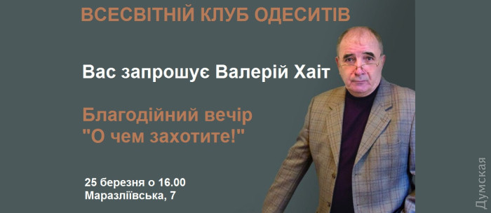 Куди піти в Одесі: проєкт «Переселенці», вечір гітарної музики та вистава «Пеппі»Про культурні події майбутнього тижня читачам традиційно розповість рубрика «Куди піти в Одесі» від «Думської». «ОДЕСЬКІ СЮЖЕТИ ЖОРЖА СІМЕНОНА. 1933 РІК» До 16 травня у музеї особистих колекцій Блещунова працюватиме фотовиставка «Одеські сюжети Жоржа Сіменона. 1933 рік». Бельгійський письменник побував в Одесі якраз під час Голодомору, у травні 1933-го року. Місто він відвідав як репортер французького тижневика «Ле Жур» і всюди пересувався під наглядом спецслужб. За кілька днів перебування у місті він зробив безліч фотографій, проте більшу частину в нього відібрали під час виїзду. Загалом збереглося 69 знімків, 35 з яких представлені на виставці. На них добре відчувається атмосфера Одеси 30-х років. Виставка відкрита щосуботи та щонеділі з 10:30 до 17:30. «ПРО ЩО ЗАХОЧЕТЕ!» Благодійний творчий вечір письменника і поета Валерія Хаїта відбудеться у Всесвітньому клубі одеситів 25 березня. Мета творчої зустрічі — збір коштів для допомоги бійцям територіальної оборони Одеси. А оскільки вечір називається «Про що захочете!», глядачі зможуть стати безпосередніми учасниками виступу і ставити запитання авторові. Старт о 16:00. Благодійний внесок — 100 грн. THREE SPACES OF MUSIC Вечір гітарної музики Three Spaces of Music запланований у Філармонії 25 березня. Організатори запевняють, що на відвідувачів чекає вечір, сповнений романтизмом і модерном. Для створення необхідної атмосфери на сцену вийдуть Дмитро Земський, Михайло Ксіда, Артем Киселевський, Володимир Гусайлов, а також квартет у складі Наталії Мазепи, Дар'ї Болдирєвої, Софії Орловської та Артема Колуцького. Старт о 17:00. Вартість квитків — 150 грн. ВЕСЕЛА РОДИНА СВИНКИ ПЕППИ Шоу-вистава для маленьких одеситів та інших шанувальників Свинки Пеппи відбудеться у Будинку клоунів 26 березня. Відвідувачі побачать веселу інтерактивну виставу про родину та друзів Пеппи, познайомляться з мамою Свинкою, татом Свином, братиком Джорджем, кроликом Ребекою і овечкою Сьюзі. Шоу наповнене веселими піснями, танцями та іграми. «Наша вистава в зрозумілій і доступній для дітей формі розповість про веселих тварин, їхню дружбу, взаємодопомогу, шанобливе ставлення до старших», — йдеться в анонсі. Дітям до 4 років вхід вільний без надання місця. Старт об 11:00. Вартість квитків — 180-450 грн. ІВАСИК-ТЕЛЕСИК На сцені одеського ТЮГу оживе українська народна казка «Івасик-Телесик». Виставу покажуть 26 березня. Режисери постановки додали в знаменитий сюжет нових героїв. Зокрема, в Івасика-Телесика з'явиться відданий друг. Також у казці буде комічний персонаж Забудько-Незнайко, дівчина Орися, її батько Кирило та Золота Рибка. Головний герой зможе не лише врятуватися від смерті, а й повернути зір сліпій дівчині Орисі та розправитися з нечистою силою. Старт о 12:00. Вартість квитків — 200 грн. «ДОН КІХОТ» Оперний театр 26 березня запрошує шанувальників балету на виставу «Дон Кіхот» за однойменним романом Мігеля де Сервантеса. Балет Людвіга Мінкуса йде на сцені одеської Опери вже майже 100 років і багато разів зазнавав змін. І знову балет постане перед глядачами в оновленій версії. За словами авторів, він буде більш емоційним, лаконічним, імпульсивним і цілісним. При цьому тривалість нової постановки буде набагато меншою, тепер балет буде представлений у двох діях. Глядачі змо