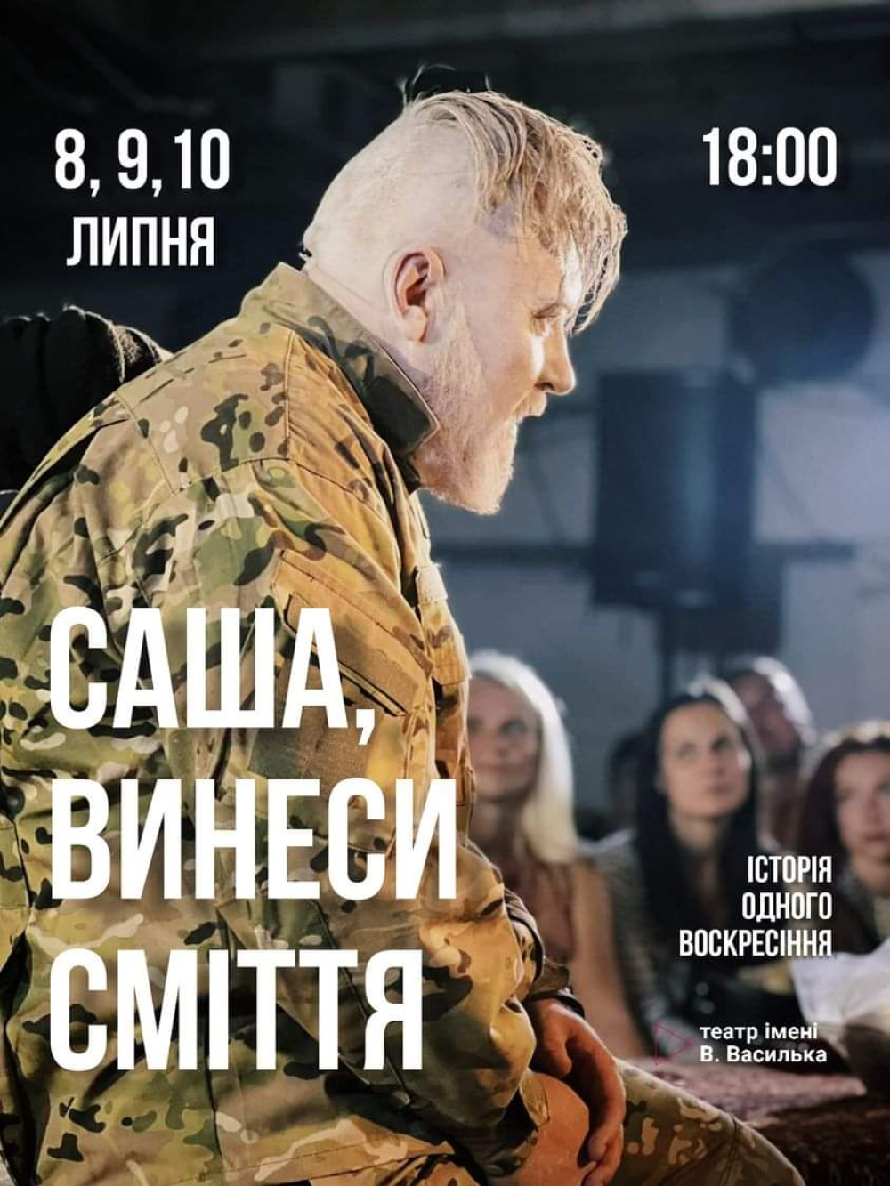 Украинский театр в военных реалиях работает в формате «театр в укрытии» — все представления проходят в безопасном месте, под главной сценой. 8, 9 и 10 июля здесь покажут спектакль «Саша, вынеси мусор!».