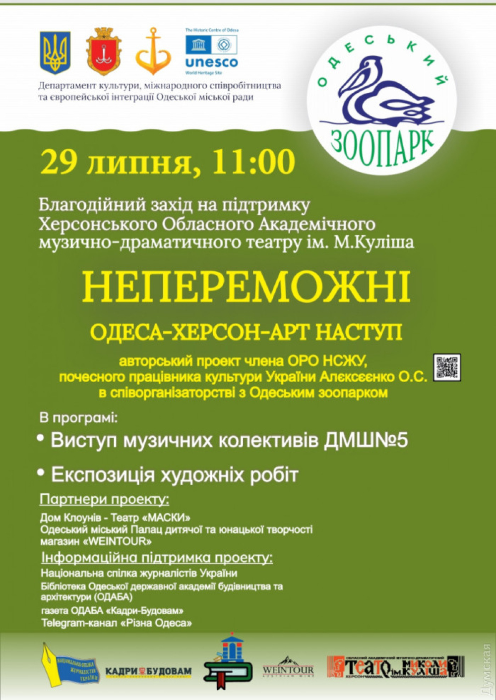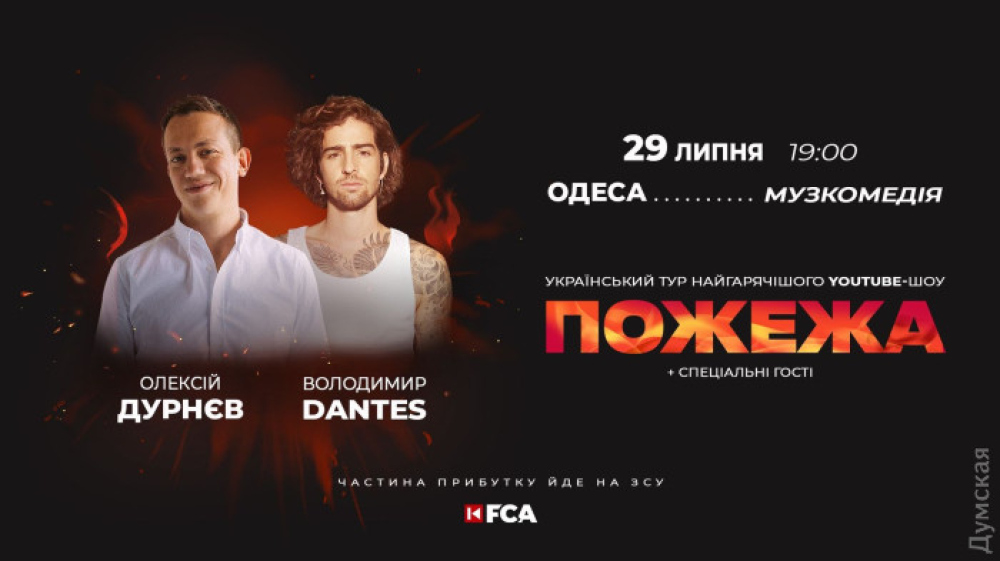 Куди піти в Одесі: вистава про Гаррі Поттера, YouTube-шоу «Пожежа» та «Вій»Сьогодні четвер, а значить настав час обговорити плани на вихідні. Поради, куди піти в Одесі цього тижня, ви знайдете в однойменній рубриці від «Думської». «ВІЙ» Містичну виставу за мотивами повісті Миколи Гоголя покажуть в Одеському обласному академічному театрі 28 і 29 липня. Цього разу історія про Хому Брута і панночку-відьму постане перед глядачами в жанрі мюзиклу. Таємничу атмосферу в постановці доповнять масштабні костюмовані сцени, танці, пісні, складні трюки та спецефекти. Старт о 18:00. Вартість квитків — 200-300 грн. MOOD: PEREMOGA Благодійна експозиція Соні Морозюк відкриється у Міжнародному культурному центрі «Уніон» 28 липня. Художниця смислів, як часто називають Соню Морозюк, представить свої твори з патріотичним підтекстом. Мета виставки — збір допомоги постраждалим жителям села Василівка Миколаївської області, яке було затоплено внаслідок підриву Каховської ГЕС. Кошти підуть на купівлю будівельних матеріалів для відновлення затоплених будинків. Старт о 18:30. Вартість квитків — 200 грн. ВИСТАВКА І КОНЦЕРТ У ЗООПАРКУ Авторський проект Олени Алексєєнко «Непереможні Одеса — Херсон — арт-наступ» пройде в одеському зоопарку 29 липня. У програмі — виставка картин, виступи музичних колективів, а також зустріч з відомим актором, поетом і учасником комік-трупи «Маски» Борисом Барським. Зібрані кошти спрямують на підтримку Херсонського обласного музично-драматичного театру ім. Куліша. Старт об 11:00. UКRAINE: WOMEN & ART Благодійна лекція від Наталії Богачевої «Ukraine: Women & Art. Від Соні Делоне до сучасних художниць» запланована в Одеському художньому музеї 29 липня. Йтиметься про відомих українських авторок минулих років і сучасності, на долі яких так чи інакше вплинула війна. Виступ пройде англійською мовою і буде присвячений українській художниці, яка творила в стилі наївного мистецтва, Поліні Райко. Старт о 14:00. Донат музею від 500 грн. «ДЖАЛАПІТА. СВІТ ДЖА» Прем'єру в жанрі манкі-драма «Джалапіта. Світ Джа» покажуть у ТЮГу 28, 29 і 30 липня. В основу постановки лягли сюрреалістичні притчі німецької письменниці з українським корінням Емми Андієвської про якості та метаморфози доброго і наївного головного героя — Джалапіто. За словами організаторів, вистава орієнтована на тих, хто цікавиться світом і не все про нього знає. Старт о 17:00. Вартість квитків — 200 грн. «КАДІШ. ПАМ'ЯТІ ЖЕРТВ ГОЛОКОСТУ» Вистава-реквієм «Кадиш. Пам'яті жертв Голокосту» про одну з найстрашніших трагедій ХХ століття покажуть в Одеському ляльковому театрі 29 липня. Це спеціальний сценічний проєкт для дорослих глядачів за участю акторів і ляльок. Артисти тут будуть небагатослівні, адже часом навіть шепіт або пісня можуть передати сильні емоції та душевний біль. Його мета — нагадати людям про те, через який жах довелося пройти мільйонам невинних людей. Старт о 18:00. Вартість квитків — 250 грн. АНДРІЙ ПОКАЗ. СОЛЬНИЙ КОНЦЕРТ Сольний концерт одеського піаніста і композитора Андрія Показа відбудеться в Міжнародному центрі «Уніон» 29 липня. Він підготував для глядачів насичену програму, до якої увійшли твори Фредеріка Шопена, а також імпровізації на тему українських пісень. Андрій Показ — учасник джазового колективу POKAZ TRIO з 2017 року, резидент численних джазових клубів і фестивалів по всьому світу. Виступав із такими м