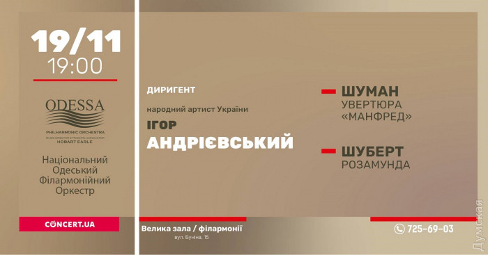 Одесская филармония приглашает вакцинированных зрителей послушать поэму «Манфред» Шумана и «Розамунда» Шуберта. Прекрасной классикой в исполнении Национального одесского филармонического оркестра можно будет насладиться 19 ноября.