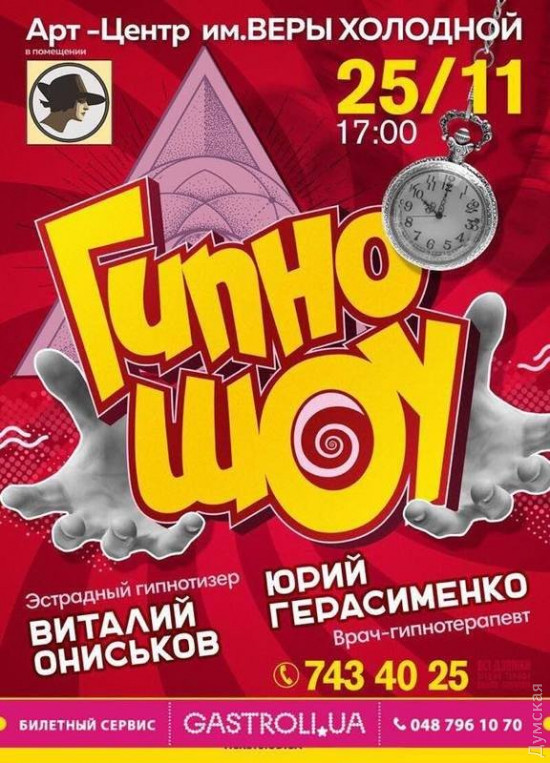 В арт-центре Веры Холодной покажут развлекательное представление для детей и взрослых «Гипно-шоу». Номера эстрадного гипноза можно будет увидеть 25 ноября.