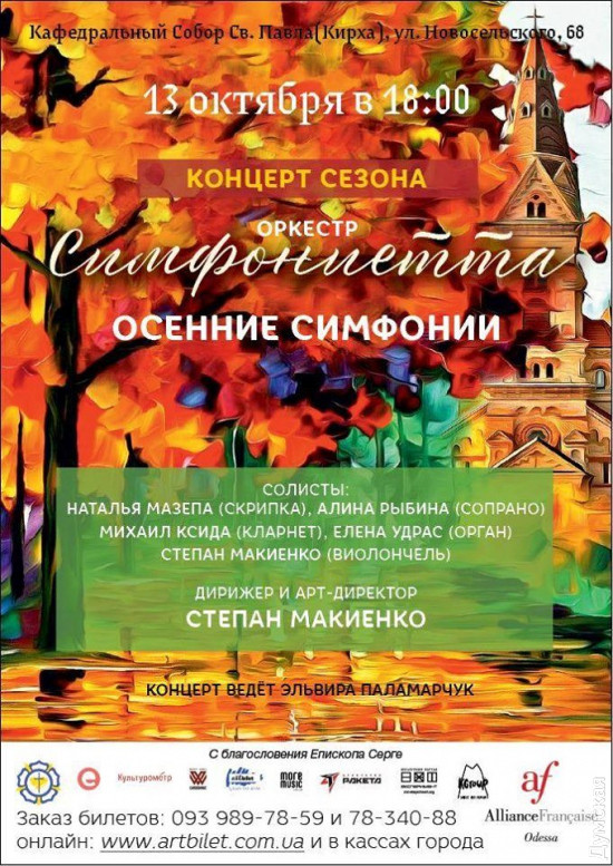 Подходит к концу холодная осенняя неделя, синоптики обещают бабье лето, а значит стоит использовать эту возможность для культурного отдыха. Читайте рубрику «Думской» — «Куда пойти в Одессе» и выбирайте мероприятие по душе.