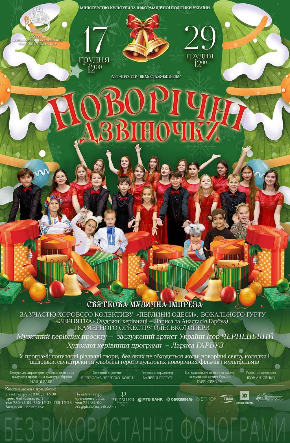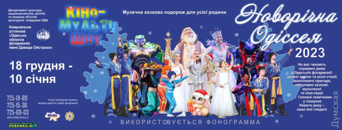 Куди піти в Одесі: виставка в укритті, «Зимова казка» в ТЮГу і «Ніч перед Різдвом» в УкраїнськомуПопри воєнний час і блекаут, культурне життя в Одесі триває. Театри вже дають новорічні вистави для дітей і дорослих, а в укритті Зеленого відкриється виставка, присвячена Харкову. Докладніше про те, де провести своє дозвілля, читайте в рубриці «Думської» — «Куди піти в Одесі». «ПЕРЛИНИ УКРАЇНСЬКОГО ДЖАЗУ» Джаз-клуб «Перрон №7» 17 грудня запрошує шанувальників якісної музики на концерт «Перлини українського джазу». До репертуару вечора увійдуть такі пісні як «На трамвайній зупинці», «Червона калина», «Не топчіть конвалій», «Намалюй мені ніч», «Несе Галя воду», «Не твоя війна» та інші. Клуб забезпечений генератором, тож концерт відбудеться навіть у разі відключення електрики. 50% зібраних на концерті коштів підуть на технічне забезпечення протиповітряної оборони міста. Старт о 18:00. Вартість участі — free donation. «НОВОРІЧНІ ДЗВІНОЧКИ» Прем'єра концерту повної різдвяної магії «Новорічні дзвіночки» відбудеться 17 грудня в одеській Опері. Івент пройде в затишному арт-просторі «Бельєтаж-імпреза». За словами організаторів, музична подія припаде до душі і маленьким, і дорослим. Хоровий колектив «Перлини Одеси» та камерний оркестр одеської Опери виконають для глядачів культові різдвяні та новорічні хіти, саундтреки з топових новорічних кіно- та анімаційних фільмів. Старт о 12:00. Вартість квитків — 150 грн. «НІЧ ПЕРЕД РІЗДВОМ» Прем'єра мюзиклу «Ніч перед Різдвом» за однойменною повістю Миколи Гоголя відбудеться 17 грудня на сцені Українського театру. На гостей чекає нове прочитання відомої всім історії, в якій реальні та фантастичні герої опиняються в одному просторі та часі. Глядачі зможуть зануритися в казкову атмосферу передріздвяного села в серці України. Зі сцени прозвучать мелодії старовинних святочних пісень, автентичні колядки в сучасному аранжуванні. «Незважаючи на несподівані повороти та відкриття, обіцяємо, що світлі сили незмінно переможуть темряву, а чисті душі — нечисть», — йдеться в анонсі. Над музичним оформленням вистави працював Вадим Бессараб. Старт о 15:00. Вартість квитків — 150-350 грн. РІЗДВЯНІ ІСТОРІЇ В Одеській музкомедії 17 грудня виступить Black Sea Orchestra під керівництвом диригентки Олесі Пістової з концертом «Різдвяні історії». Музиканти готують для глядачів репертуар із різдвяних композицій Ніно Рота, Ганса Циммера і Говарда Шора, музика яких наповнить простір прад атмосферою. Старт о 16:00. Вартість квитків — 250-420 грн. «ЗИМОВА КАЗКА» Новорічну виставу під назвою «Зимова казка» покажуть 18 грудня в Театрі юного глядача. Мова у виставі піде про Санта Клауса і про те, хто ж приносить подарунок йому самому. Для того, щоб Санта отримав свій подарунок до Різдва, Малюк-Ельф, бабуся Санти, Ельк і Мільке почали шукати старовинний рецепт чарівного яблучно-ванільного пирога. У пошуках загубленого рецепта вони зустрінуться з різними казковими героями, які заблукали в чарівному лісі. Старт об 11:00. Вартість квитків уточнюйте. «НОВОРІЧНА ОДІССЕЯ» Ще один святковий захід пройде 18 грудня в Одеській філармонії. Тут відбудеться концерт «Новорічна Одіссея». У Філармонії переконані, що сьогодні дуже важливо відволікати дітей і підлітків від тривожних думок. Ідеальний варіант — потанцювати, поспівати та погратися разом з учасниками новорічн
