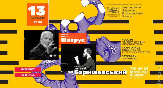 В программе вечера прозвучит известная увертюра Россини, второй фортепианный концерт Рахманинова и Вторая симфония Бетховена. Шедевры классики исполнит солист Национальной филармонии Украины, лауреат более 20 международных конкурсов, Антоний Барышевский. Дирижирировать оркестром будет Игорь Шаврук.