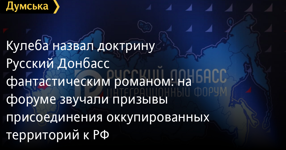 Кулеба назвал доктрину «Русский Донбасс» фантастическим романом: на форуме звучали призывы присоединения оккупированных территорий к РФДоктрину «Русский Донбасс», которую приняли оккупационные власти самопровозглашенных ДНР и ЛНР, напоминает фантастический роман. Такое мнение выразил министр иностранных дел Украины Дмитрий Кулеба на брифинге. «Никому не запрещено писать фантастические романы или документы, которые напоминают произведения фантастов», — отметил Кулеба. Он отметил, что угроза для Украины была создана в 2014 году с началом российской агрессии, и с тех пор стратегия Украины была очень четкой. «Она базируется на простом принципе — неотвратимого возвращения наших территорий, выведение российских войск и восстановление украинского суверенитета. Они могут все что угодно там себе принимать, но мы понимаем все риски и готовы к ним», — заявил Кулеба. Отметим, на оккупированном Донбассе проходит форум «Русский Донбасс» с участием властей так называемых «ДНР» и «ЛНР», депутатов российской Госдумы и российских пропагандистов. Авторы представленной на обсуждение доктрины «Русский Донбасс» уверены, что ее принятие «будет способствовать формированию картины мира жителей региона, в основе которой легли идеалы и ценности Русской цивилизации». В ходе форума главред Russia Today Маргарита Симоньян заявила, что «Россия обязана забрать Донбасс домой». В Кремле отреагировали на это заявление: пресс-секретарь Путина Дмитрий Песков заявил, что на повестке дня вопрос присоединения Донбасса к России не стоит. СМЕРТЬ РОССИЙСКИМ ОККУПАНТАМ! Заметили ошибку? Выделяйте слова с ошибкой и нажимайте control-enter |