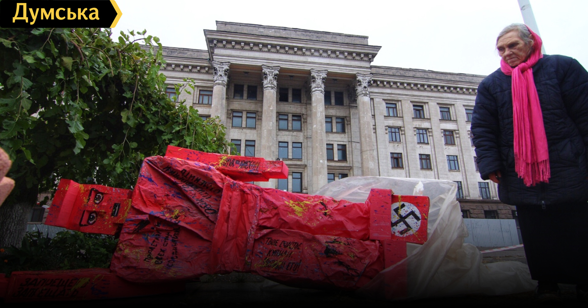 Сегодня, в день 100-летия Октябрьской революции, возложить цветы на Куликово поле Одессы пришла группа пророссийских активистов. Заодно они убрали установленный на площади ранее памятник в виде красной фигуры с юмористическими лозунгами. Один из лидеров движения «Куликово поле» Морис Ибрагим заверил, что памятник устанавливали не они, но чтобы долго не думать над его смыслом, решили убрать «рыцаря» с видного места и положить под дерево. Правоохранители сняли оцепление, выставленное вокруг арт-объекта утром (после того, как его проверили взрывотехники). Охранять общественный порядок на площади продолжают четыре экипажа полиции. «Куликовцы» возложили цветы к Братской могиле жертв гражданской войны и Дому профсоюзов, после чего начали расходиться. СМЕРТЬ РОСІЙСЬКИМ ОКУПАНТАМ! Помітили помилку? Виділяйте слова з помилкою та натискайте control-enter |