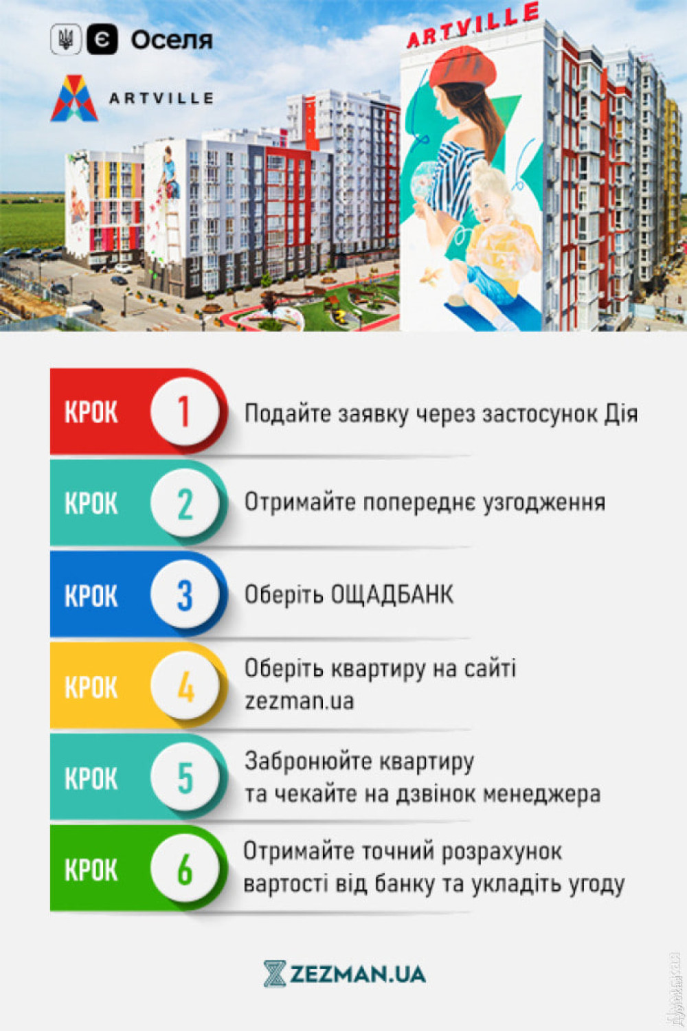 Квартири стали ще доступніше: ARTVILLE акредитовано за програмою «ЄОселя» (новини компаній)Житлове містечко ARTVILLE від ZEZMAN Holding акредитовано Ощадбанком для участі у програмі держаної іпотеки «ЄОселя». Це одна з перших акредитацій на Одещині, що дає змогу інвестувати в нерухомість на стадії будівництва. До цього за програмою можна було придбати лише готову квартиру в новобудові або на вторинному ринку. ARTVILLE: житлове містечко в концепції Smart Sustainable City ARTVILLE — житлове містечко, що викликає довіру. І тепер це підтверджено документально — після десятків процедур комплаєнсу та узгоджень, які повинен пройти девелопер для отримання акредитації. Наразі під «ЄОселю» акредитовано четверту чергу будівництва ARTVILLE. Це 3 будинки з високою готовністю, де вже проводиться підключення комунікацій. Залишаються роботи зі скління та утеплення, ремонти на вхідних групах, поверхах та в квартирах. Девелопер здає всю чергу протягом 2025 року. У вартість квартир містечка включено ремонт. За відгуками «корінних» артвільців, людей що живуть тут вже 4–5 років, якість роботи та матеріалів дуже висока — квартири не потребують додаткових вкладень ані при заселенні, ані за кілька років потому. Одесити давно знають ARTVILLE, адже його фасади з 20-метровими муралами вже стали прикрасою та символом Авангарду. Всередині містечка — власний капсульний парк з локаціями для різних вікових груп, тренажерний зал, кафе, пекарня та багато інших сервісів. Особливу увагу приділено здоров'ю мешканців — працює сучасна амбулаторія з широким спектром медичних послуг. Також діє школа ARTVILLE Urban School та поліцейське відділення. А за технічну експлуатацію містечка та турботу про мешканців відповідає власна керівна компанія «Дбай!». Сама концепція Smart Sustainable City передбачає надання мешканцям максимального комфорту через розвиток інфраструктури, соціального життя та збереження екології. Коротко про стан ринку нерухомості — інтерес зростає! Ринок нерухомості в Одесі почав демонструвати позитивну тенденцію. За даними аналітиків ZEZMAN, за перший квартал 2024 року було введено в експлуатацію 110 000 кв.м, що становить 30% від усього 2023 року. Для порівняння: у Києві та Львові за перший квартал було введено 240 000 та 210 000 кв.м відповідно, в Ужгороді – 130 000, а в Дніпрі лише 50 000. Ми знаходимось на початку нового підйому ринку нерухомості. Разом із пожвавленням попиту, зростатимуть і ціни. Тому придбання житла зараз — на часі. Воно є вигідною інвестицією у ваше майбутнє. Як отримати іпотеку ZEZMAN Holding — акредитований партнер ОщадБанку з надання державної іпотеки «ЄОселя». Від вашої квартири вас відділяє декілька кроків: Сайт житлового містечка Artville — https://artville.ua Контактний номер менеджера: 0800306100 Помітили помилку? Виділяйте слова з помилкою та натискайте control-enter |