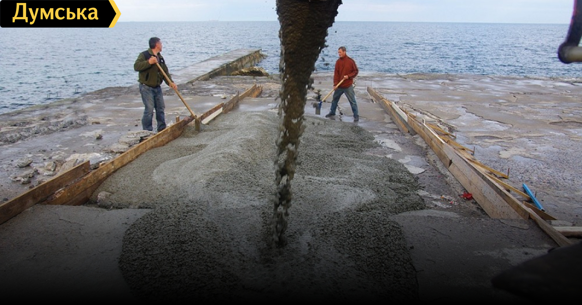 Масштабные бетонные работы ведутся на некоторых одесских пляжах, передают корреспонденты «Думской» и «ДумскойТВ».