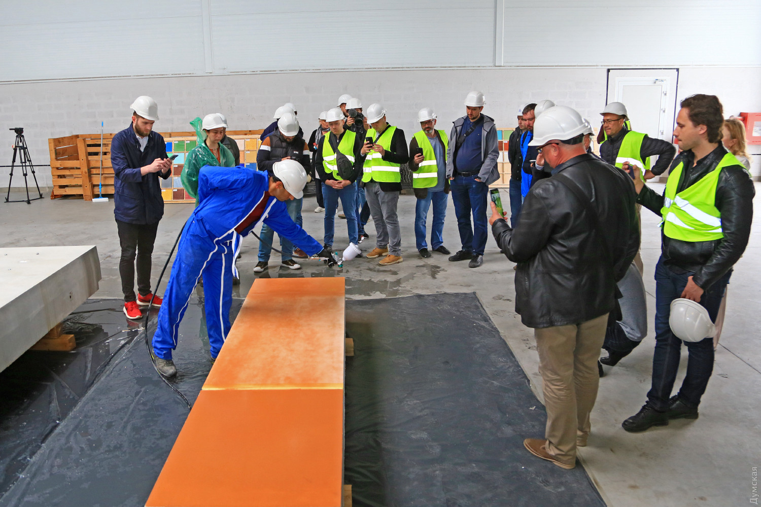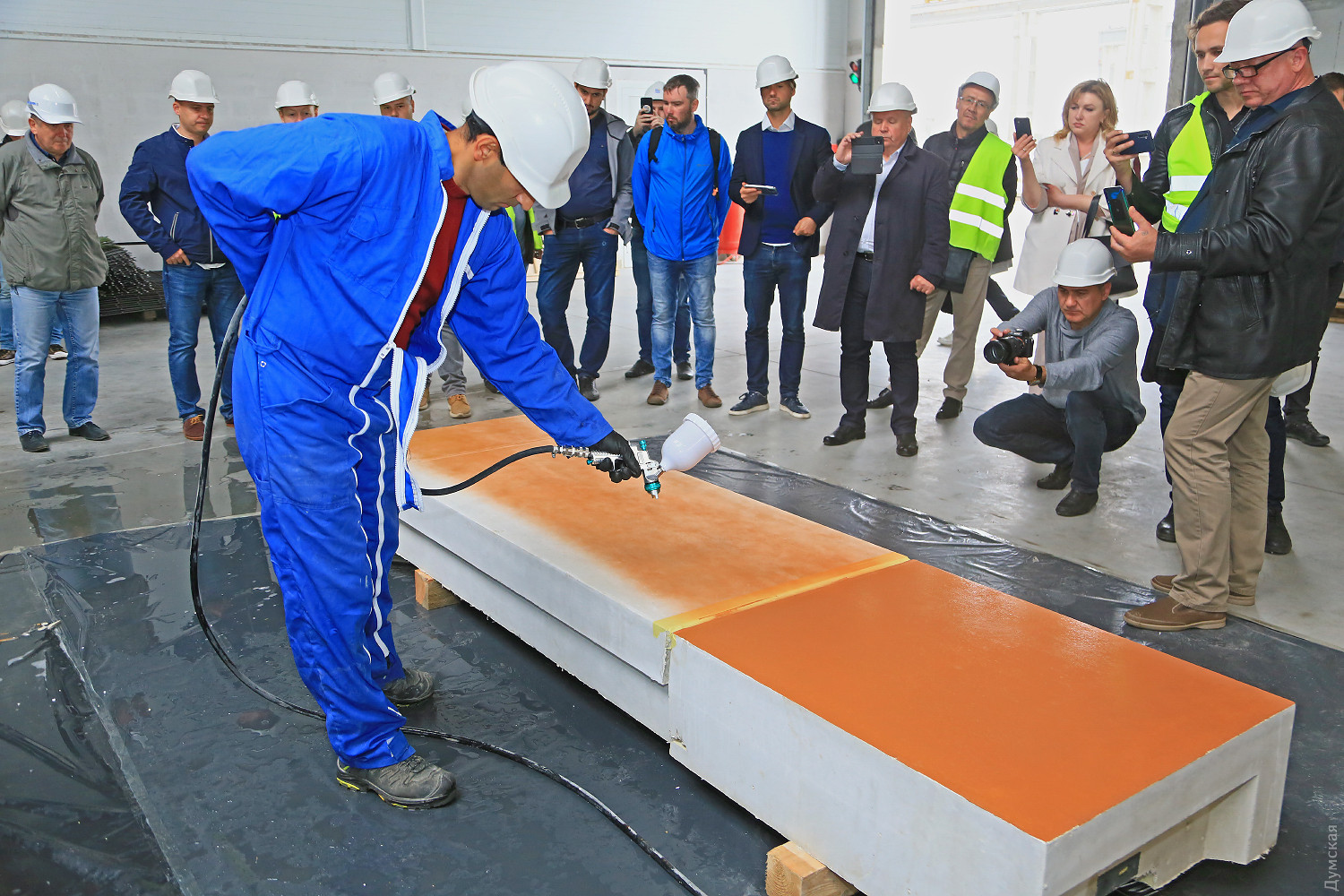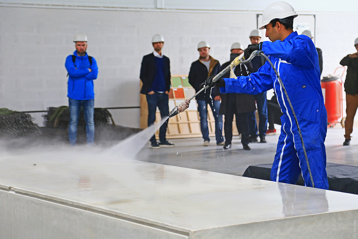 Одна из крупнейших одесских строительных компаний продолжает совершенствовать свои технологии. Одесситы давно убедились, что стандарты КП «Будова» отличаются в лучшую сторону от многих других застройщиков. Высотки «Альтаира», монументальные строения «Бельэтажа», удобство «Михайловского городка» и яркие цвета «Апельсина» внесли разнообразие в карту новостроек и стали эталоном качественного жилья. Но «Будова» не стоит на месте. Несколько дней назад в Одессу прибыла делегация французских партнеров «Будовы» и лично владелец компании Guard Industrie Ltd. Бернабе Вейзер. Компания Guard Industrie существует более 30 лет. Основное направление производства – защита поверхности бетона от различных загрязнений: влаги, жиров, граффити и других внешних влияний, а также создание специального цветного покрытия, отличного от краски – пропитки. Компания владеет технологиями производства Protect Guard Color и контролирует качество их использования партнерами. Новшество состоит в том, что молекула «пропитки» в пять раз меньше молекулы краски, не создает пленку на поверхности бетона и проникает во все поры и неровности панели. Цветная «пропитка» не подвержена погодным явлениям, держится на окрашенной поверхности десятки лет и не тускнеет со временем. Именно французскими пропитками пользуется «Будова» при изготовлении своих долговечных фасадных панелей для жилых комплексов. 19 мая на заводе «АФБ Аспект» французы провели очередной мастер-класс для сотрудников предприятия. Технический директор Guard Industrie Ltd. Давид Ванджи показал методы очистки бетонных блоков и технологические приемы поэтапного нанесения цветной пропитки. «Я приезжаю в Одессу примерно два раза в год для проведения обучений, которые проводятся на заводе и на строительных площадках города, – отметил Давид Ванджи. – Нам важно удостовериться, что в процессе работы сохраняются наши стандарты и методы нанесения покрытий». Директор КП «Будова» Николай Куцак подчеркнул, что одесские объекты находятся под контролем французов наравне с европейскими: «Два года назад мы подписали договор о производстве пропиток у себя, с тех пор были реализованы многие наши планы. Приятно видеть, что наши объекты находятся под надзором Guard Industrie наравне с «Розой пустыни» в Катаре или «Марсельезой» в Марселе. Продукцией этой компании обрабатывали даже Нотр-Дам де Пари. Приятно, что наши жилые комплексы инспектируются французскими специалистами наравне с европейскими». Французы проинспектировали уже возведенные комплексы «Будовы», где использовалась их технология и провели презентацию своих новых продуктов в зале образовательной платформы Budova Academy, что на Осипова, 41. Там сотрудникам отделов продаж рассказали о главных конкурентных преимуществах технологии. «Все привыкли к тому, что единственным способом защитить бетон служит краска и только краска. У нашей компании другой подход, – рассказал владелец Guard Industrie Барнабе Вайзер. – Мы предлагаем придать цвет бетонным плитам с помощью «пропитки», ее можно еще назвать лазурью. Она защищает бетон и, по сравнению с краской, позволяет ему дышать – влага, находящаяся внутри, легко испаряется, защищая при этом бетон от проникновения влаги извне. Таким образом наша продукция защищает поверхность, и позволяет архитектору создавать любые цветовые решения». Директор деп