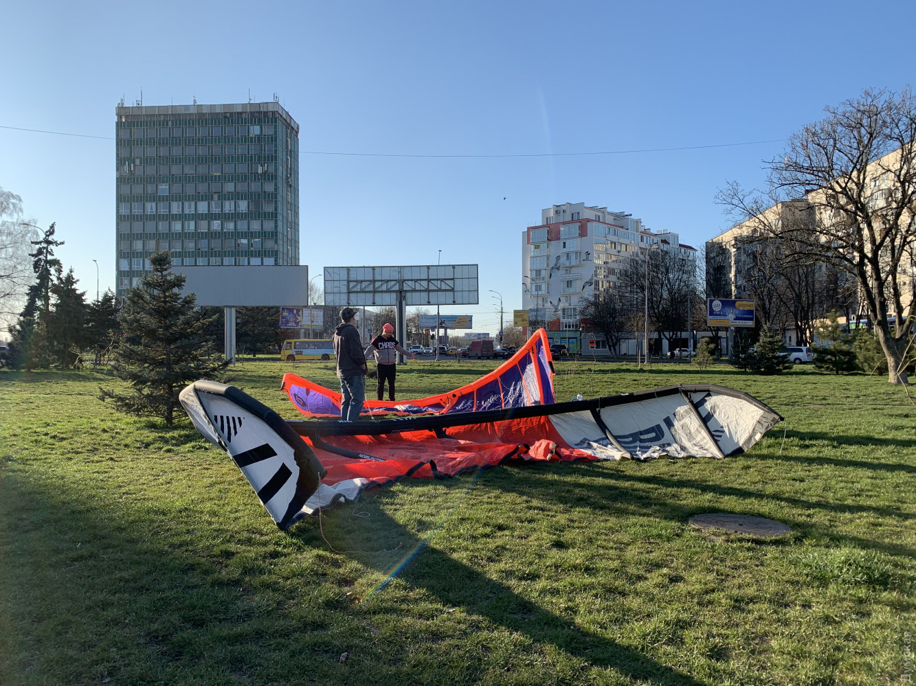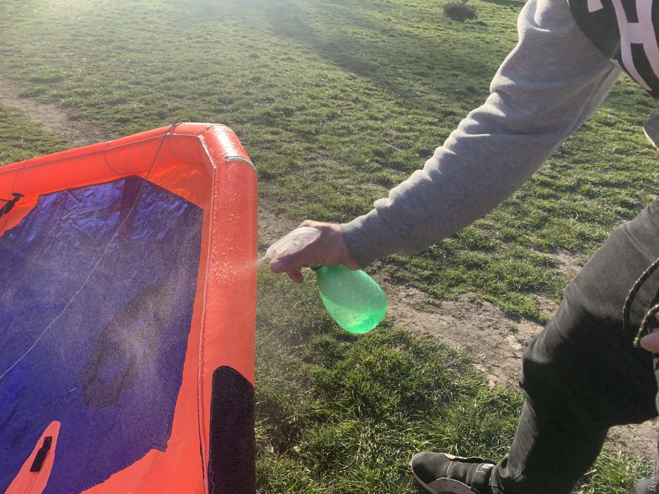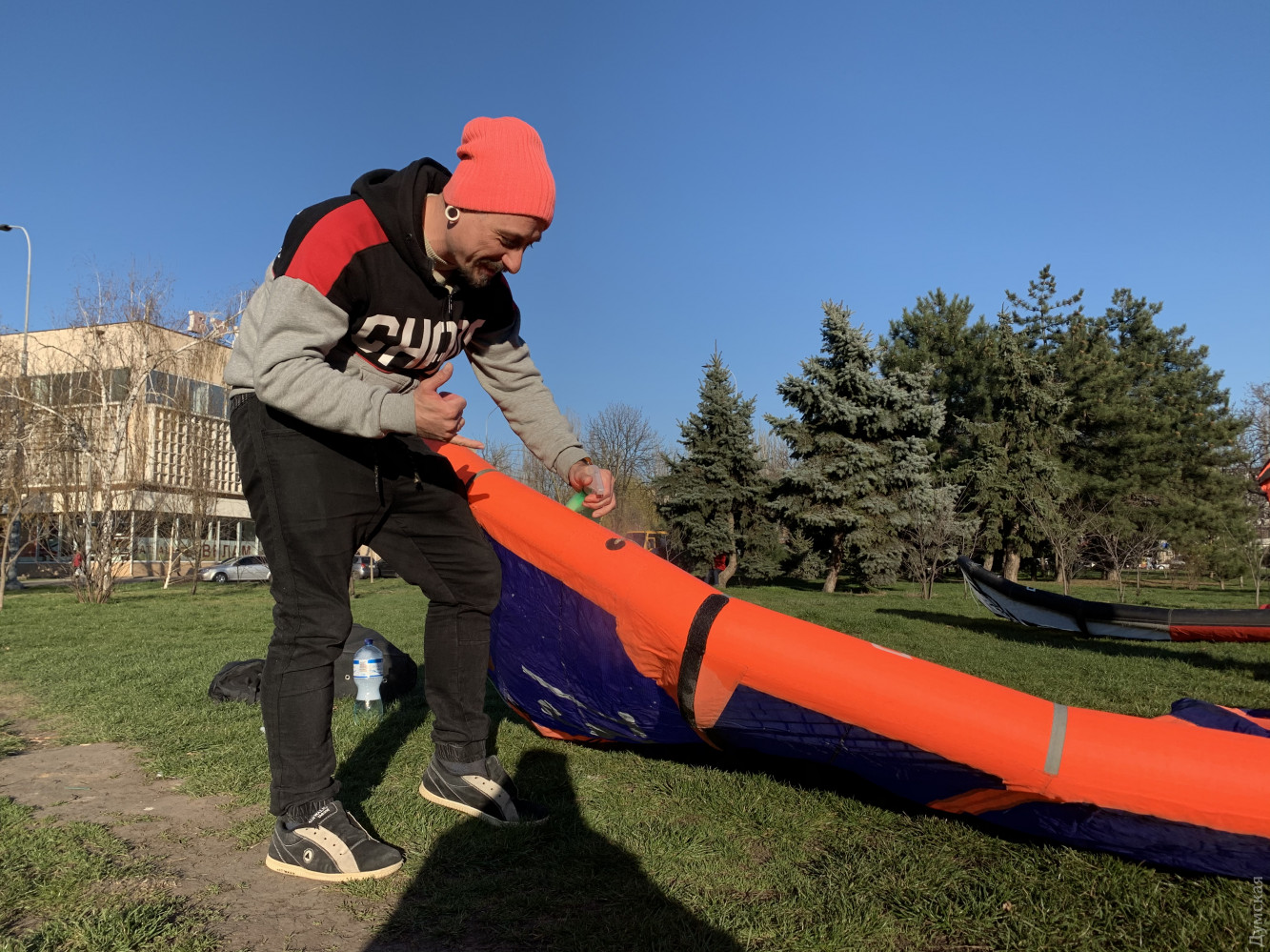 Лечат крылья и не боятся коронавируса: одесские кайтсерферы готовятся к сезону прямо на площади ДеревянкоОдесские кайтсерферы чинили сегодня свои «крылья» прямо на площади Бориса Деревянко, передает корреспондент «Думской». Спортсменов зовут Николай и Александр. Они рассказали нам, что взлетать не собираются, а просто ищут дырки. «Представьте, что это большой матрас. Мы надуваем кайт и распыляем на поверхность мыльную воду. Где пузырится — там дырка, — говорит Александр. — Надувается та часть, которая находится по краям. Если там есть дырки, она теряет форму и нормально не управляется». У спортсменов есть своя школа. Говорят, сами они коронавируса не боятся и сезон не закрывали — катались даже в феврале. А вот ученики в холодное время заниматься не хотят, поэтому их ждут только тогда, когда потеплеет, ну и отступит болезнь. СМЕРТЬ РОСІЙСЬКИМ ОКУПАНТАМ! Помітили помилку? Виділяйте слова з помилкою та натискайте control-enter |
