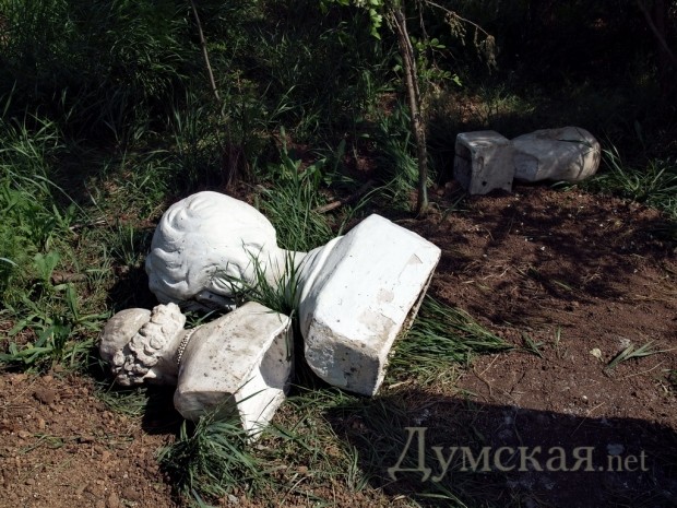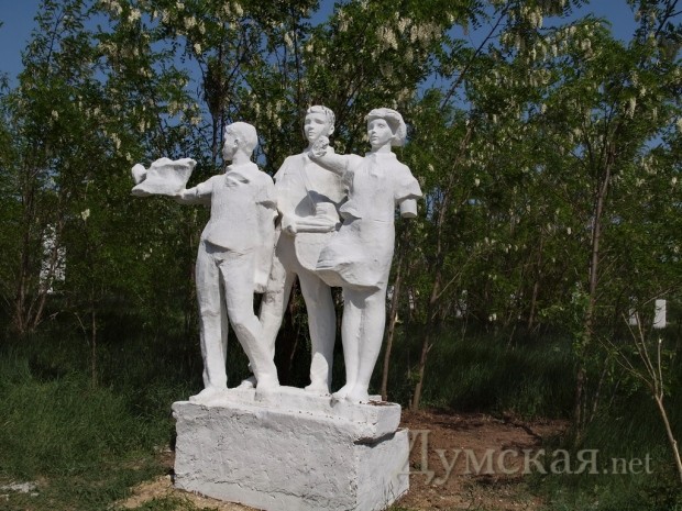 Чуть дальше, на боковой аллее — две фигуры Ленина без головы. Одна из фигур — Ленин и дети, а голова лежит тут же, в ногах Ильича. А другая голова валяется в траве рядом со стоящим на постаменте телом. Тут же - многочисленные советские скульптуры в духе соцреализма по типу «девушки с веслом», бюсты различных советских деятелей. Надо признать, что во Фрумушике-Новой удалось сделать то, что так и не осилили в одесском парке Ленинского комсомола — собрать коллекцию Ильичей во всех его проявлениях. Фото — Александр Вельможко
