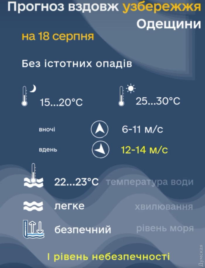 Літо не здає позиції: на Одещині — штормове попередження, грози та пожежна небезпекаШтормове попередження через сильний вітер оголосили на Одещині на понеділок, 18 серпня. Про небезпечні метеорологічні явища I рівня (жовтого) небезпеки повідомляють у Гідрометцентрі Чорного та Азовського морів. Синоптиків прогнозують місцями короткочасний дощ та грозу вранці та вдень в області. Вітер північно-західний 9-14 м/с. Вздовж узбережжя – 12-14 м/с. Температура вночі +14+19°С, вдень +25+30°С. В Одесі без істотних опадів, стовпчики термометрів вночі опустяться до +17+19°С, вдень температура підніметься до +26+28°С. Морська вода близько +22°С. Крім того, в деяких районах області 18 серпня очікується надзвичайний рівень пожежної небезпеки. СМЕРТЬ РОСІЙСЬКИМ ОКУПАНТАМ! Помітили помилку? Виділяйте слова з помилкою та натискайте control-enter |