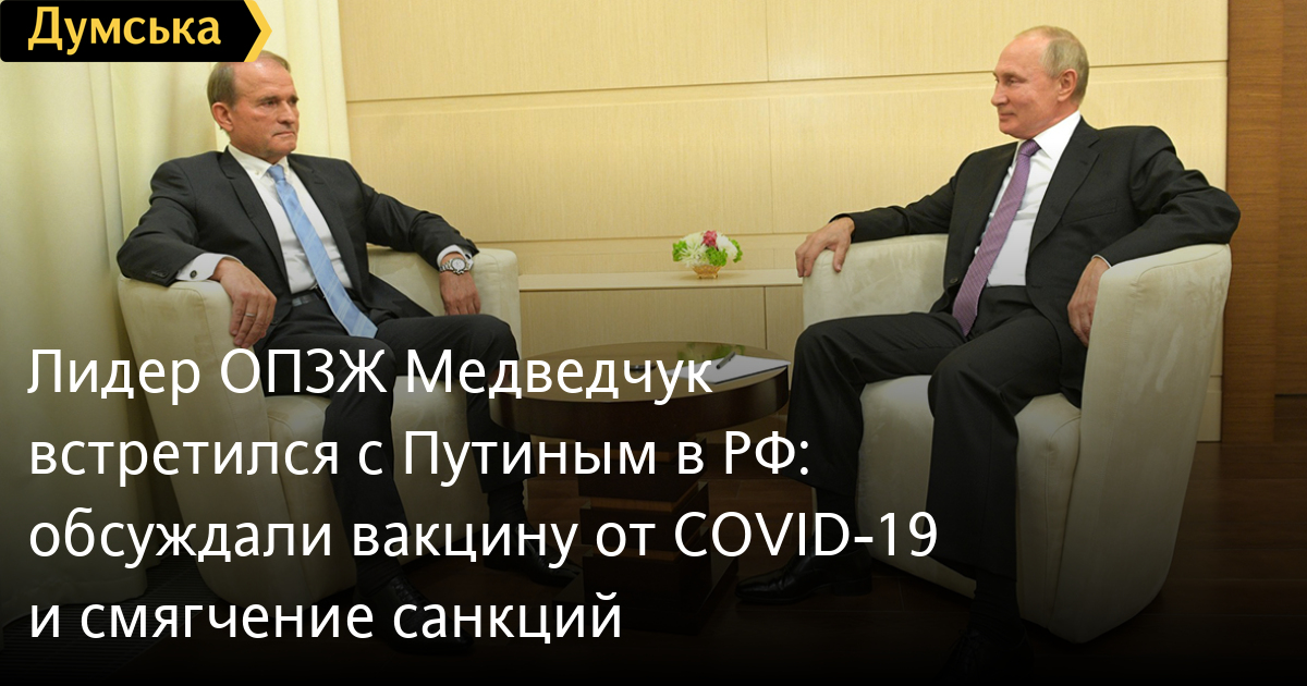 Лидер ОПЗЖ Медведчук встретился с Путиным в РФ: обсуждали вакцину от COVID-19 и смягчение санкцийЛидер партии «ОПЗЖ» Виктор Медведчук встретился со своим кумом президентом России Владимиром Путиным в резиденции Ново-Огарево, что под Москвой. Медведчук попросил российского лидера предоставить Украине вакцины от коронавируса и тот согласился. Сам Медведчук рассказал, что вакцинировался вместе со всей семьей в оккупированном Крыму в августе, и все члены семьи хорошо ее перенесли. Также лидер «ОПЗЖ» просил Путина обдумать «возможное частичное снятие санкции с Украины», в частности, с украинских промышленных предприятий. На что президент РФ заявил, что Россия вводила санкции «в ответ на действия других государств и не может снять их в одностороннем порядке». При этом Путин выразил уверенность, что «нужно уже сейчас готовиться к возможной отмене санкций между Украиной и РФ». Он добавил, что у него «сердце болит от того, что люди в Украине, которые работали на предприятиях, которые были ориентированы (на реализацию продукции — Ред.) в России, оказались в сложном положении». По информации пресс-службы «ОПЗЖ», Медведчук также провел встречу с председателем Госдумы РФ Владиславом Володиным. Они «выступили за активизацию межпарламентского диалога в рамках «нормандского формата». В партии заявили, что «встреча была направлена на выведение из тупика формата минских переговоров, Трехсторонней контактной группы«. »В тупике он находится по вине украинской делегации. Более того, Верховная Рада 15 июля приняла постановление, в котором одним из пунктов (пунктом 4) фактически перечеркнула нормы, предусмотренные Минскими соглашениями, утвержденными резолюцией Совета Безопасности ООН. И именно из‑за этого положения переговоры в ТКГ зашли в полный тупик», — подчеркнул Медведчук. Напомним, последний раз Медведчук предположительно встречался в оккупированном Крыму с Путиным в начале августа. Он уехал туда отдыхать со своей семьей 2 августа, а уже 4 августа туда прилетел самолет главы РФ. СМЕРТЬ РОССИЙСКИМ ОККУПАНТАМ! Заметили ошибку? Выделяйте слова с ошибкой и нажимайте control-enter Новости по этой теме: 4 марта 2023: "Вакцини-довгожителі", або Як щеплення проти COVID-19 перетворилися в Україні на небезпечний ритуал 27 января 2023: МОЗ обязали опубликовать договоры на закупку вакцин против COVID-19: апелляционный суд удовлетворил иск журналиста "Думской" 11 января 2023: За неделю в Одессе зафиксировано 159 случаев ковида 4 января 2023: За неделю в Одессе зарегистрировано 113 случаев ковида |