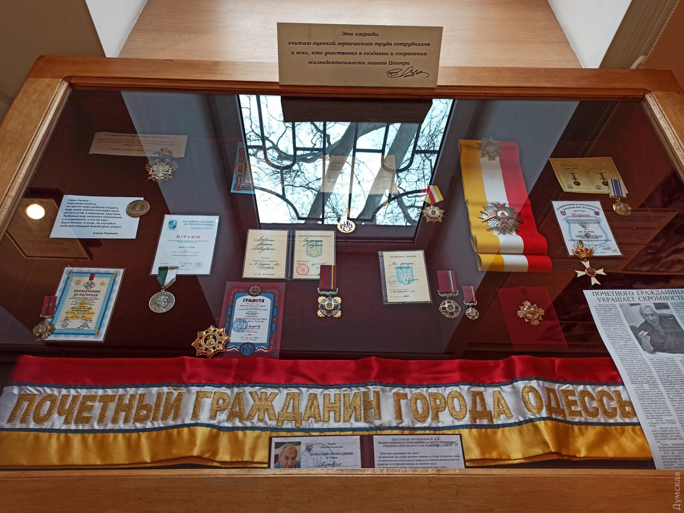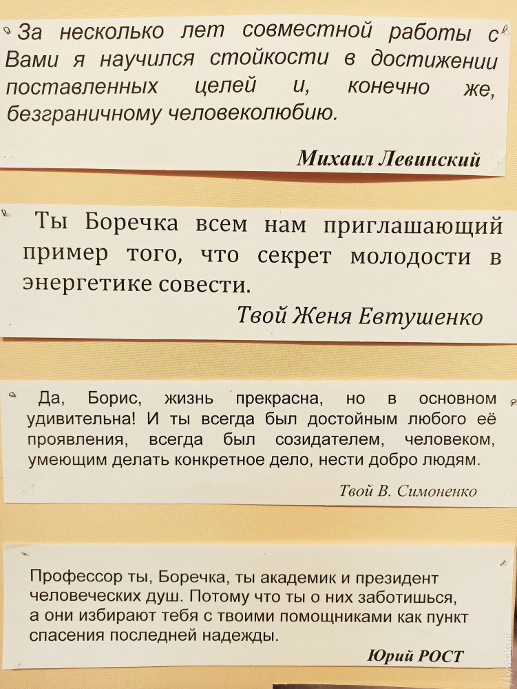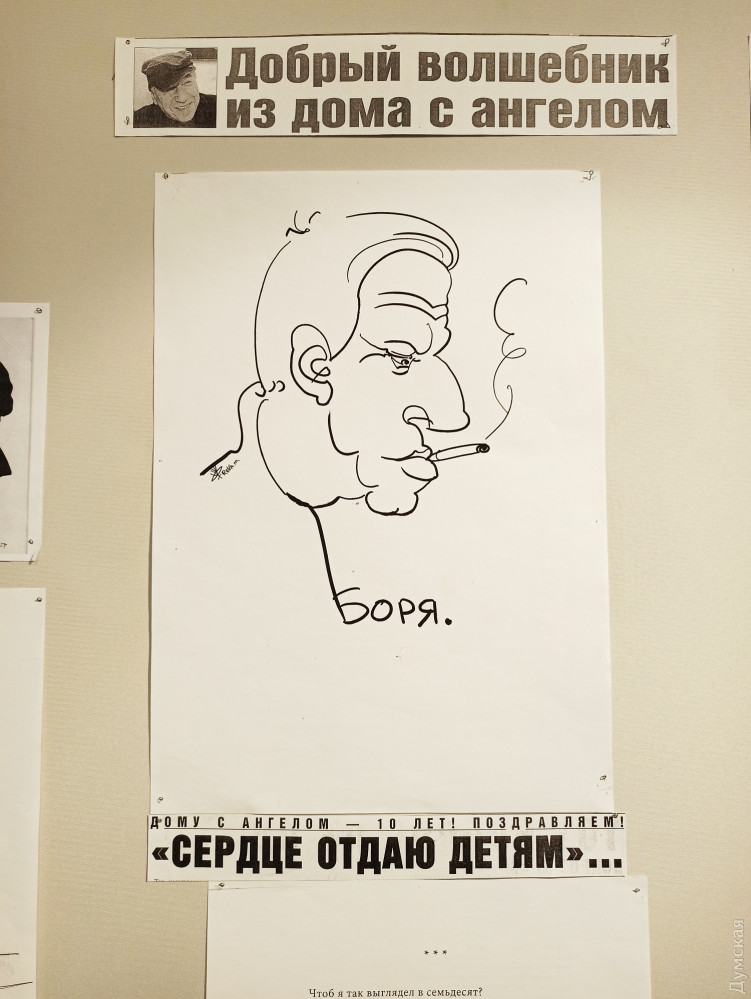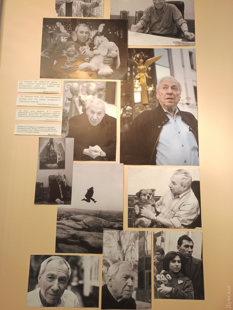 Если бы не рак легких, сегодня «совесть Одессы» Борис Литвак отмечал бы 90-летний юбилей. В память о почетном гражданине Одессы и создателе Центра реабилитации детей-инвалидов «Будущее» открылась выставка. Не удивительно, что экспозиция разместилась в здании главного детища Бориса Давыдовича – «Дома с ангелом». Создавать выставку с фотоколлажами, макетами зданий, наградами и личными вещами Литвака помогал одесский скульптор Михаил Рева, который, к слову, послезавтра справляет свой 60-летний юбилей. В экспозиции также представлены архивные фотографии Бориса Литвака, в том числе и отражающие этапы строительства «Дома с ангелом». А еще зажигалки и сигареты, с которыми он не расставался, и которые его в итоге и сгубили. Просторное помещение выставочного зала едва вмещало всех желающих вспомнить о светлом человеке, который дал надежду на будущее тысячам инвалидов. Здесь собрались люди, причастные к деятельности благотворительного центра, родственники Литвака и его многочисленные друзья. Среди товарищей, которых сам Борис Литвак называл «солнечными пацанами» — известный российский сценарист и журналист Виктор Шендерович, писатель и телеведущий Юрий Рост, поэт, один из авторов проекта «Господин хороший» Андрей Орлов, более известный как Орлуша и многие другие. На открытии выставки они вспоминали истории из жизни, шутили и восхищались широтой души Бориса Давыдовича. «Он для меня человек невероятной величины, общечеловеческого гуманитарного масштаба, выходящий за рамки страны, Советского союза, чего хотите. Он ничего не открыл, он просто следовал законам человеческой нравственности, может быть библейской, и жил так, как считал нужным. Оказалось, что так, как он жил, так и нужно», — рассказал «Думской» Юрий Рост. Писатель вспомнил историю как Борис Давыдович вез из Москвы в Одессу 30 лечебных нагрузочных костюмов, которые сам называл не иначе как костюмами космонавтов. Чтобы избежать проблем на границе, Юрий Рост попытался договориться с таможенником, чтобы Литвака беспрепятственно пропустили через контроль. «Я обратился к человеку, который не вызвал у меня никакой симпатии. Я ему все объяснил, а он просто молча развернулся и ушел. В результате Бореньку свободно пропустили. Я тогда стоял с трагической миной, ведь я-то думал, что этот таможенник — грязное животное, а он оказался солнечным пацаном. Так вот основная роль Бори была не в том, что он светился сам, а в том, что он заставлял светиться тех, в ком мы не подозревали, что этот свет есть», — говорит Рост. Вспоминал о своих личных историях, связанных с Литваком и российский писатель и оппозиционер Виктор Шендерович. «Он мне звонил и спрашивал – «Антисемитюга, кто тебя любит больше всех»? Нужно было отвечать – Боречка. Он говорил – «Убей их иронией», и я по мере возможности пытался это делать. Он был мерилом, был страх сделать что-то такое, что бы его расстроило. Вот перейдешь в грязные животные и все, жизнь не в радость. Литвак был уникальным случаем расправленных плеч и накаченных мышц добра. Добро не с кулаками, а с мышцами. Потому что добро не в том, что мы не делаем зла и сочувствуем, а в том, что ты встал утром и начал менять этот мир», — говорит Виктор Шендерович. Собравшиеся вспоминали как проходило 11 марта при жизни Бориса Давыдовича, как в спортивной школе накрывали фуршетные 