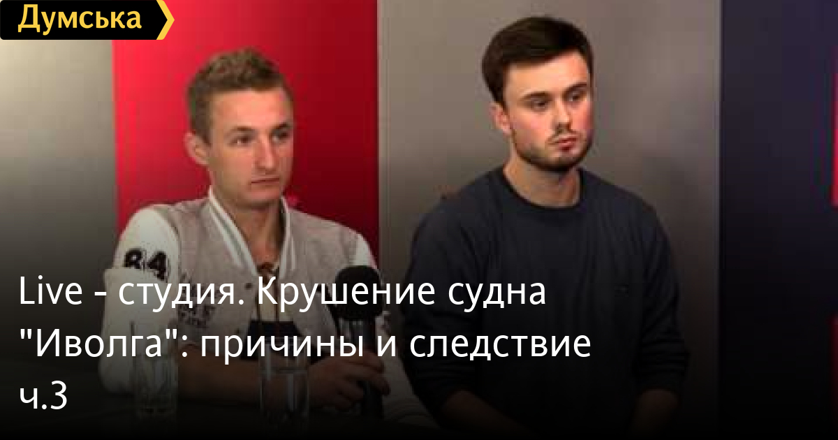 Гости: Георгий Зубко начальник управления морехозяйственного комплекса, транспорта и связи Одесской областной государственной администрации Денис Романов ,родственник погибшего на судне «Иволга» Денис Ганенко, очевидец кораблекрушения Владимир Белоусюк , председатель объединения ветеранов-подводников им. Н. А. Лунина СМЕРТЬ РОССИЙСКИМ ОККУПАНТАМ! Заметили ошибку? Выделяйте слова с ошибкой и нажимайте control-enter Думская ТВ. LIVE-студия: