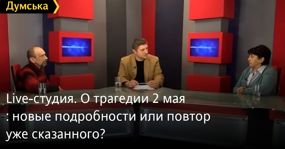Live-студия. О трагедии 2 мая : новые подробности или повтор уже сказанного? СМЕРТЬ РОССИЙСКИМ ОККУПАНТАМ! Заметили ошибку? Выделяйте слова с ошибкой и нажимайте control-enter Думская ТВ. LIVE-студия: