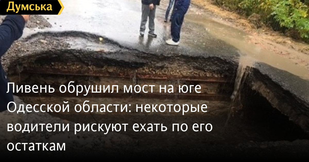 Ливень обрушил мост на юге Одесской области: некоторые водители рискуют ехать по его остаткамБольшой провал образовался сегодня на дороге между райцентром Болград и селом Кубей на юге Одесской области. По словам и. о. председателя Болградской райгосадминистрации Андрея Кучмиева, из-за ливня там обвалился мост. «В ближайшее время опасный участок с обеих сторон оградят бетонными блоками, а когда погода нормализуется, специалисты займутся ремонтом», — рассказал он в комментарии болградской газете «Дружба». До прибытия на место происшествия сотрудников экстренных служб многие автомобилисты решались проехать по оставшейся узкой полоске моста, среди них был даже водитель маршрутки. «К провалу подъехал рейсовый автобус. Водитель на свой страх и риск принял решение проехать по уцелевшему остатку моста, — пишет газета. — Пассажиры эту часть дороги прошли пешком. После этого на место происшествия подъехали сотрудники службы спасения, полицейские, глава комиссии по ТЭБ и ЧС Болградской РГА Андрей Гарвалов и другие. Было принято решение закрыть для проезда дорогу. Автомобили, которые уже выстроились в очередь, чтобы проехать по опасному участку, стали разворачивать назад. На что все присутствующие получили в свой адрес много гневных слов». К счастью, не желающие ехать в объезд водители ограничились только словами. Столкновений на месте ЧП не было. СМЕРТЬ РОССИЙСКИМ ОККУПАНТАМ! Заметили ошибку? Выделяйте слова с ошибкой и нажимайте control-enter |