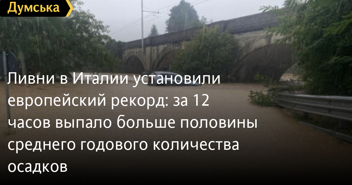 Ливни в Италии установили европейский рекорд: за 12 часов выпало больше половины среднего годового количества осадковВ Италии зафиксирован новый европейский рекорд количества осадков, которые выпали на протяжении 12 часов. Об этом сообщает The Watchers. В итальянском регионе Лигурия за 12 часов выпало 740,6 мм осадков, что составляет более половины среднего количества осадков, которое выпадает в регионе за год - 1270 миллиметров. Ливни спровоцировали наводнения и оползни. Информации о жертвах не поступало. Отмечается, что дожди в регионе идут уже несколько дней. Из-за непогоды в Лигурии закрыли некоторые дороги и все школы. Также осадки стали причиной отмены проведения местных выборов. СМЕРТЬ РОССИЙСКИМ ОККУПАНТАМ! Заметили ошибку? Выделяйте слова с ошибкой и нажимайте control-enter Новости по этой теме: 12 января 2022: Харьковские станции метро ожидает масштабная проверка: в вестибюле подземки на площади Конституции рухнул потолок (фото) 8 января 2022: В Одессе из офиса фирмы выкрали сейф с внушительной суммой денег, золотом и пистолетом 27 декабря 2021: В лесополосе под Киевом нашли тело главврача из Ровенской области: по подозрению в убийстве задержаны таксист с приятелем 23 декабря 2021: В Киеве задержали подозреваемых мошенников, которые обманывали на свиданиях мужчин ради денег |