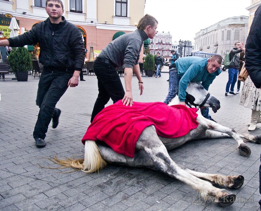 Состояние здоровья лошади, упавшей вчера вечером на Приморском бульваре, специалисты оценивают как удовлетворительное. Как рассказал «Думской» врач ветеринарной медицины филиала «Одесский ипподром» ГП «Коноводство Украины» Юрий Дудник, который занимается лечением животного, жизни лошади ничего не угрожает. «Лошадка проходит реабилитацию, уже через четыре дня будет выполнять свою работу. По всем симптомам, это были желудочные колики, которые сопровождаются у животных болезненными ощущениями, и лошадь начинает вести себя беспокойно: ложится на землю или, наоборот, беспорядочно скачет. Скорее всего, кто-то из отдыхающих накормил лошадку пшеничным хлебом, что категорически запрещено», — считает ветеринар. По его словам, из-за нервной обстановки, которая царила на месте инцидента, он не смог сразу оказать помощь животному — пришлось ждать автомобиль, который из-за пробок ехал очень долго. «Когда мы привезли ее на конюшню, я поставил ей капельницу, и ее состояние улучшилось», — добавил медик. Слова врача «Думской» подтвердила и владелица лошади Марина Романова. «У нее были желудочные колики. Лошадь просто переела, такое бывает и у людей. Это рядовой случай и может случиться даже с полностью здоровой лошадью», — сказала она. Комментируя действия молодых людей, которые на месте происшествия угрожали «разбить лицо и камеру» корреспонденту «Думской», Марина Романова сказала: «Кто кому угрожал, я не знаю. Все мои сотрудники были заняты. Со мной и доктором их было четыре человека. Были люди со стороны, которые предложили нам помощь. Возможно, кто-то из них сказал это вашему корреспонденту. Лично я попросила двух других журналистов не снимать со вспышкой, так как лошади боятся яркого света». Отметим, что корреспондент «Думской» Алексей Кравцов написал заявление в милицию о препятствовании его журналистской деятельности со стороны упомянутых молодых людей, которое принято к рассмотрению. СМЕРТЬ РОСІЙСЬКИМ ОКУПАНТАМ! Помітили помилку? Виділяйте слова з помилкою та натискайте control-enter |
