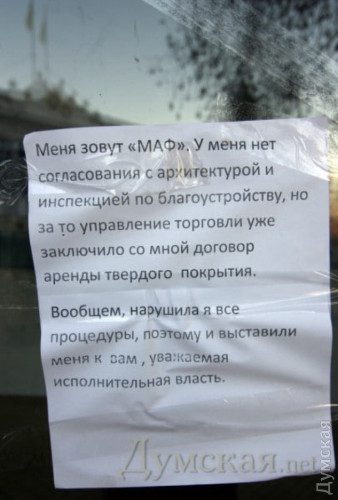 Одесская МАФия снова подает признаки жизни. После шести лет негласного моратория на новые ларьки, в городе начали появляться свежие будки. Формально все (ну или почти все) законно, фактически — система снова дает сбой: аренда стоит копейки, а посредники зарабатывают в разы больше города, да и что греха таить, эти ларьки, понатыканные повсюду, портят и так не идеальный вид пока спальных районов. Но если процесс не остановить, мы уверены, доберутся они и до побережья. Редакторка «Думской» Алия Замчинская вспоминала, какой была Одесса-будочная раньше и какой может стать в будущем. ИСТОКИ ЗЛА И ЧУДО ЦИФРОВИЗАЦИИ Понятия МАФия и МАФизация прочно закрепились в Одессе в начале 2010-х, во времена Алексея Костусева. Тогда появление ларьков и киосков стало совершенно хаотичным. Мэр пытался сдержать процесс — объявлял «мораторий», собственноручно громил отдельные точки кувалдой (что породило кучу мемов), — но безуспешно. МАФизацией занимались лично главы райадминистраций, не подконтрольные Костусеву, в частности руководитель Приморской — Иван Пастушок. Лучше стало после смены власти в 2013 году. Управление торговли возглавил Олесь Янчук, который начал наводить порядок — так, как он его понимал. Став вице-мэром, чиновник продолжил работу по сокращению числа МАФов и унификации их внешнего облика. Параллельно он прибирал этот рынок к рукам и даже сейчас, спустя годы после отставки, по всей видимости, контролирует какую-то его часть. Постепенно эта сфера становится все более прозрачной и подконтрольной. Во-первых, в Одессе появилась интерактивная карта, на которую нанесли все (по крайней мере, законные) МАФы. Тут есть исчерпывающая информация о них - адрес, площадь, тип, дата заключения договора, его срок. Во-вторых, теперь каждый предприниматель должен будет размещать на своем ларьке qr-код, который ведет на ту же карту. Мы провели специальный рейд, чтобы понять, выполняют ли коммерсанты это требование (пока не обязательное). Результат неутешителен. Промаркировано всего лишь около трети ларьков. КОГДА ПОСРЕДНИК ЗАРАБАТЫВАЕТ БОЛЬШЕ, ЧЕМ ГОРОД Депутат Петр Обухов, будучи программистом, написал скрипт, который собрал воедино всю информацию о будках в разных районах города. Благодаря этому, мы и можем судить о том, как МАФия разрасталась с годами. К примеру, есть ларек, договор на который действует до 2047 года!!! И еще немного цифр. Всего в городе 71,6 тыс. квадратных метров такой торговой площади. Это же о-го-го, подумаете вы. Но вот вам другая цифра — 70 гривен, именно столько стоит аренда квадратного метра в месяц (на самом деле, есть и другие цифры, но их меньшинство, подробности тут и тут). Всего за год набегает около 60 млн. К слову, во Львове стоимость метра в три раза выше — 200 грн. В Одессе это показатель не пересматривался с декабря 2022-го, а до того было еще вдвое меньше. То есть средняя будка в 20 квадратов приносит городу 1400 гривен в месяц. А вот в субаренду ее могут сдать в 5-10 раз дороже. То есть реальные предприниматели, те, кто торгует шаурмой, кофе и всякими мелочами, 60-80% своей платы за аренду отдают банальному посреднику. Который вовремя подсуетился и заключил договоры. МНИМЫЕ СДЕЛКИ И ПАССИВНЫЕ ПРАВООХРАНИТЕЛИ Объекты уличной торговли еще со времен Эдуарда Гурвица размещаются в Одессе по схеме «аренда твердого покрытия», и предприниматели платят суще