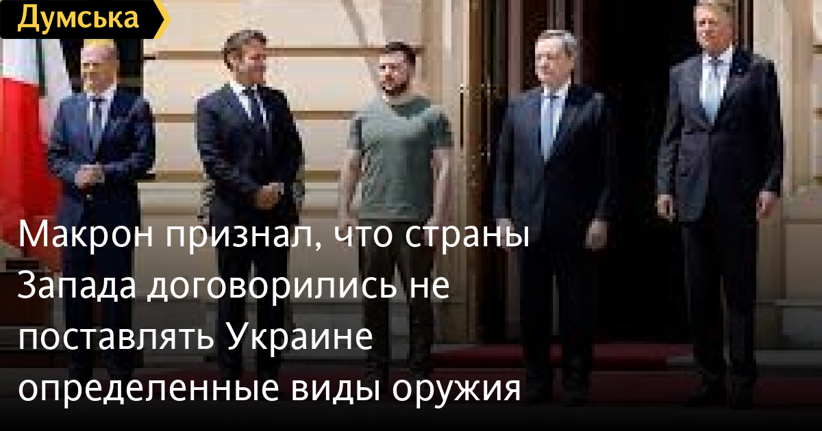 Макрон признал, что страны Запада договорились не поставлять Украине определенные виды оружияСтраны Запада договорились не предоставлять Украине определенные виды оружия. Об этом заявил сегодня в Киеве президент Франции Эмманюэль Макрон. «Мы помогаем Украине обороняться, но мы не вступаем в войну с Россией, поэтому определенное вооружение – в частности, штурмовые самолеты или танки – было договорено не поставлять, и президент Зеленский в курсе этой договоренности», – сказал он. Президент Франции добавил, что Запад предоставлял Украине боеприпасы и «определенные виды техники». «А сейчас начали поставлять также и (самоходные артиллерийские установки) Ceasar. Это позволит Украине быть мобильнее и уничтожать врага с далекого расстояния», — отметил французский лидер. СМЕРТЬ РОСІЙСЬКИМ ОКУПАНТАМ! Помітили помилку? Виділяйте слова з помилкою та натискайте control-enter |