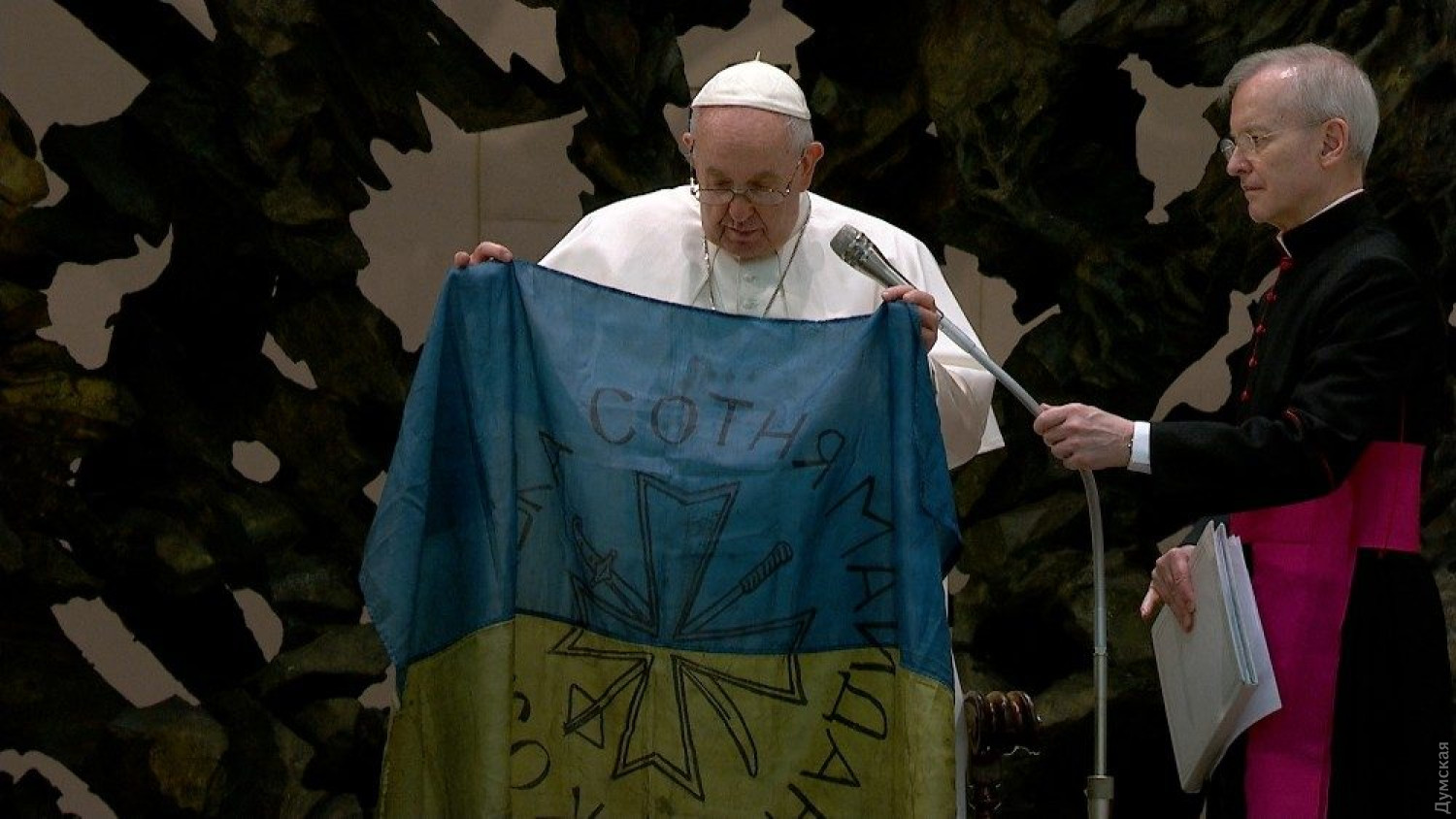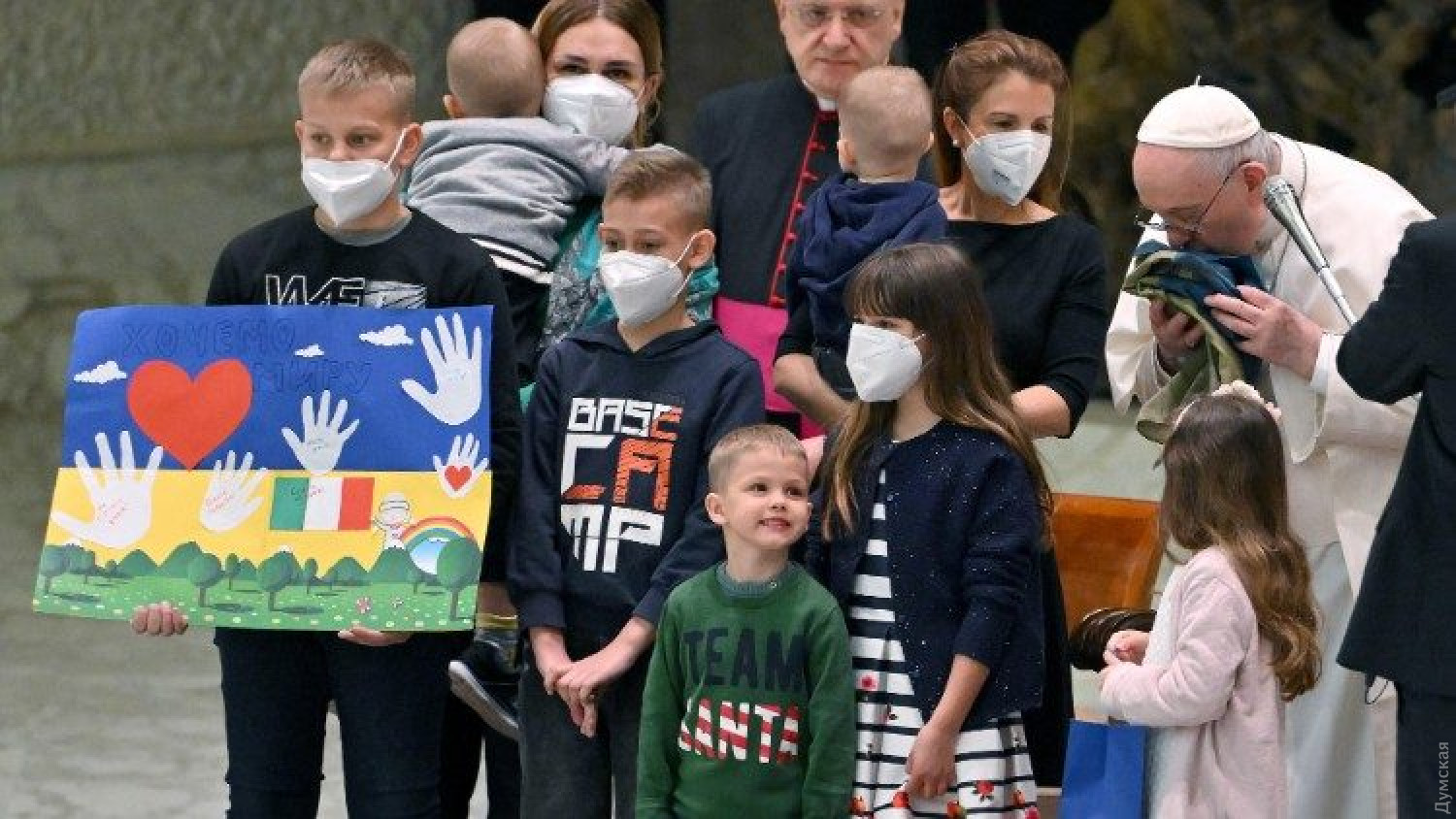 Флаг Украины из освобожденной Бучи передали Папе Римскому Франциску дети-беженцы, приглашенные для участия в традиционной аудиенции в Ватикане. Об этом пишет официальный портал Святого престола Vatican News. Приняв флаг из рук маленьких украинцев, понтифик обратился к присутствующим с воззванием о прекращении войны на территории нашей страны. «Последние новости о войне в Украине не приносят облегчения и надежды, но свидетельствуют о новых зверствах, таких как резня в Буче, – все более чудовищная жестокость, также в отношении беззащитных гражданских лиц, женщин и детей, – с горечью сказал Папа. – Невинная кровь этих жертв взывает к небесам и умоляет: «Да прекратится эта война! Да умолкнет оружие! Хватит сеять смерть и разрушение!». Помолимся об этом вместе». СМЕРТЬ РОСІЙСЬКИМ ОКУПАНТАМ! Помітили помилку? Виділяйте слова з помилкою та натискайте control-enter |