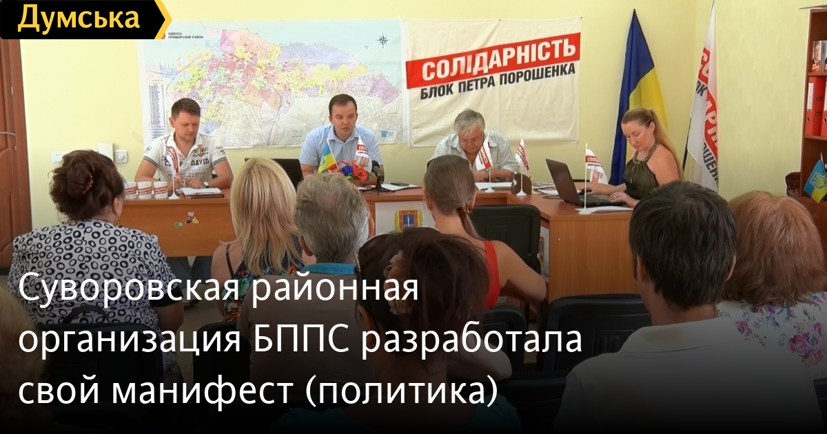 Организация партии «Блок Петра Порошенко «Солидарность» в Суворовском районе Одессы, как и анонсировала, разработала свой манифест. «Мы формируем свой манифест вокруг наиболее важных проблем района, решение которых игнорируется властью или принимаемые меры малоэффективны», — говорится в документе. Среди основных направлений деятельности организации в манифесте обозначены: помощь в оформлении субсидий в связи с повышением стоимости жилищно-коммунальных услуг, антикоррупционные мероприятия, поддержка воинов АТО и их семей, а также локальная программа помощи вынужденным переселенцам. СМЕРТЬ РОССИЙСКИМ ОККУПАНТАМ! Заметили ошибку? Выделяйте слова с ошибкой и нажимайте control-enter |