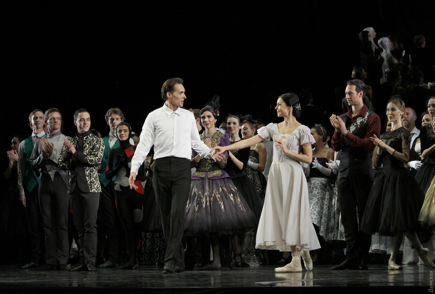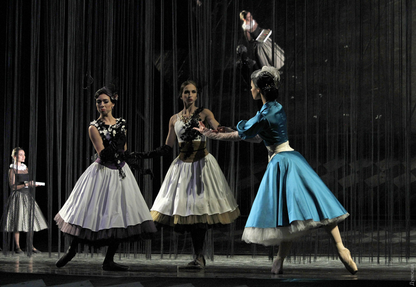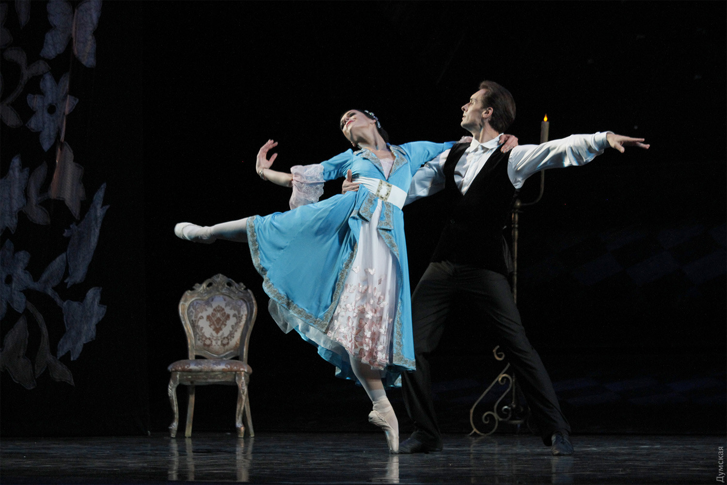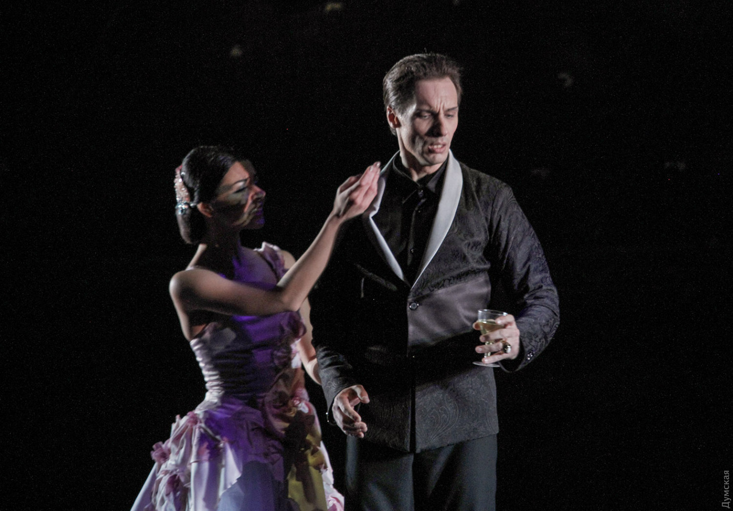 Свершилось: в Одесском национальном театре оперы и балета состоялась премьера балета «Маскарад» на музыку Арама Хачатуряна. Отныне новая версия балетного прочтения известного сюжета Лермонтова вошла в историю ОНАТОБ и начала свою, будем надеяться, долгую и триумфальную сценическую жизнь. У рецензента в такой ситуации столь же сложное положение, как и у баронессы Штраль, страстно возжелавшей князя Звездича: и хочется, и колется. С одной стороны, хочется все изъяснить, как есть. С другой – нет гарантии, что правильно поймут и не упрекнут. Звездич не скрывает своих побед над прекрасным полом, может невзначай опозорить баронессу. Плохо. Но если продолжать вести себя благовоспитанно, можно состариться, а веселой вдове-баронессе это не пристало, у нее буквально искры сыплются из-под пуантов! В чем можно упрекнуть «Думскую»? Будет не в чем, если мы лишь слегка заинтригуем уважаемых читателей, не сообщая, в каком моменте ждать того или иного эффекта, и чем закончится. Идите 28 октября и 2 ноября в театр, увидите сами! И все же несколько слов благодарности авторы и участники спектакля заслуживают. В первую очередь — хореограф-постановщик, заведующий балетной труппой, заслуженный артист Украины Гарри Севоян. Гарри Владимирович не побоялся сравнений с первым «Маскарадом», который был поставлен на этой же сцене 35 лет назад, его многие балетоманы помнят и любят до сих пор. Сравнения неизбежны, иные будут утверждать, что стоило восстановить прежнюю постановку. А будь она восстановлена, стенали бы, что балетные артисты «уже не те». Знаем мы эти штуки! Сегодняшний «Маскарад» — это просто идеал современного балета. Никакой так называемой «новой музыки», только яркая, мелодичная, запоминающаяся, под которую удобно танцевать. Минимум так называемой «современной хореографии», в основном классика, в которой можно блеснуть. Одно дело, когда публика считает количество фуэте и награждает аплодисментами за отличный «баллон», а расхлябанные движения поди пойми, хорошо или плохо исполнены, их же местами переставь, никто и не заметит, как и перестановку нот в «новой музыке». Так что исполнителям хорошо. Публике тоже классно. Динамичное, нескучное и полное сюрпризов действие заставляет проникнуться драмой получившей из рук мужа бокал с отравленным шампанским (у Лермонтова отравлено мороженое) Нины Арбениной (Екатерина Кальченко). И в то же время не получится возненавидеть убийцу, Евгения Арбенина (Сергей Доценко), ведь в том, что он свихнулся от ревности, виноват мужчина нарасхват, легкомысленный князь Звездич (Станислав Скрынник). А еще невольно скомпрометировавшая Нину баронесса Штраль (Александра Воробьева), уж лучше бы она вовремя сняла маску и заявила Звездичу: «Схожу с ума, влюблена, войдите в положение бедной вдовы и давайте уж не будем тянуть, месье!». Но эта история, как и любая другая, не имеет сослагательного наклонения, любовь, страсть, подозрительность и светское лицемерие сплелись в ней навеки. Слегка раскроем карты (в балете карты тоже есть, они повинуются игрокам, маршируют, сражаются, «открываются» и даже бывают «биты»): «волшебное зеркало» и нитяные занавесы покажут все, что скрыто. И даже призрак убиенной Нины, от которого хлопнулись бы в обморок современники Лермонтова, покажи им кто такое в театре. А зловещий хор в масках горгулий! А вор