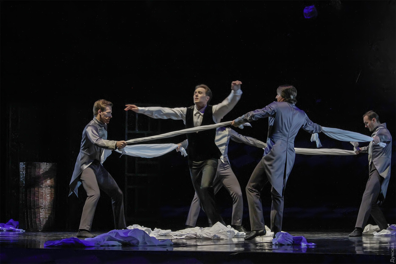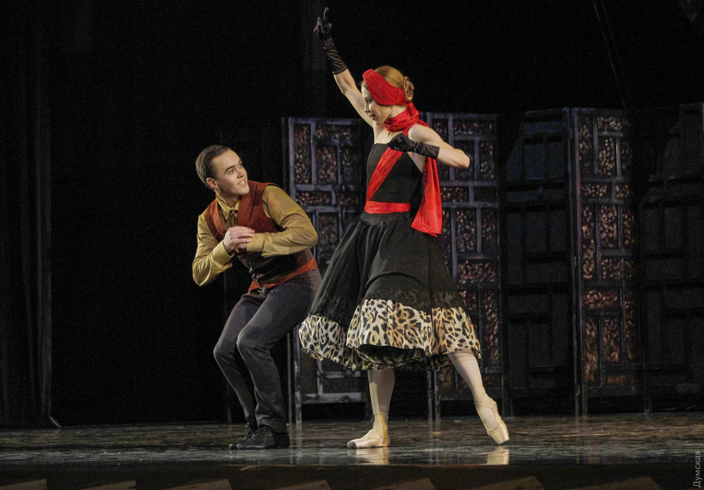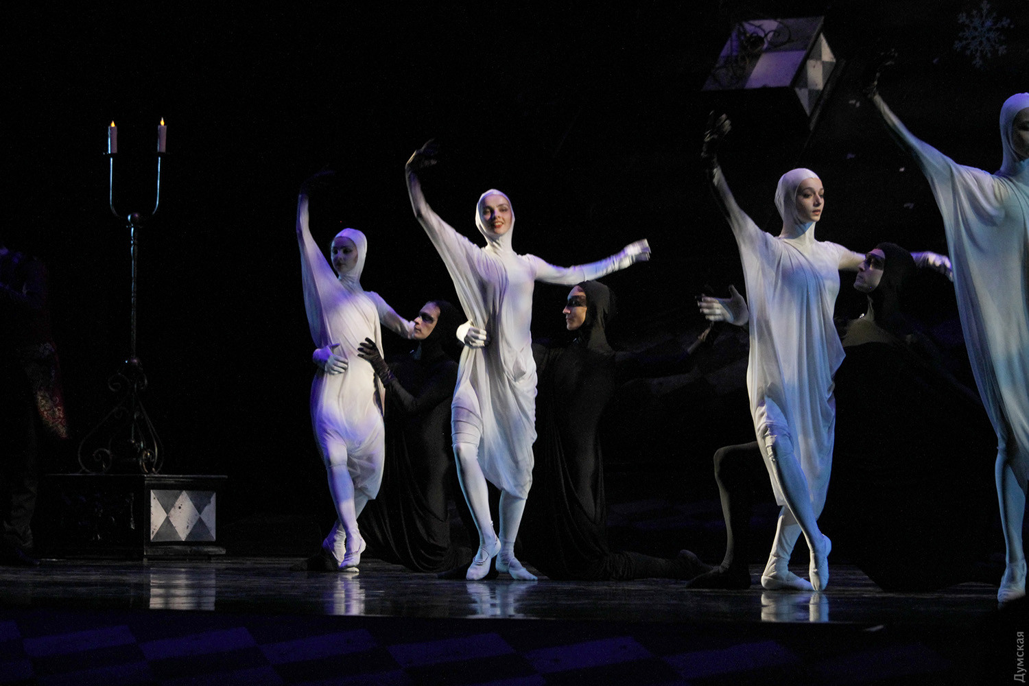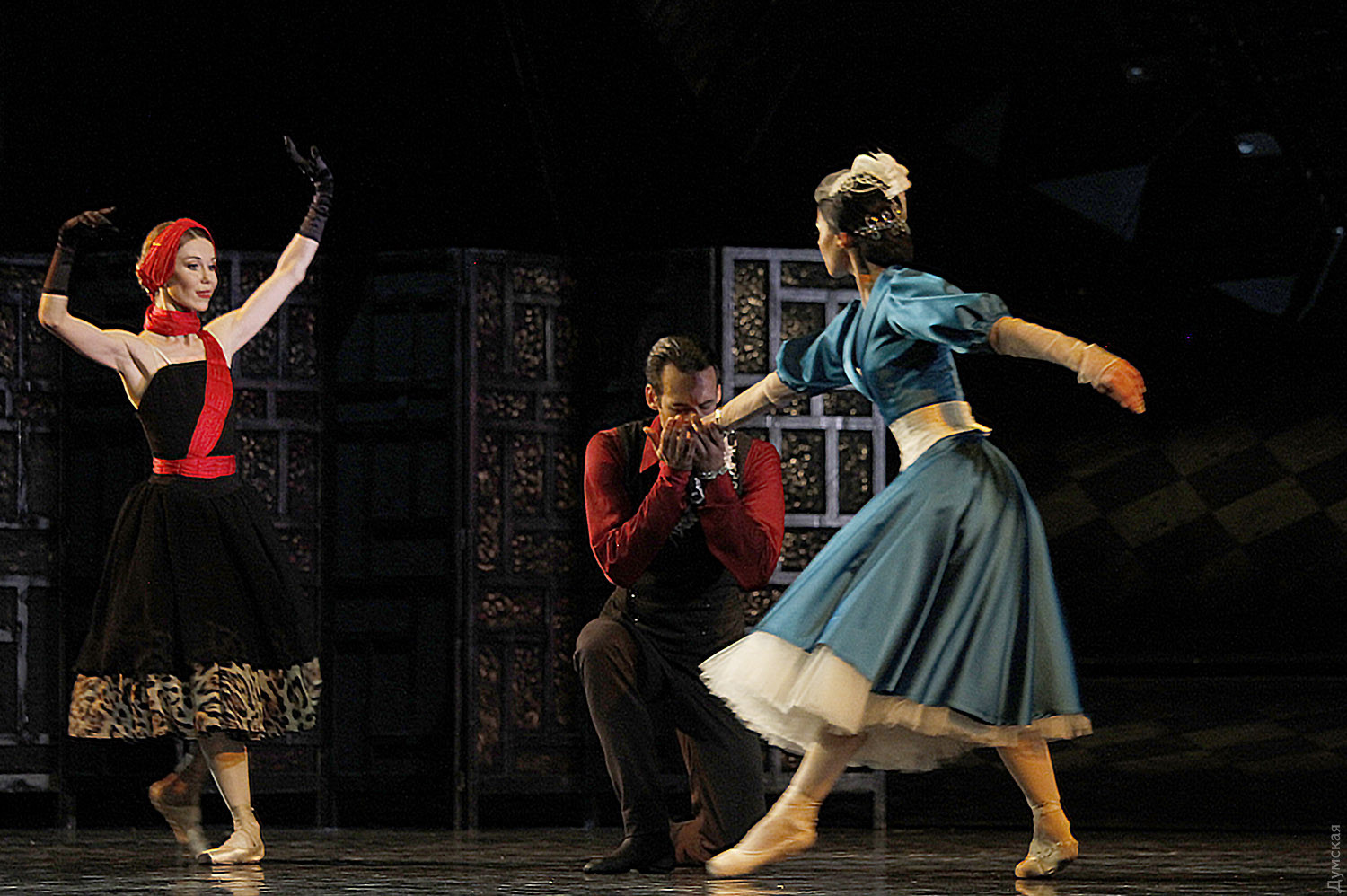 Свершилось: в Одесском национальном театре оперы и балета состоялась премьера балета «Маскарад» на музыку Арама Хачатуряна. Отныне новая версия балетного прочтения известного сюжета Лермонтова вошла в историю ОНАТОБ и начала свою, будем надеяться, долгую и триумфальную сценическую жизнь. У рецензента в такой ситуации столь же сложное положение, как и у баронессы Штраль, страстно возжелавшей князя Звездича: и хочется, и колется. С одной стороны, хочется все изъяснить, как есть. С другой – нет гарантии, что правильно поймут и не упрекнут. Звездич не скрывает своих побед над прекрасным полом, может невзначай опозорить баронессу. Плохо. Но если продолжать вести себя благовоспитанно, можно состариться, а веселой вдове-баронессе это не пристало, у нее буквально искры сыплются из-под пуантов! В чем можно упрекнуть «Думскую»? Будет не в чем, если мы лишь слегка заинтригуем уважаемых читателей, не сообщая, в каком моменте ждать того или иного эффекта, и чем закончится. Идите 28 октября и 2 ноября в театр, увидите сами! И все же несколько слов благодарности авторы и участники спектакля заслуживают. В первую очередь — хореограф-постановщик, заведующий балетной труппой, заслуженный артист Украины Гарри Севоян. Гарри Владимирович не побоялся сравнений с первым «Маскарадом», который был поставлен на этой же сцене 35 лет назад, его многие балетоманы помнят и любят до сих пор. Сравнения неизбежны, иные будут утверждать, что стоило восстановить прежнюю постановку. А будь она восстановлена, стенали бы, что балетные артисты «уже не те». Знаем мы эти штуки! Сегодняшний «Маскарад» — это просто идеал современного балета. Никакой так называемой «новой музыки», только яркая, мелодичная, запоминающаяся, под которую удобно танцевать. Минимум так называемой «современной хореографии», в основном классика, в которой можно блеснуть. Одно дело, когда публика считает количество фуэте и награждает аплодисментами за отличный «баллон», а расхлябанные движения поди пойми, хорошо или плохо исполнены, их же местами переставь, никто и не заметит, как и перестановку нот в «новой музыке». Так что исполнителям хорошо. Публике тоже классно. Динамичное, нескучное и полное сюрпризов действие заставляет проникнуться драмой получившей из рук мужа бокал с отравленным шампанским (у Лермонтова отравлено мороженое) Нины Арбениной (Екатерина Кальченко). И в то же время не получится возненавидеть убийцу, Евгения Арбенина (Сергей Доценко), ведь в том, что он свихнулся от ревности, виноват мужчина нарасхват, легкомысленный князь Звездич (Станислав Скрынник). А еще невольно скомпрометировавшая Нину баронесса Штраль (Александра Воробьева), уж лучше бы она вовремя сняла маску и заявила Звездичу: «Схожу с ума, влюблена, войдите в положение бедной вдовы и давайте уж не будем тянуть, месье!». Но эта история, как и любая другая, не имеет сослагательного наклонения, любовь, страсть, подозрительность и светское лицемерие сплелись в ней навеки. Слегка раскроем карты (в балете карты тоже есть, они повинуются игрокам, маршируют, сражаются, «открываются» и даже бывают «биты»): «волшебное зеркало» и нитяные занавесы покажут все, что скрыто. И даже призрак убиенной Нины, от которого хлопнулись бы в обморок современники Лермонтова, покажи им кто такое в театре. А зловещий хор в масках горгулий! А вор
