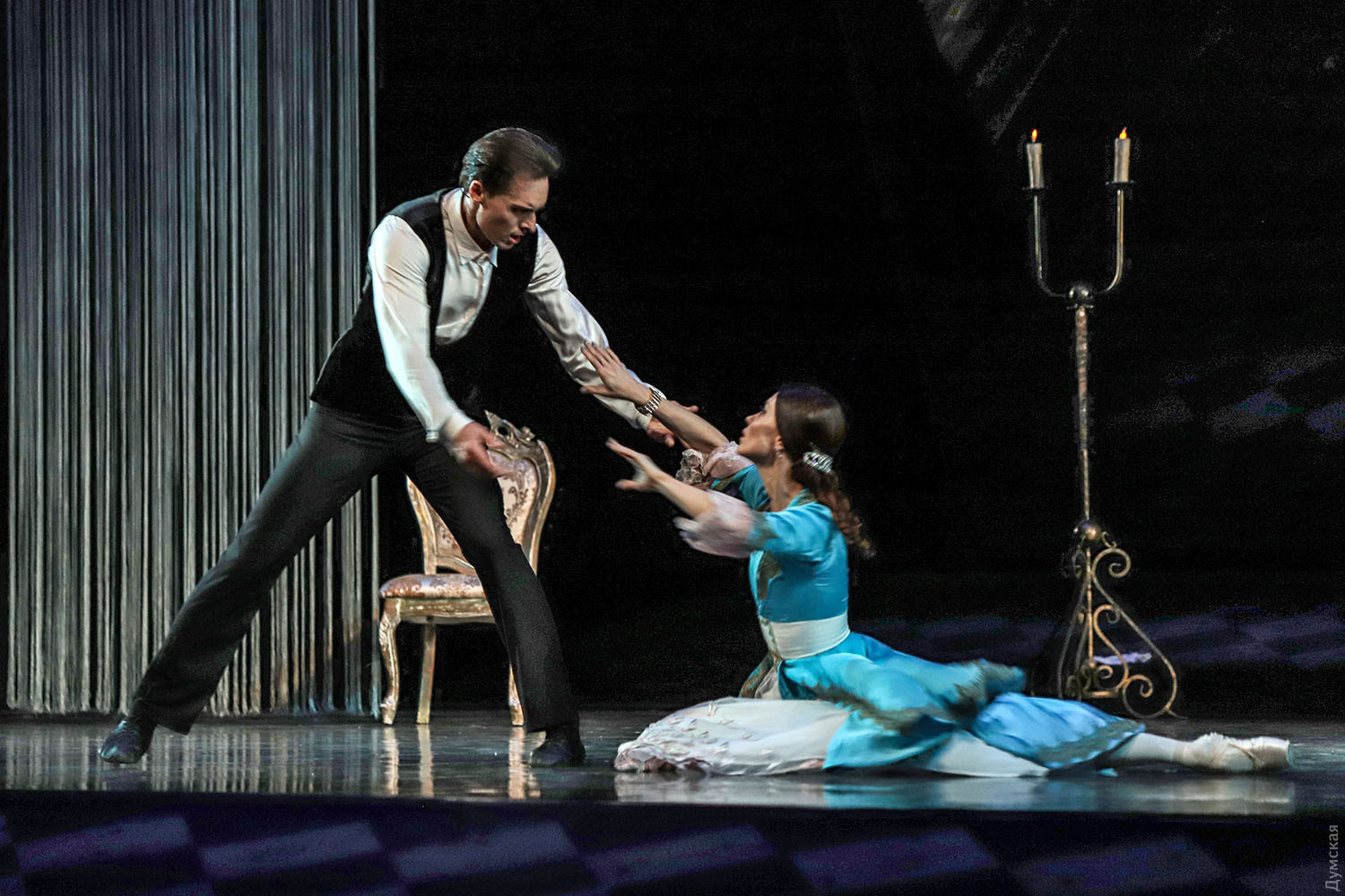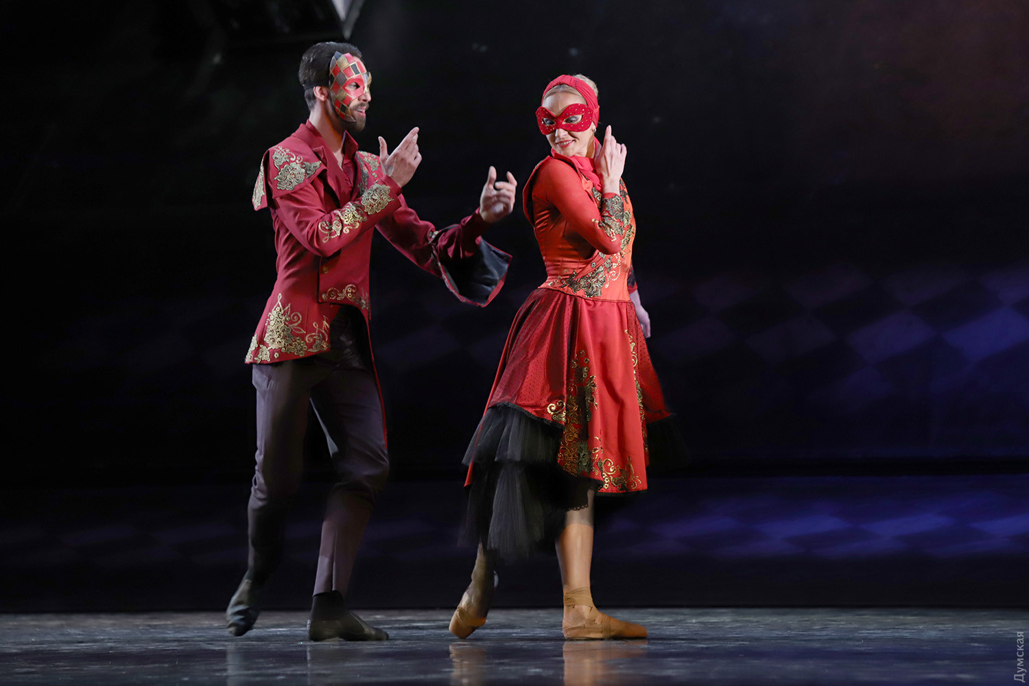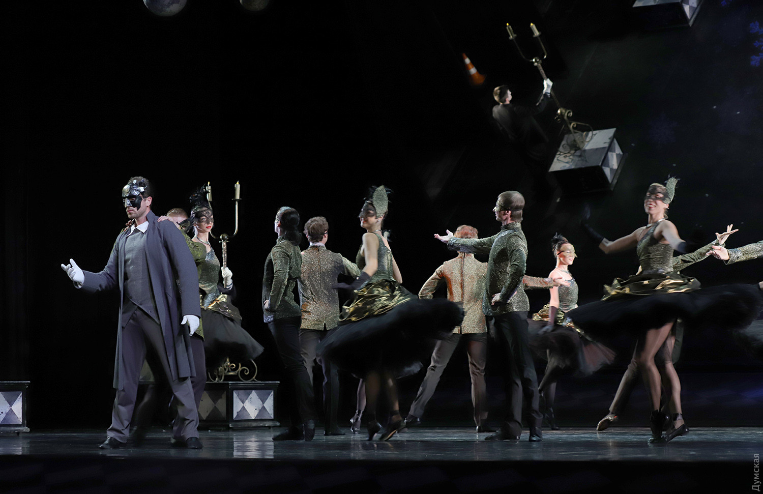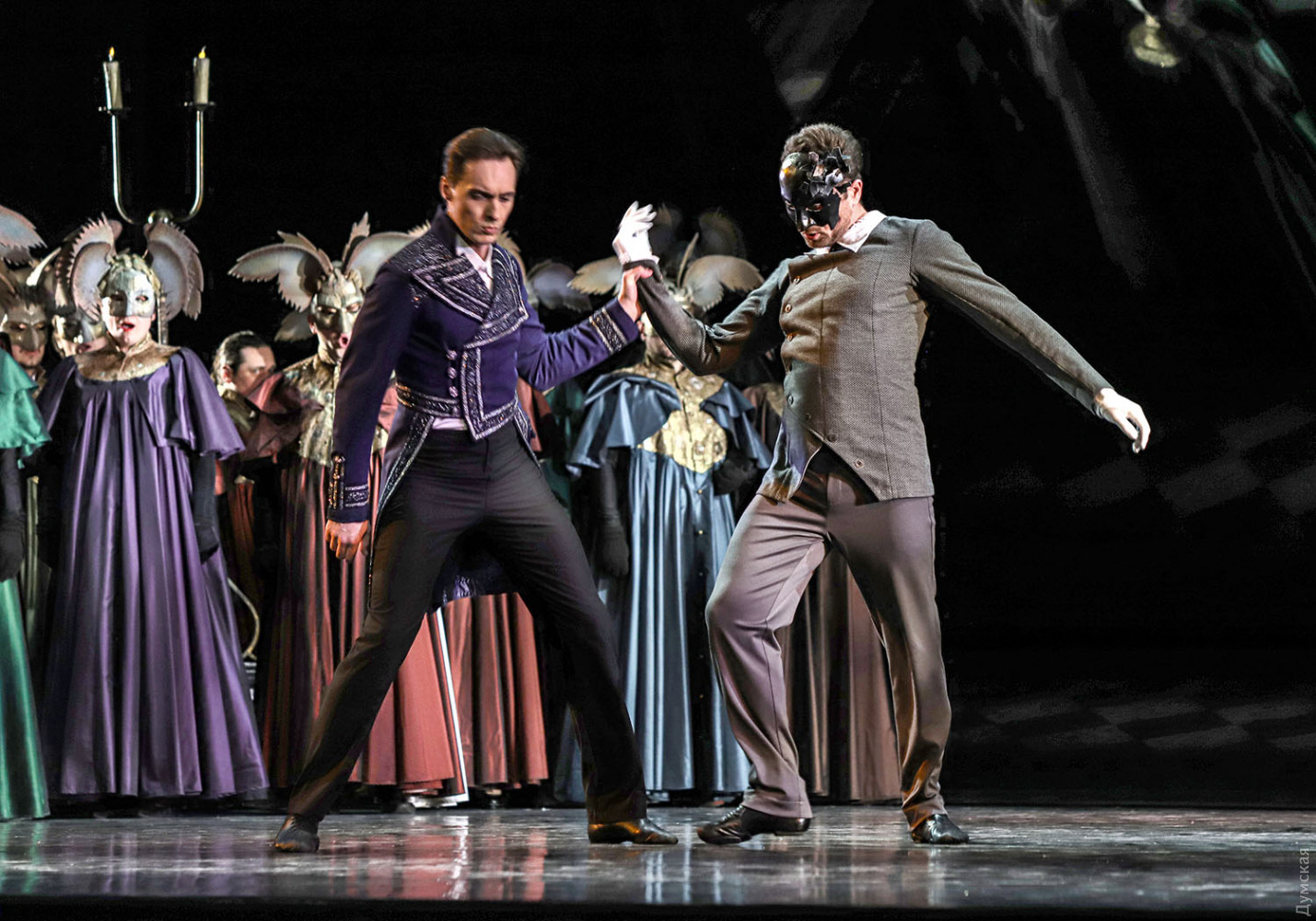Маски в зале и на сцене: «Зимний променад в Одесской опере» порадовал балетом «Маскарад»Параллельно с текущим репертуаром продолжается в Одесском национальном академическом театре оперы и балета программа фестиваля «Зимний променад». На этот раз был представлен одесский продукт — балет «Маскарад» на музыку Арама Хачатуряна в постановке заслуженного артиста Украины Гарри Севояна, которая идет только на нашей сцене. Сюжет Лермонтова о любви, коварстве и ревности удивительно «ложится» на музыку и танец (классика плюс элементы современной хореографии), а невероятный эффект зрелищу сообщает «магическое зеркало», благодаря которому можно смотреть на танцоров одновременно спереди и со спины. Маскарад – тема самая что ни есть зимняя, и благодаря печальным карантинным обстоятельствам зрители в медицинских масках с некоторой завистью смотрят на артистов балета и хора, которые красуются в масках, не мешающих дышать… Но чего не вытерпишь ради искусства. Тем более, спектакль набрал по сравнению с премьерой, качества, как хорошее вино. Фестиваль представил «Маскарад» в практически идеальном исполнительском составе. Темы масок, ювелирных изделий и карточной игры переплетаются в балете. Шулерские повадки нечистого на руку Неизвестного (Богдан Чабанюк) обнаруживаются, когда с его сдергивают белую перчатку, а под ней – черная. Угодливый Шприх (Николай Вориводин) умело «зеркалит» движения эффектной баронессы Штраль (Татьяна Афанютина). Образ дамского любимца князя Звездича удивительно подходит Станиславу Скрыннику (модная бородка артисту очень к лицу), а вся интрига с потерянным браслетом (ох уж эта мода на парные браслеты, вот кто всему виной) убивает счастливый брак Арбенина и Нины (заслуженный артист Украины Сергей Доценко и Ольга Воробьева)… Смелый ход – корзины с грязным бельем, которые потрошат сплетники, озабоченные чужой жизнью и нравственностью… Сегодня, 6 февраля, состоится премьера концерта «Хоровой вернисаж. Классическое наследие», программу которого, как ни странно, помог выучить локдаун. Когда артистам хора и солистам не нужно было по вечерам участвовать в спектаклях, но никто не мешал разучивать «Коронационную мессу» Моцарта и другие концертные номера, все шло как по маслу. Красивое оформление для сцены придумал главный художник ОНАТОБ Игорь Анисенко: белые сферы освещаются мерцающими перламутром переливами света и напоминают из зала жемчужное ожерелье. Каждая сфера символизирует душу музыканта, и все же ассоциации с жемчугом неслучайны – по-другому сгруппированные «жемчужины» украсят сцену 28 февраля, когда будет представлено концертное исполнение оперы Бизе «Ловцы жемчуга». Так что «Зимний променад» продолжается, настроение бодрое, нос по ветру… Автор — Ирэн Адлер, фото Владимира Андреева СМЕРТЬ РОСІЙСЬКИМ ОКУПАНТАМ! Помітили помилку? Виділяйте слова з помилкою та натискайте control-enter Новини по цій темі: 2 листопада 2025: «Амінь, і поїхали»: одеситам показали портрети відьом та козака-характерника (фото) 22 вересня 2025: Артист не може бути поза політикою: Dakh Daughters в Одесі розповіли про відьом, важкі міста і в який час краще жити 19 вересня 2025: Йому довірять робити раму для Караваджо: одеситам показали виставку литовського музейника |
