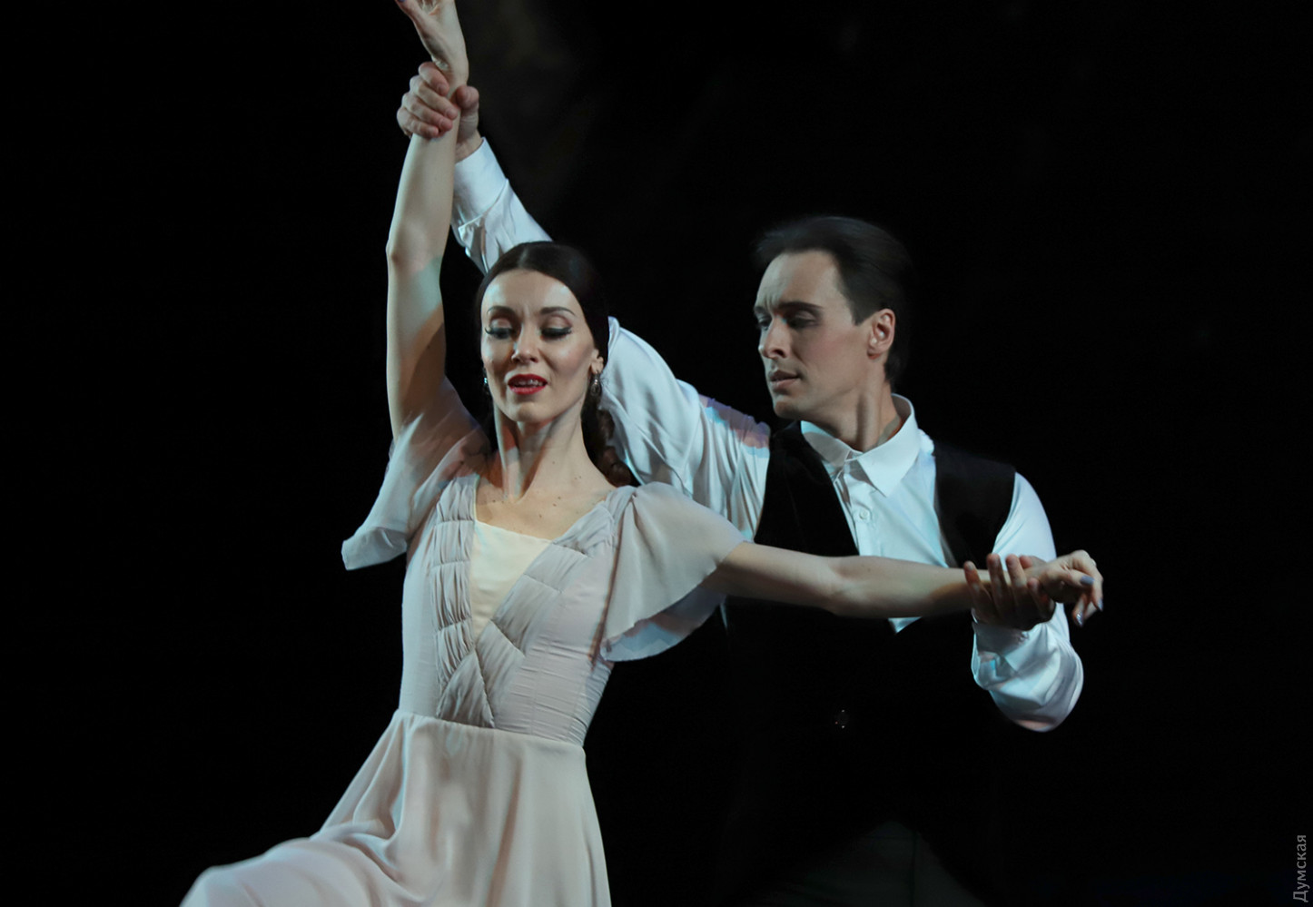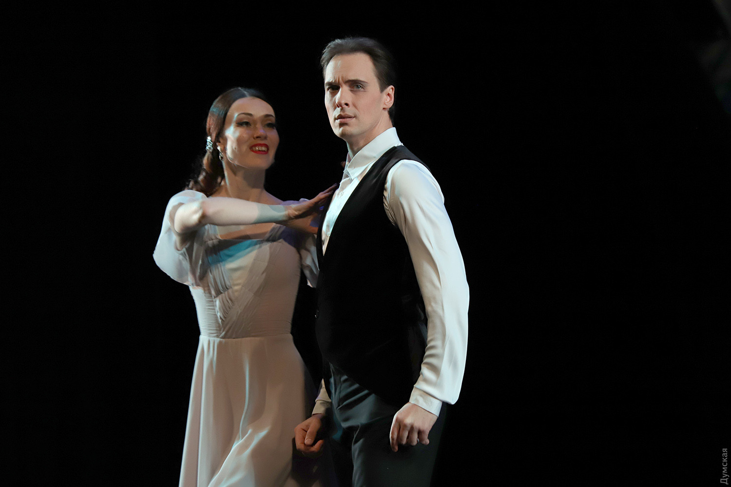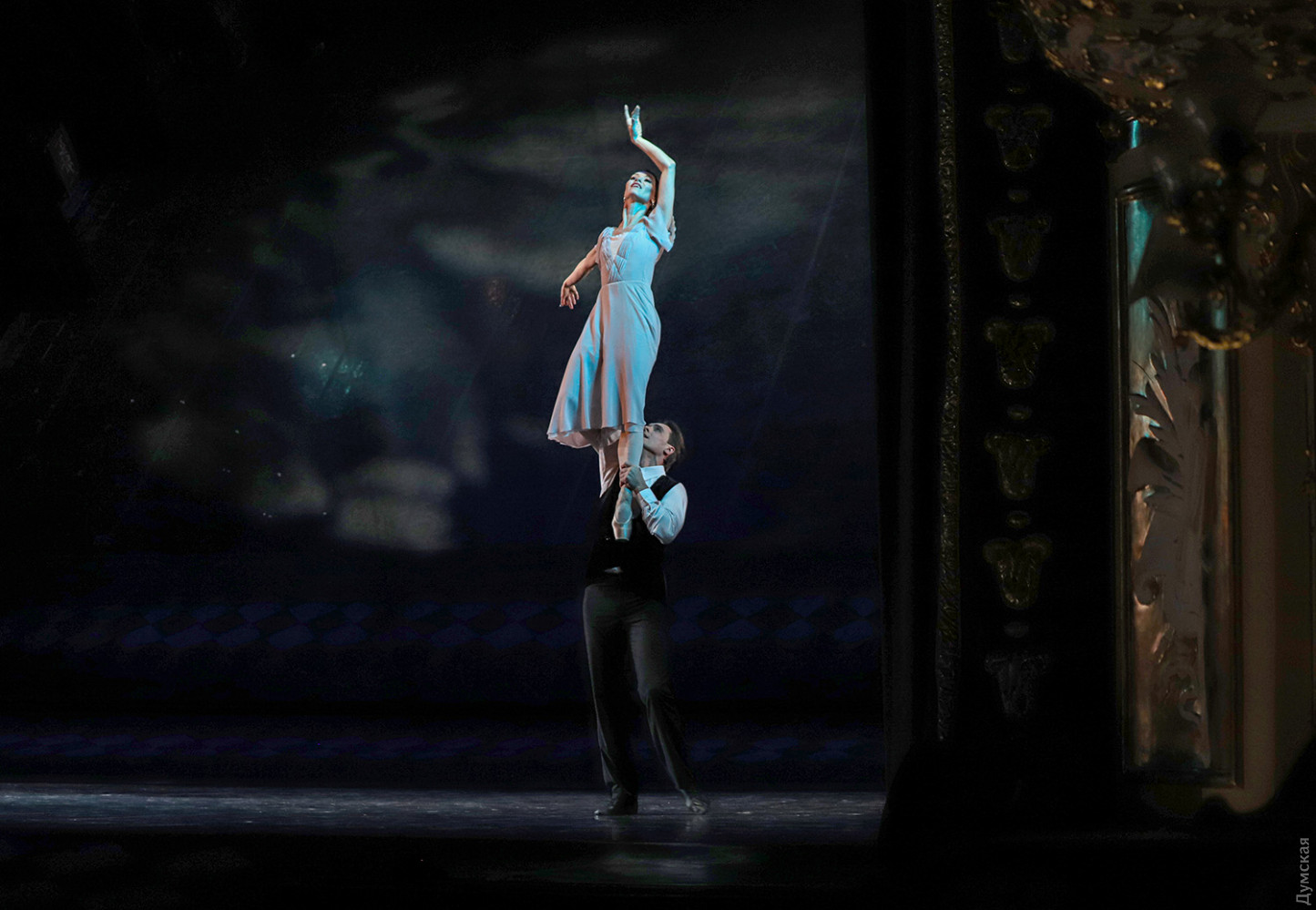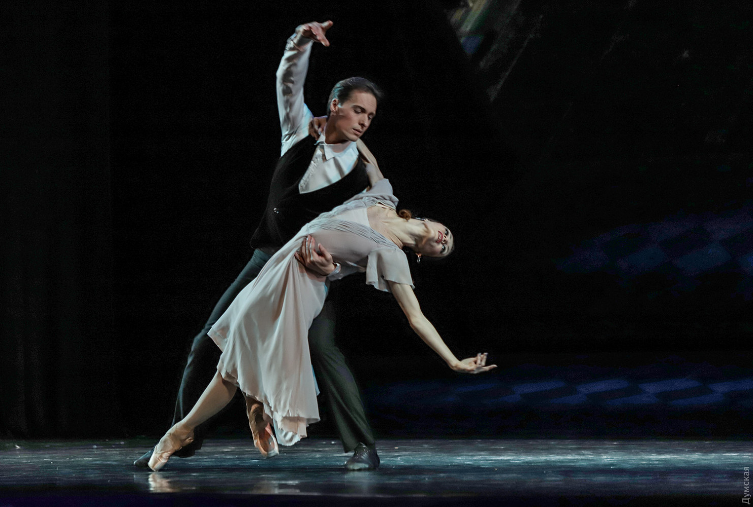 Маски в зале и на сцене: «Зимний променад в Одесской опере» порадовал балетом «Маскарад»Параллельно с текущим репертуаром продолжается в Одесском национальном академическом театре оперы и балета программа фестиваля «Зимний променад». На этот раз был представлен одесский продукт — балет «Маскарад» на музыку Арама Хачатуряна в постановке заслуженного артиста Украины Гарри Севояна, которая идет только на нашей сцене. Сюжет Лермонтова о любви, коварстве и ревности удивительно «ложится» на музыку и танец (классика плюс элементы современной хореографии), а невероятный эффект зрелищу сообщает «магическое зеркало», благодаря которому можно смотреть на танцоров одновременно спереди и со спины. Маскарад – тема самая что ни есть зимняя, и благодаря печальным карантинным обстоятельствам зрители в медицинских масках с некоторой завистью смотрят на артистов балета и хора, которые красуются в масках, не мешающих дышать… Но чего не вытерпишь ради искусства. Тем более, спектакль набрал по сравнению с премьерой, качества, как хорошее вино. Фестиваль представил «Маскарад» в практически идеальном исполнительском составе. Темы масок, ювелирных изделий и карточной игры переплетаются в балете. Шулерские повадки нечистого на руку Неизвестного (Богдан Чабанюк) обнаруживаются, когда с его сдергивают белую перчатку, а под ней – черная. Угодливый Шприх (Николай Вориводин) умело «зеркалит» движения эффектной баронессы Штраль (Татьяна Афанютина). Образ дамского любимца князя Звездича удивительно подходит Станиславу Скрыннику (модная бородка артисту очень к лицу), а вся интрига с потерянным браслетом (ох уж эта мода на парные браслеты, вот кто всему виной) убивает счастливый брак Арбенина и Нины (заслуженный артист Украины Сергей Доценко и Ольга Воробьева)… Смелый ход – корзины с грязным бельем, которые потрошат сплетники, озабоченные чужой жизнью и нравственностью… Сегодня, 6 февраля, состоится премьера концерта «Хоровой вернисаж. Классическое наследие», программу которого, как ни странно, помог выучить локдаун. Когда артистам хора и солистам не нужно было по вечерам участвовать в спектаклях, но никто не мешал разучивать «Коронационную мессу» Моцарта и другие концертные номера, все шло как по маслу. Красивое оформление для сцены придумал главный художник ОНАТОБ Игорь Анисенко: белые сферы освещаются мерцающими перламутром переливами света и напоминают из зала жемчужное ожерелье. Каждая сфера символизирует душу музыканта, и все же ассоциации с жемчугом неслучайны – по-другому сгруппированные «жемчужины» украсят сцену 28 февраля, когда будет представлено концертное исполнение оперы Бизе «Ловцы жемчуга». Так что «Зимний променад» продолжается, настроение бодрое, нос по ветру… Автор — Ирэн Адлер, фото Владимира Андреева СМЕРТЬ РОСІЙСЬКИМ ОКУПАНТАМ! Помітили помилку? Виділяйте слова з помилкою та натискайте control-enter Новини по цій темі: 2 листопада 2025: «Амінь, і поїхали»: одеситам показали портрети відьом та козака-характерника (фото) 22 вересня 2025: Артист не може бути поза політикою: Dakh Daughters в Одесі розповіли про відьом, важкі міста і в який час краще жити 19 вересня 2025: Йому довірять робити раму для Караваджо: одеситам показали виставку литовського музейника |
