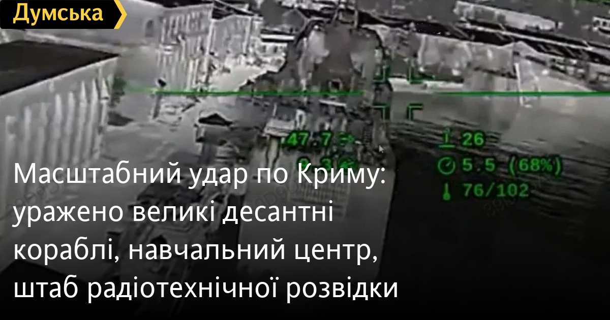 | 20:08 | Масштабний удар по Криму: уражено великі десантні кораблі, навчальний центр, штаб радіотехнічної розвідки  5 |