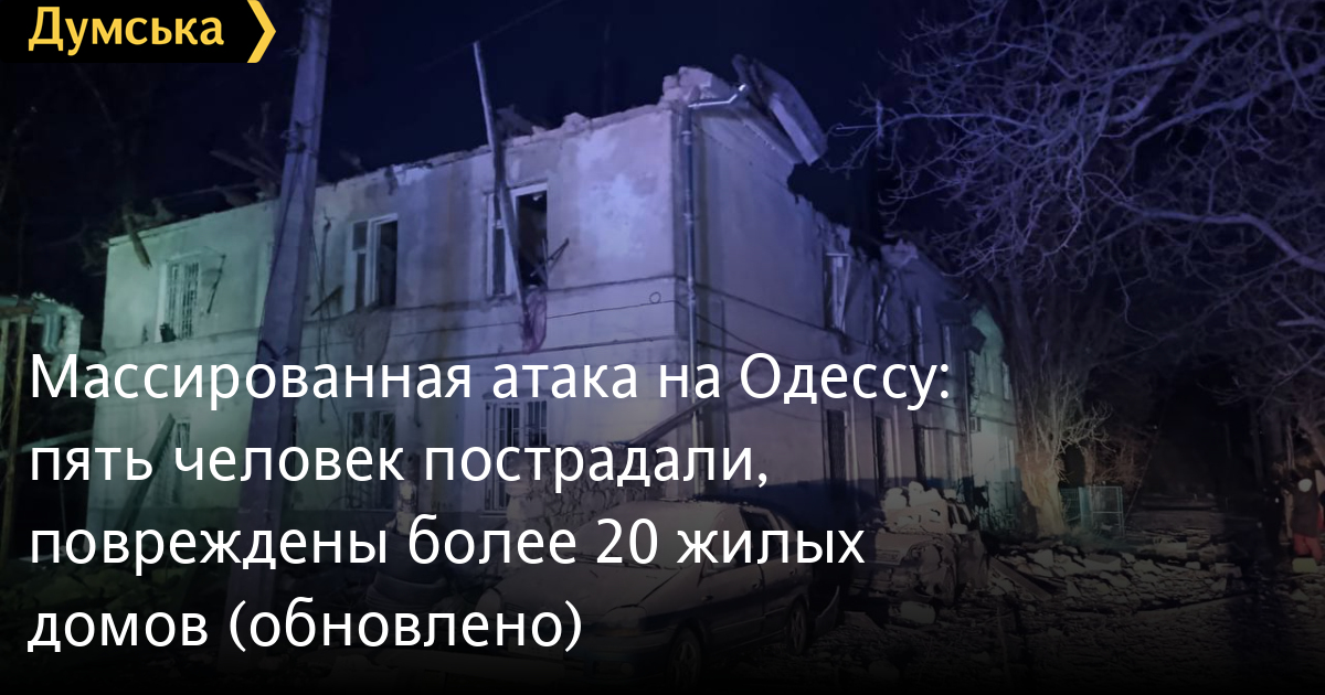 Массированная атака на Одессу: пять человек пострадали, повреждены более 20 жилых домов (обновлено)Два человека пострадали в результате ночной атаки врага на Одессу. Повреждены более 20 жилых домов, два детских сада и школа, сообщают в городском совете. В двухэтажном жилом доме рухнули перекрытия, пожарным удалось спасти четырех людей. Огонь также вспыхнул на предприятии. Зафиксированы разрушения в трех районах города — Приморском, Пересыпском и Хаджибейском. На местах работают коммунальные службы: убирают обломки и закрывают поврежденные окна плитами и пленкой. Также город развернул оперативные штабы и пункты обогрева. ОБНОВЛЕНО В 10:01. Стало известно про пятерых пострадавших. Четверым помощь была оказана на месте, еще один обратился за помощью самостоятельно — заявил глава городской военной администрации Сергей Лысак. СМЕРТЬ РОССИЙСКИМ ОККУПАНТАМ! Заметили ошибку? Выделяйте слова с ошибкой и нажимайте control-enter |