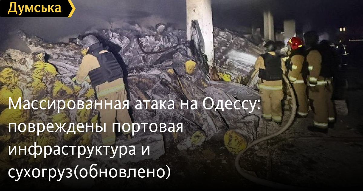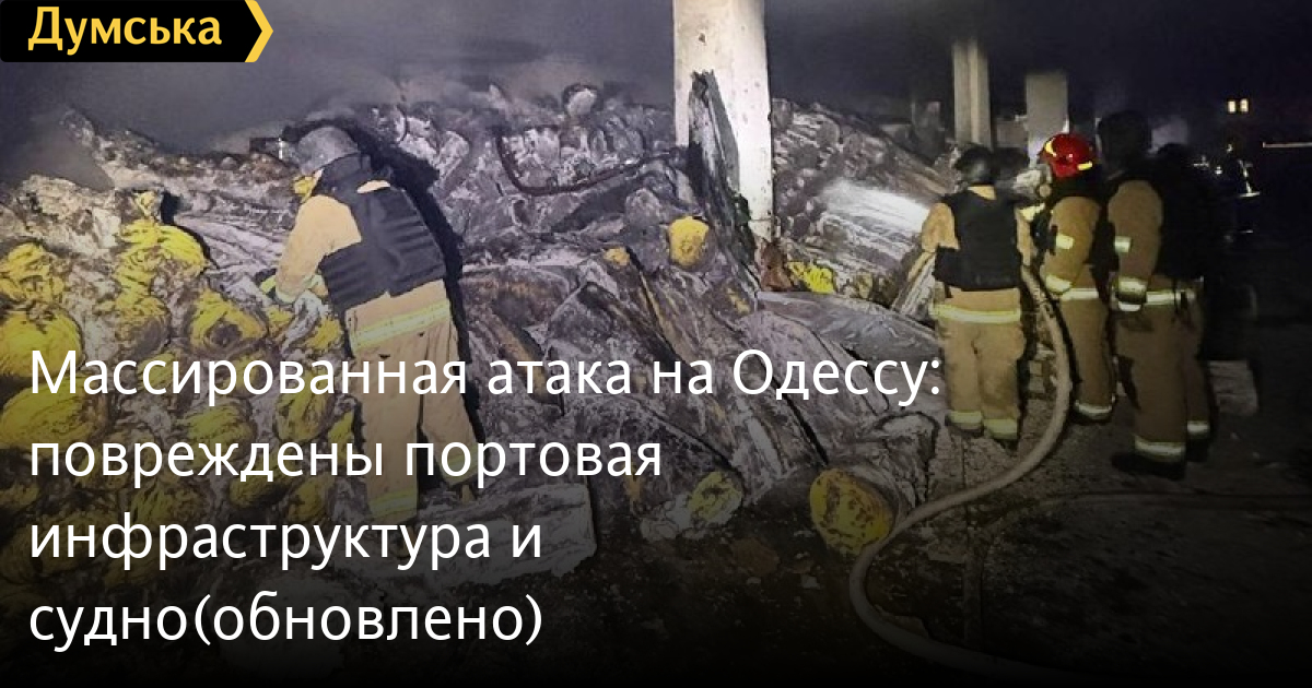 Массированная атака на Одессу: повреждены портовая инфраструктура и судно(обновлено)Враг массированно атаковал Одесскую область. Под ударом оказалась портовая инфраструктура, сообщил глава ОВА Олег Кипер. Есть повреждения объектов. На местах вспыхнули пожары, которые оперативно ликвидировали. К счастью, обошлось без пострадавших. ОБНОВЛЕНО В 9:25. Зафиксировано попадание в трюм грузового судна с последующим возгоранием, — сообщили в АМПУ. СМЕРТЬ РОССИЙСКИМ ОККУПАНТАМ! Заметили ошибку? Выделяйте слова с ошибкой и нажимайте control-enter |