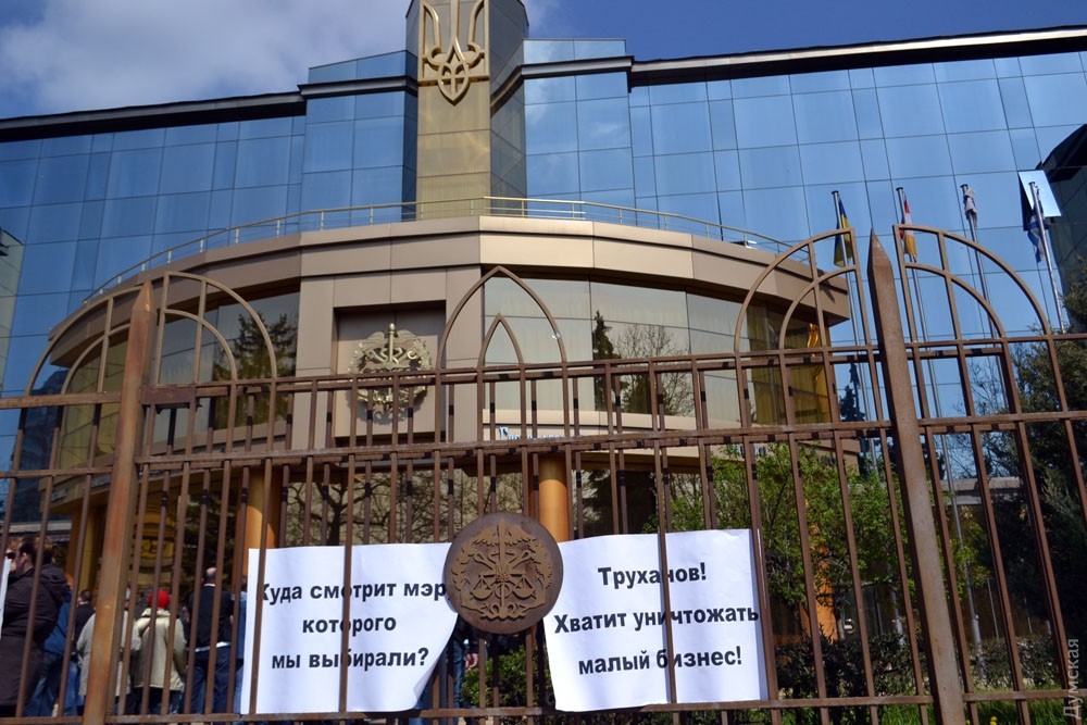 К счастью, их вмешательство не понадобилось. Перед началом заседания у здания суда собрались 20-летние «предприниматели рынка», которые держали плакаты с надписями «Труханов, руки прочь от малого бизнеса», «Уважаемый мэр, не забирайте хлеб у наших детей» и так далее.